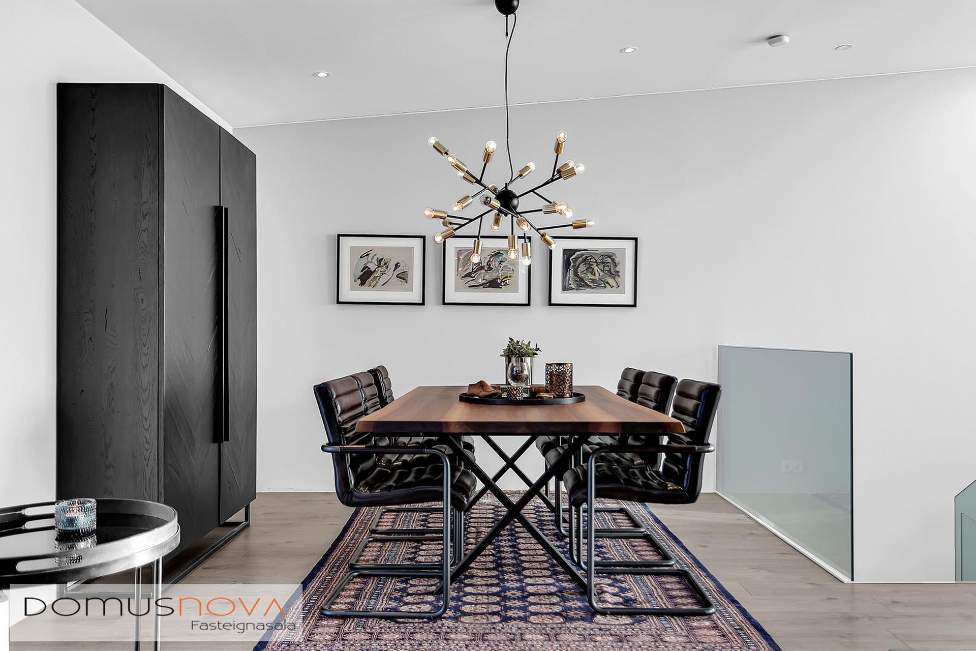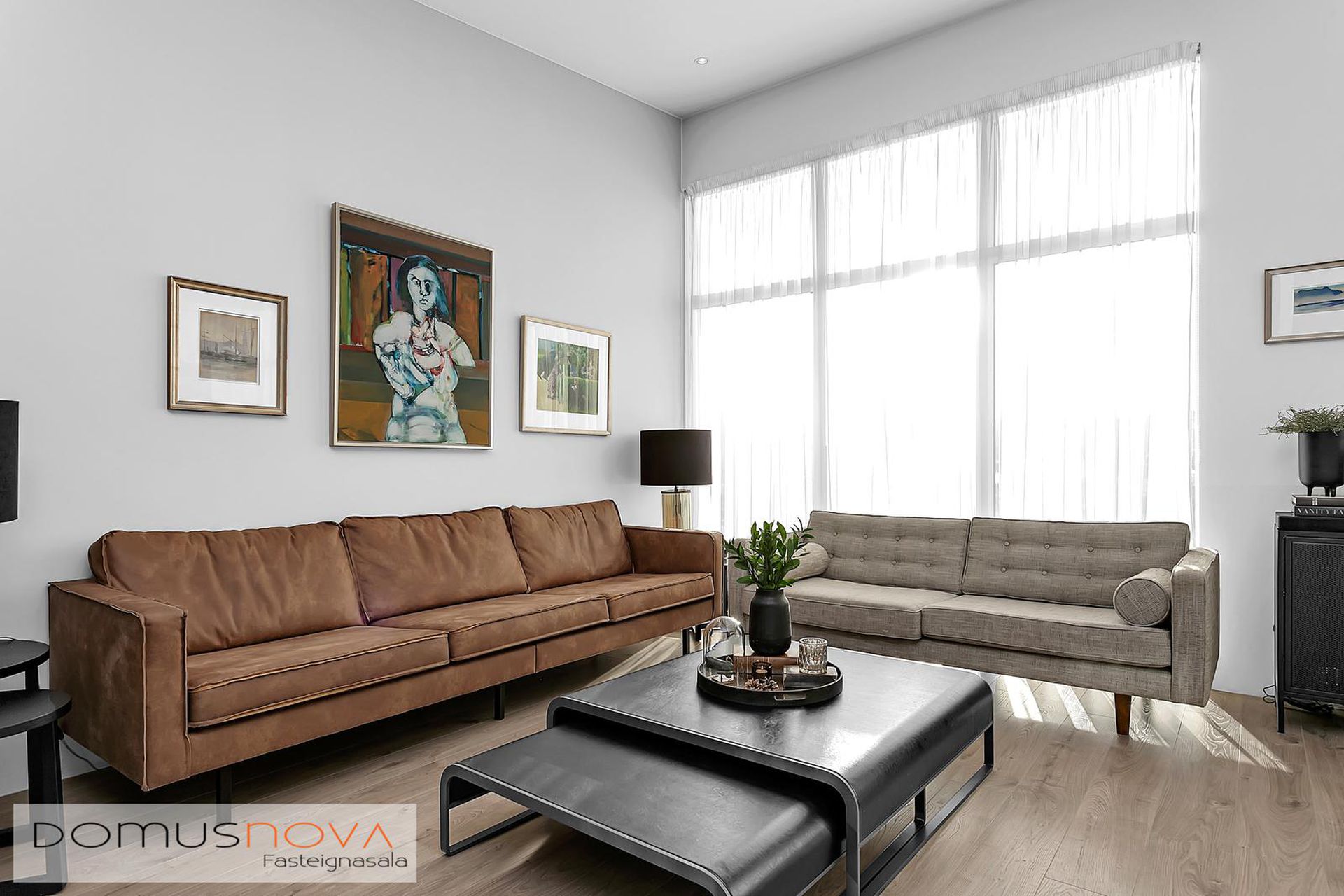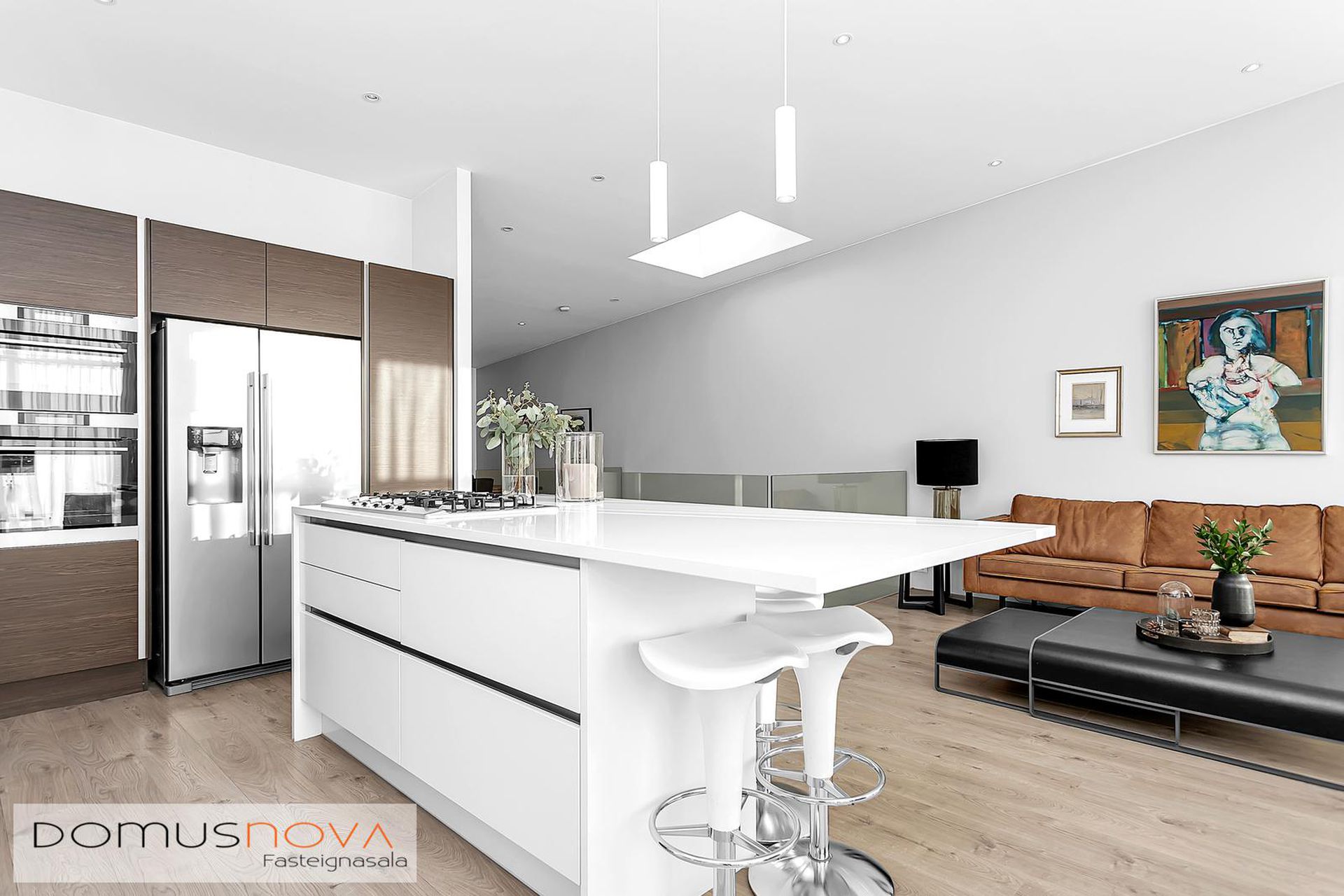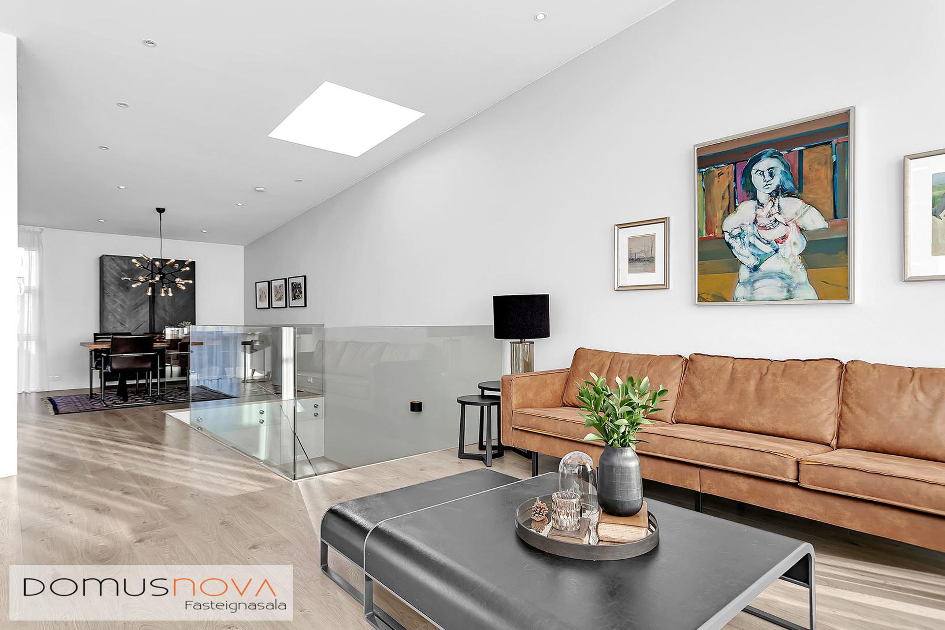 Nánari lýsing:Efri hæðStofa / borðstofa: Björt og opin stofa þar sem aukin lofthæð nýtur sín, gólfsíðir gluggar og fallegt útsýni.