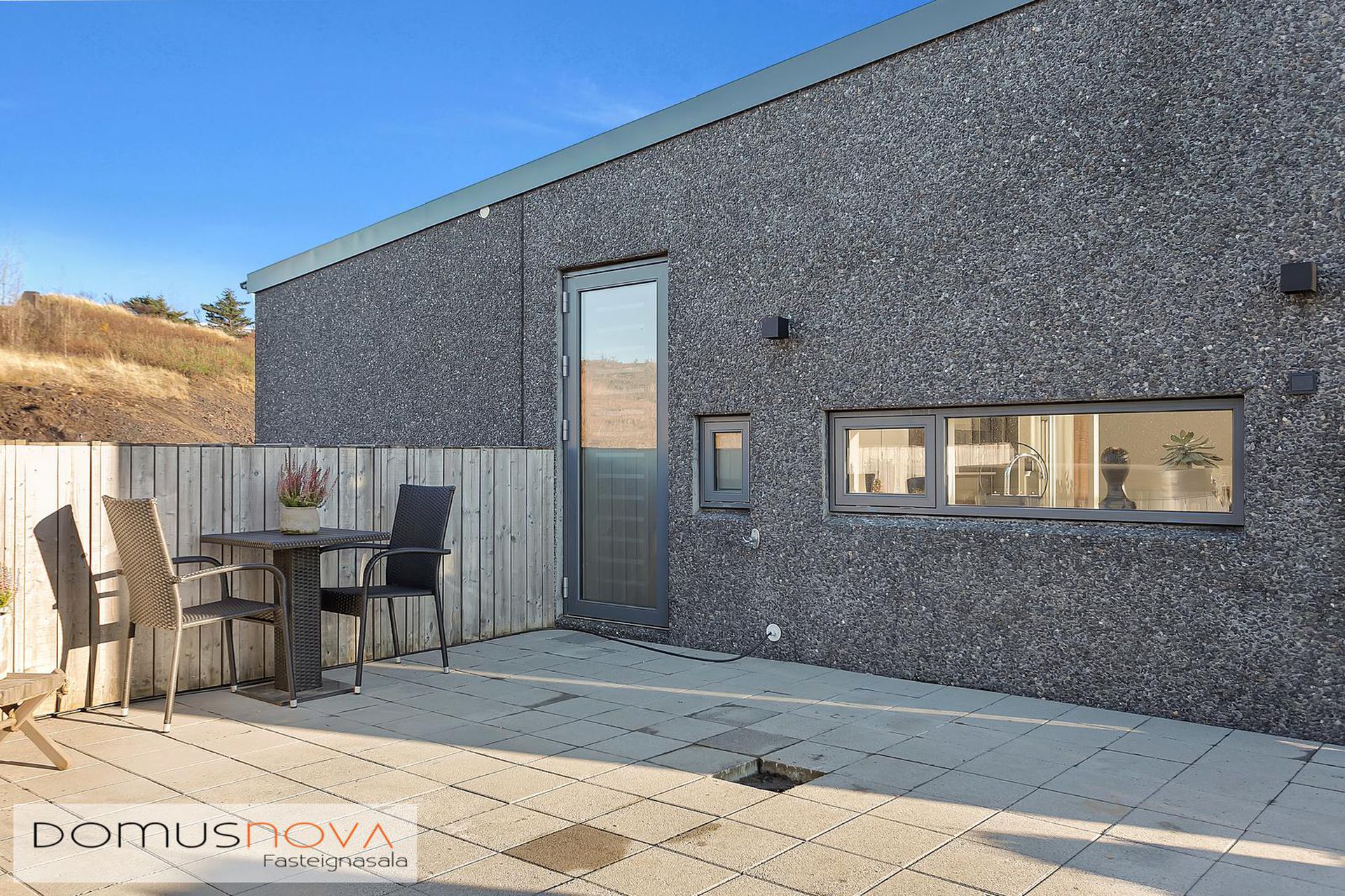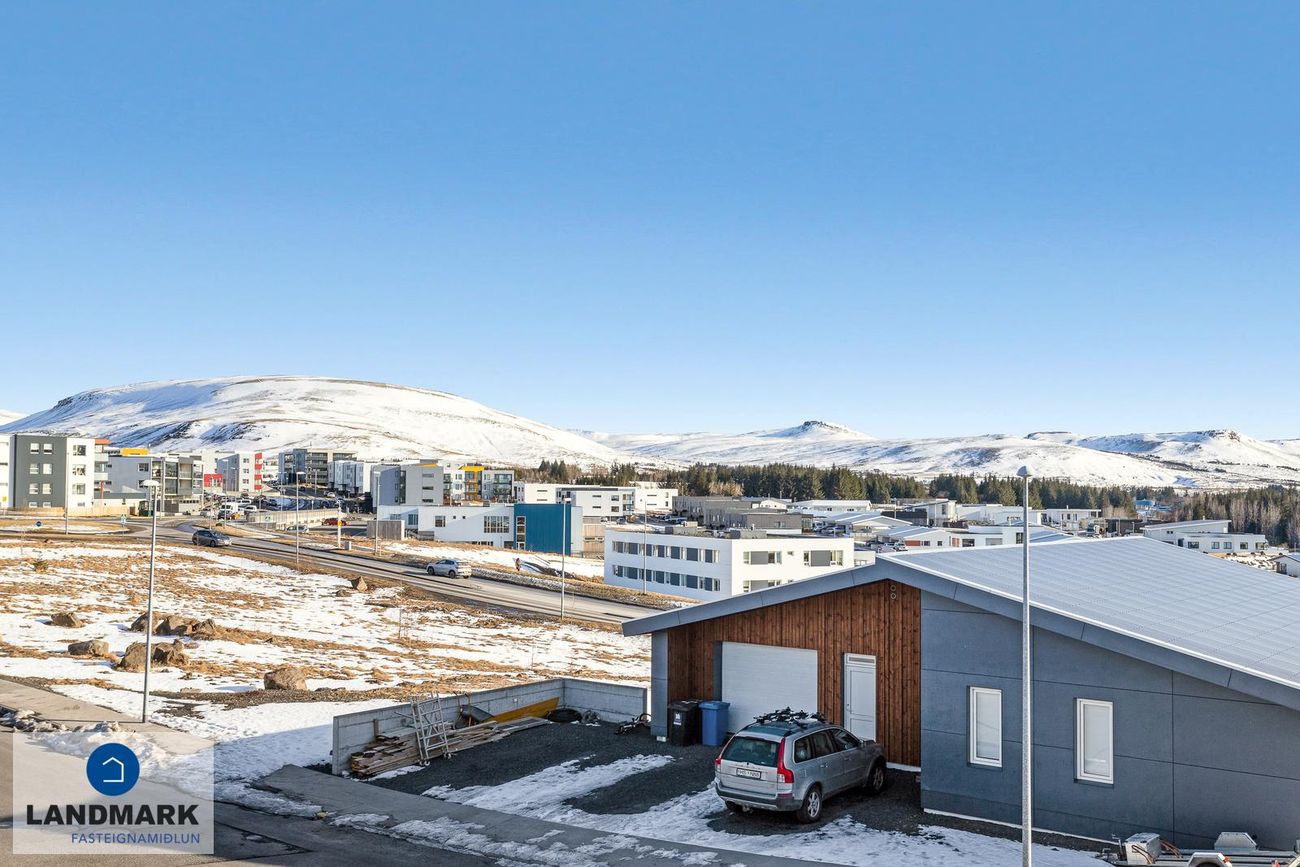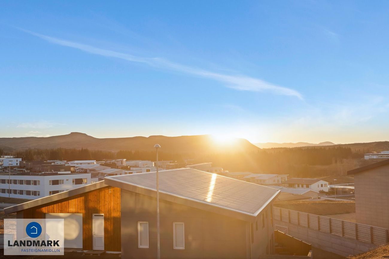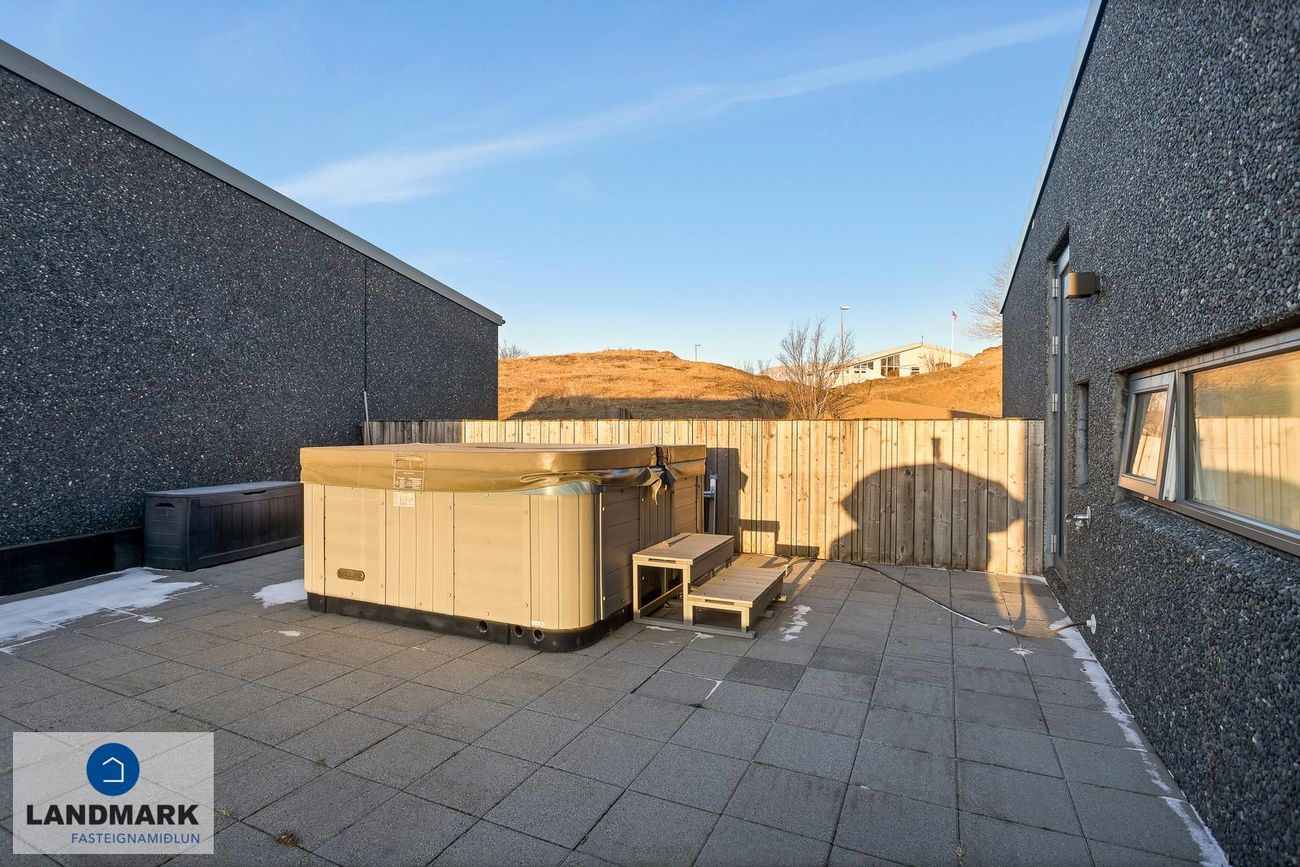 Lóð: Snjóbræðsla í bílaplani framan við húsið. Búið er að setja upp hleðslustöð við bílskúrshurð.