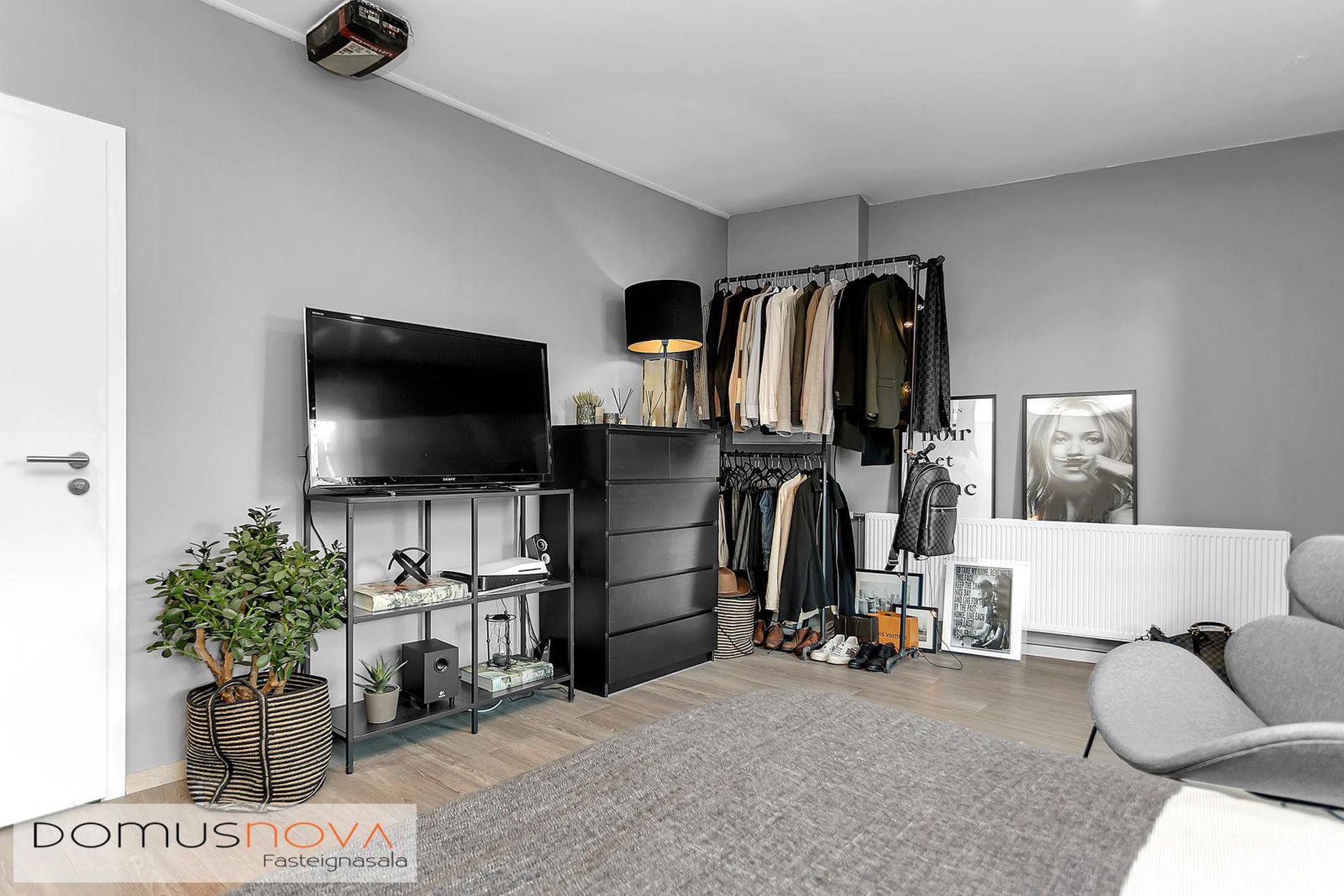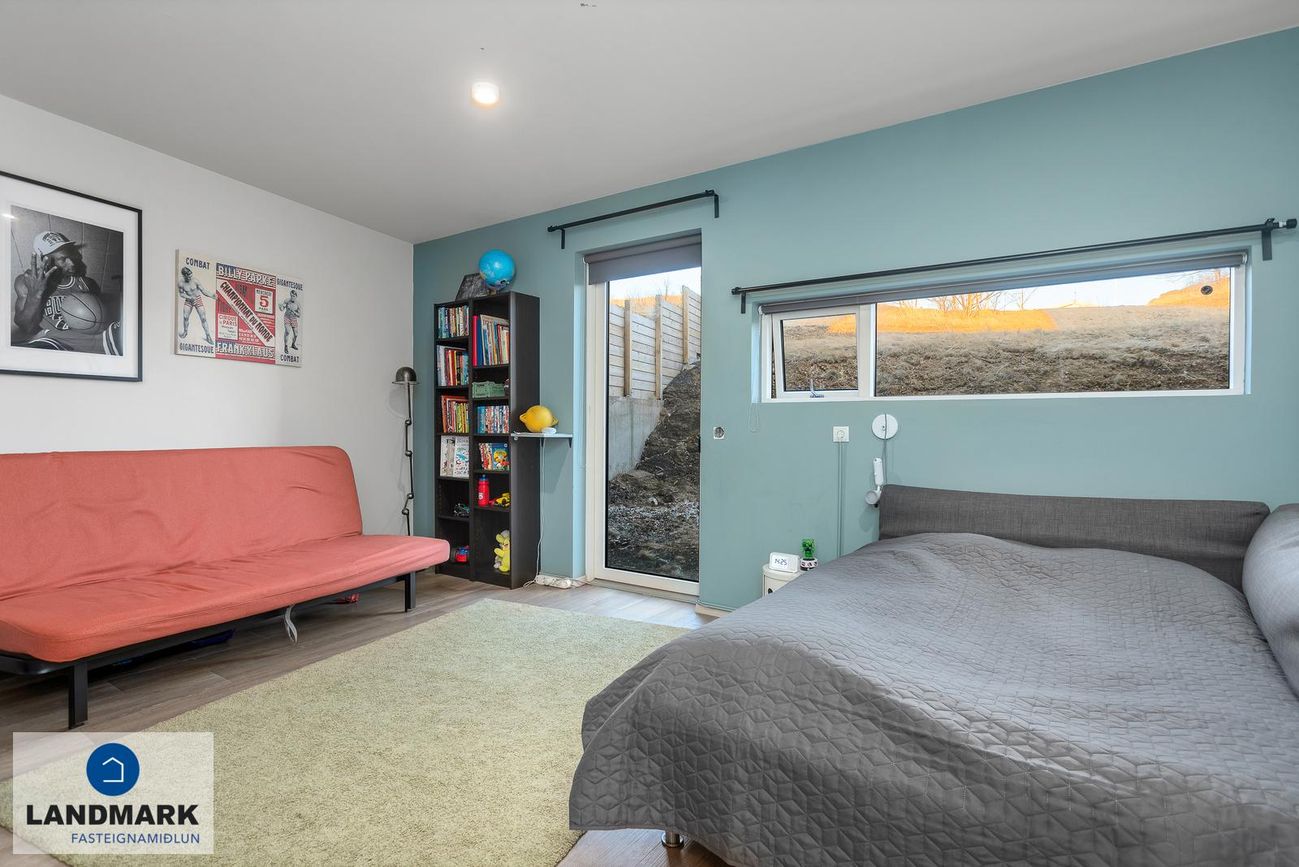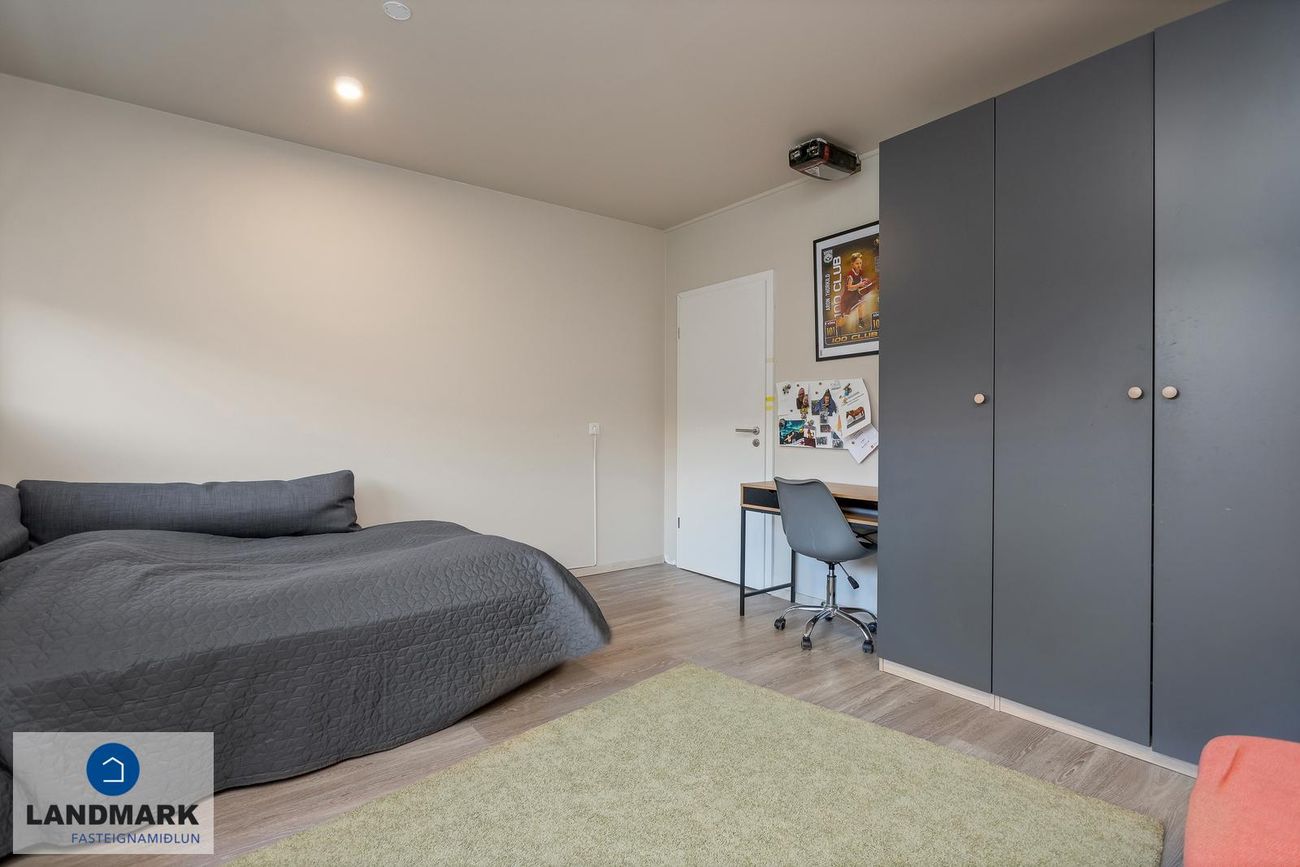 2. Búið er að stúka af gott svefnherbergi með fataskápum inn af skúrnum. Framhluti bílskúrsins er nýttur sem geymsla.