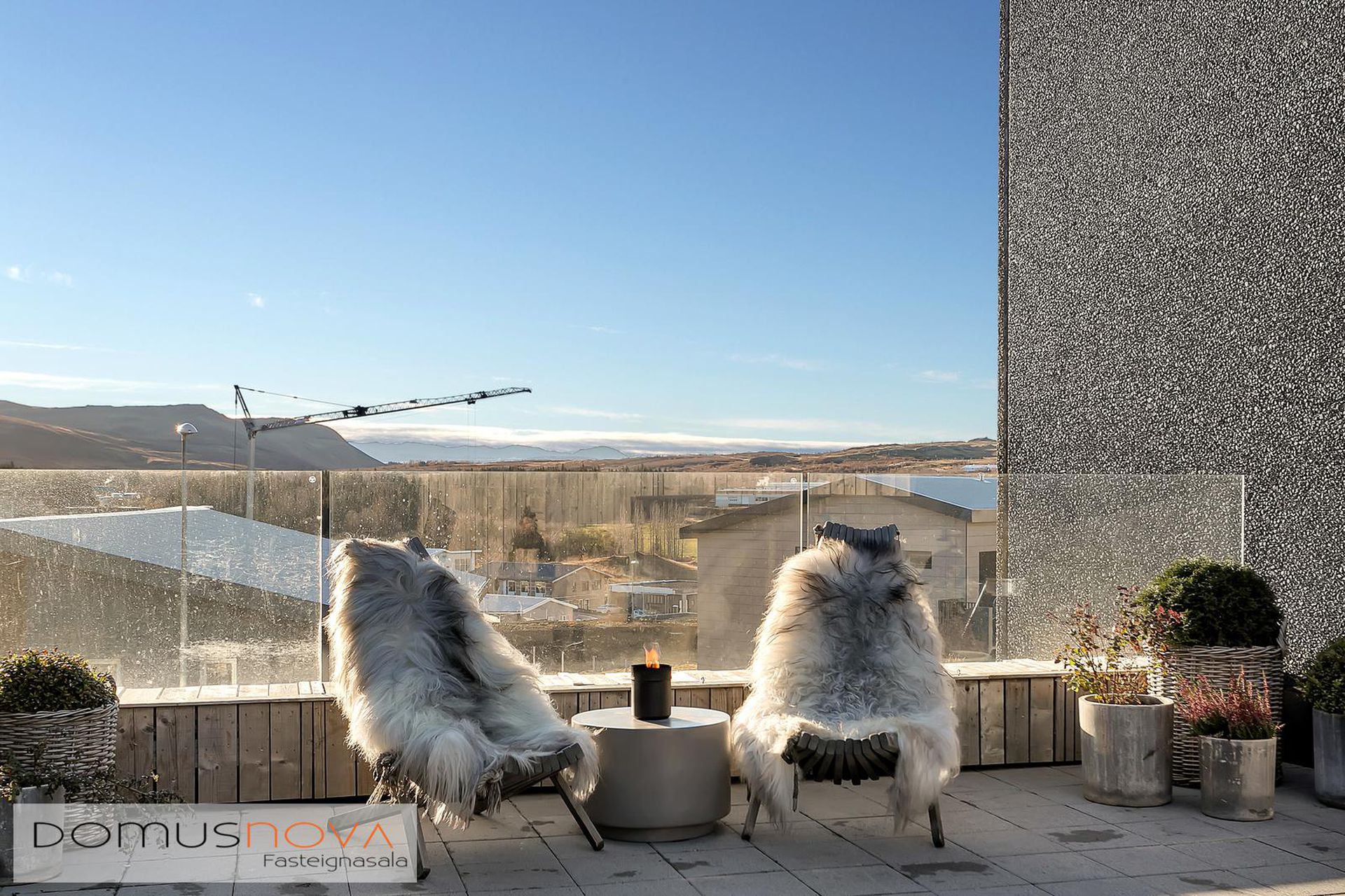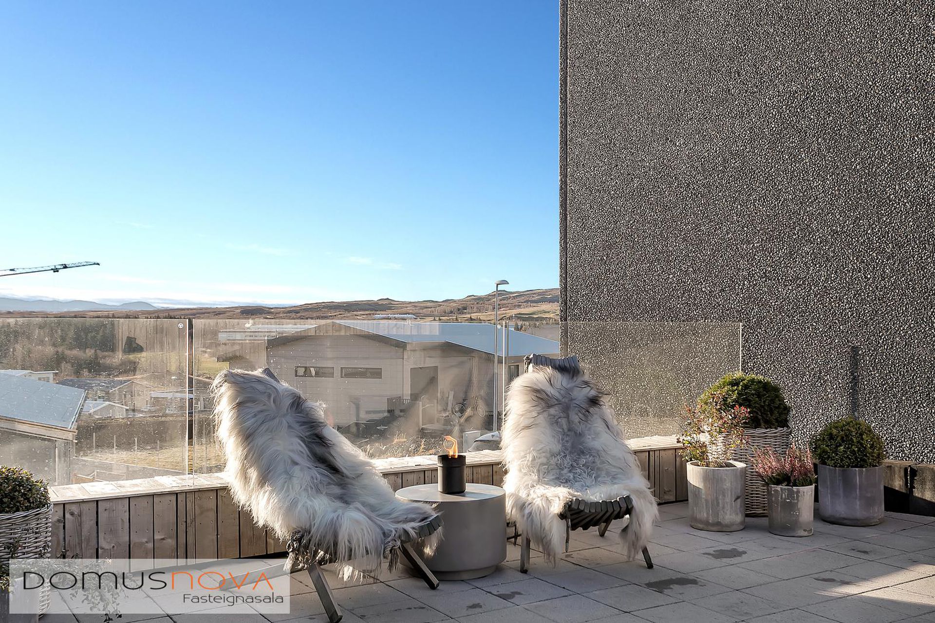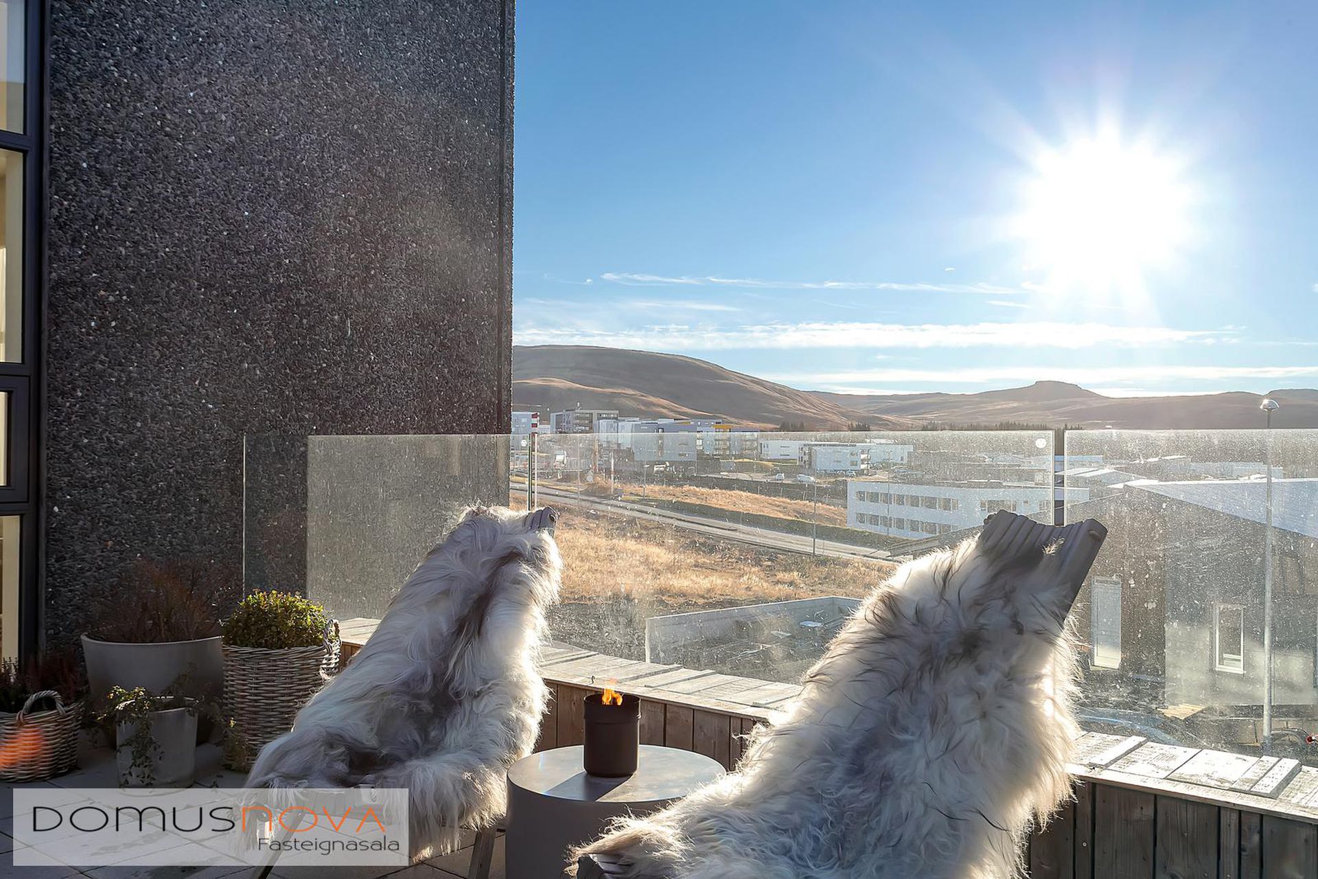 Svalir: Stórar hellulagðar svalir með heitum potti og fallegu útsýni en útgengt er á svalirnar bæði úr eldhúsi og baðherbergi.