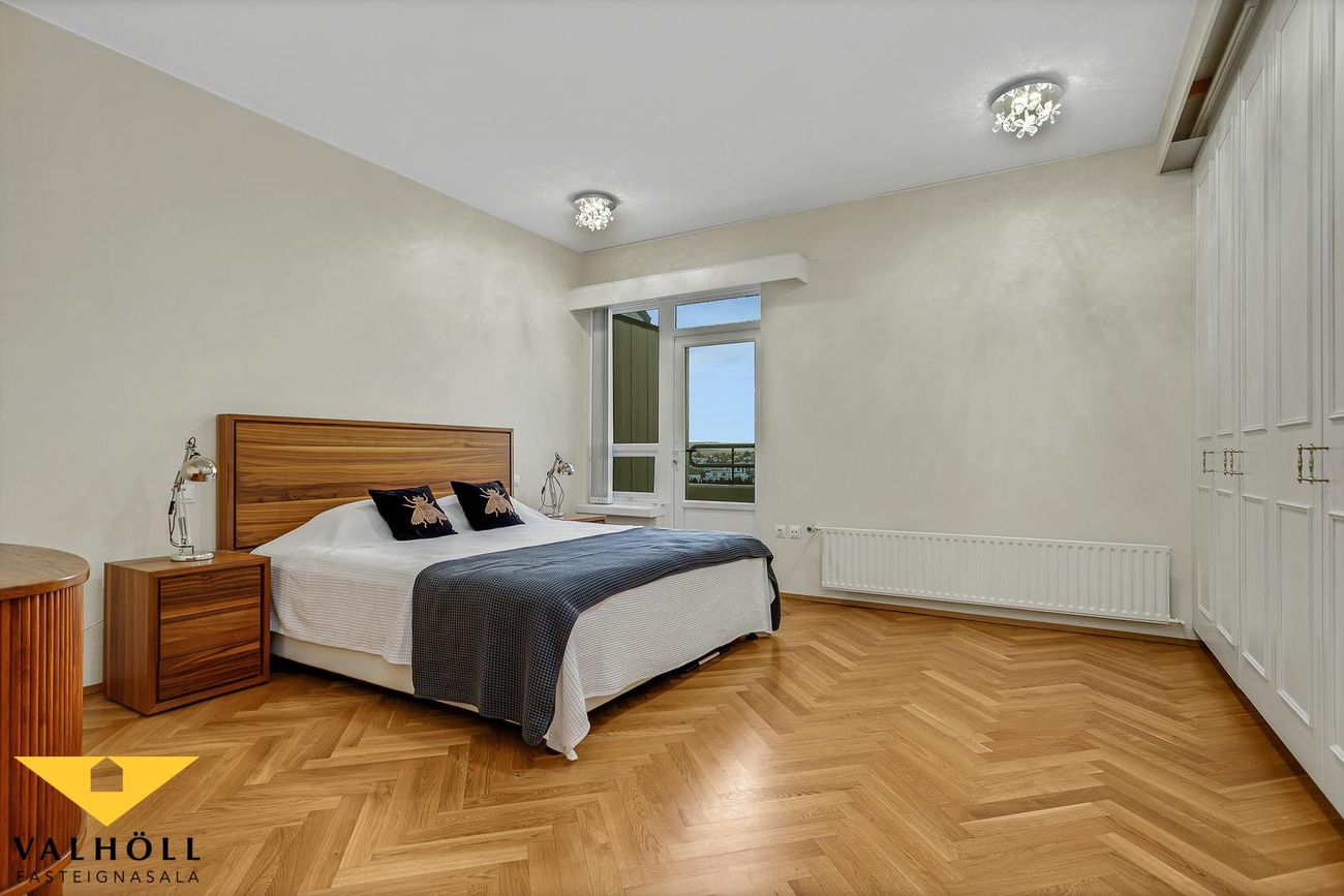 Svefnherbergi: mjög rúmgott herbergi með mikilli lofthæð, góðu skápaplássi, parketi á gólfi og útgengi á svalir.