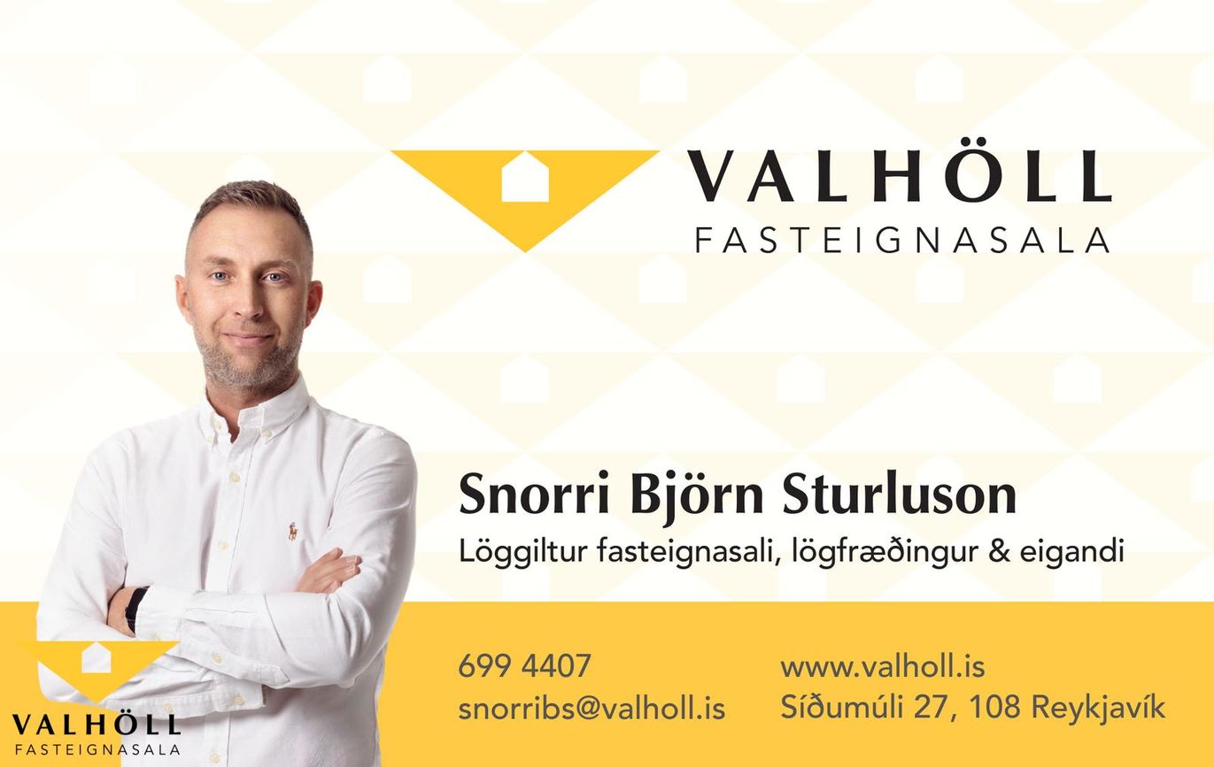 Nánari upplýsingar veitir:Snorri Björn Sturluson fasteignasali / lögfræðingur í síma 699-4407 eða í tölvupósti á netfangið snorribs@valholl.is