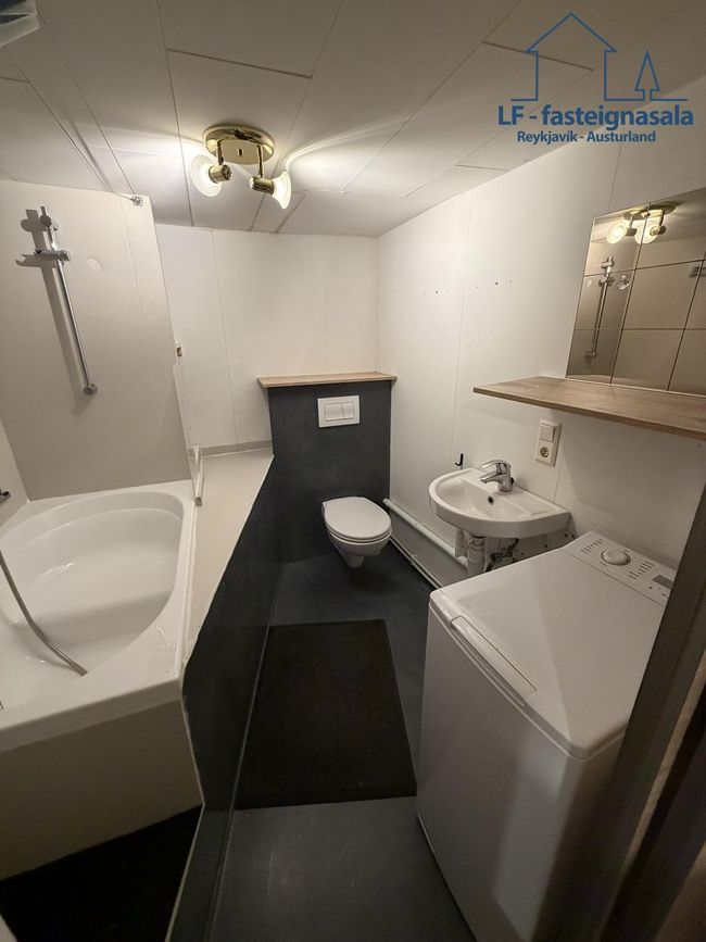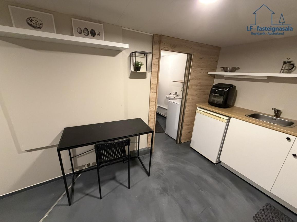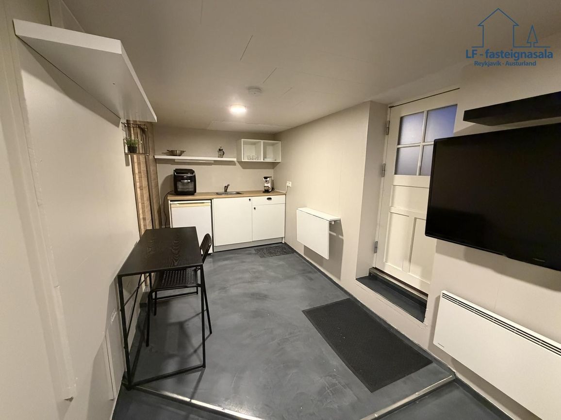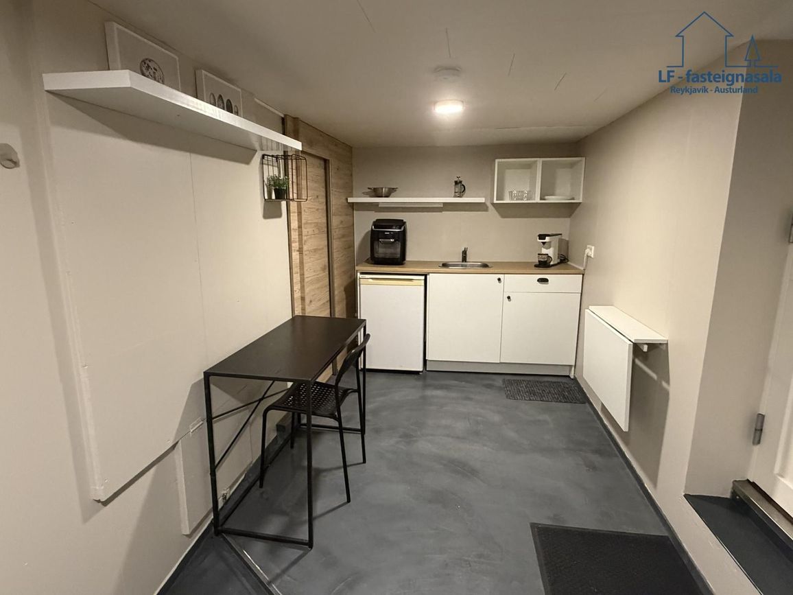 Á neðri hæð er sér íbúð með sér aðstöðu sem býður upp á góða útleigumöguleika. Neðri hæðin var endurnýjuð árið 2024 þar sem meðal annars var sett upp baðkar og lítil eldhúsinnrétting.