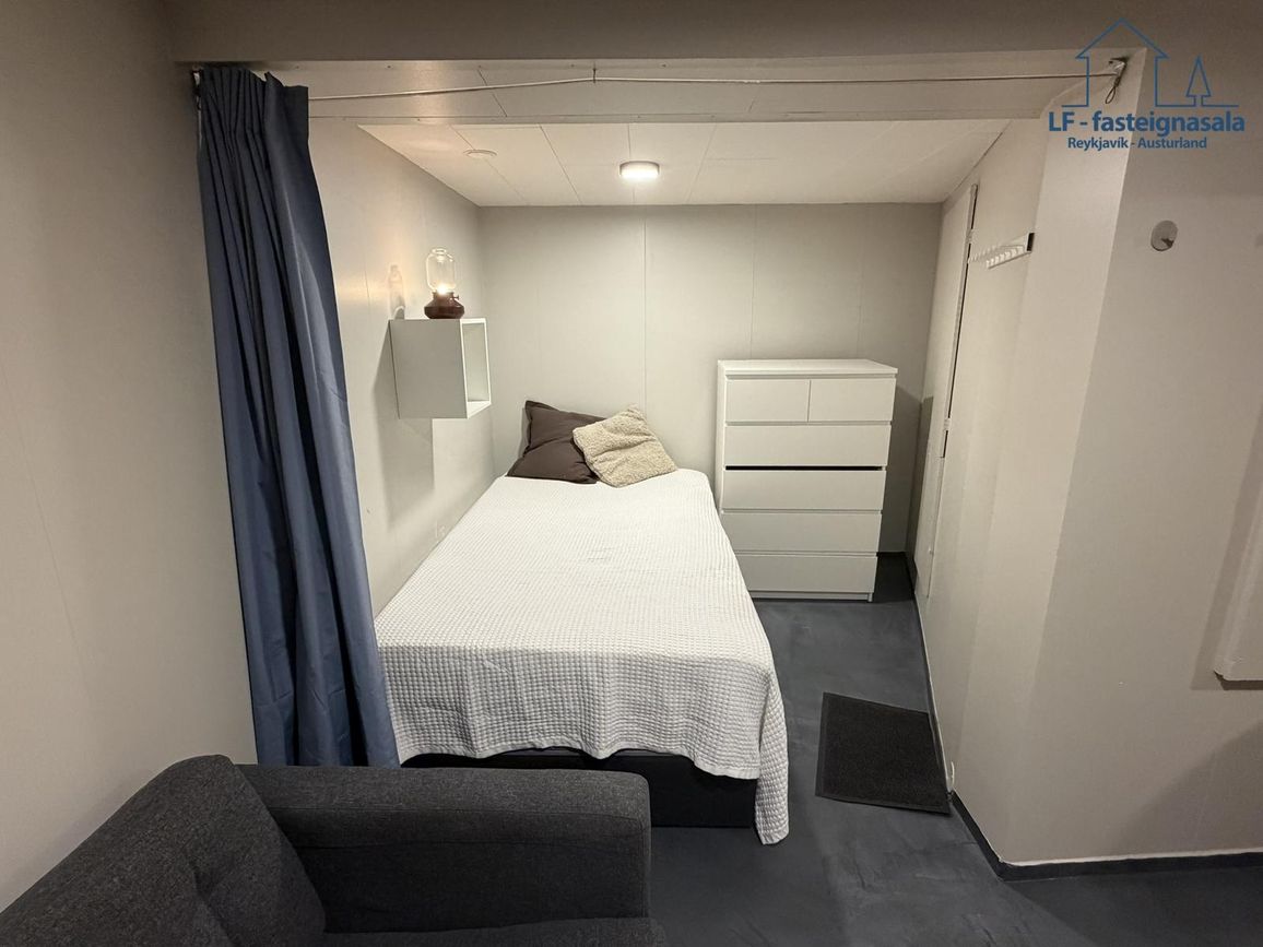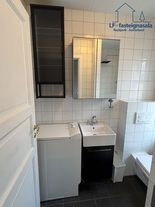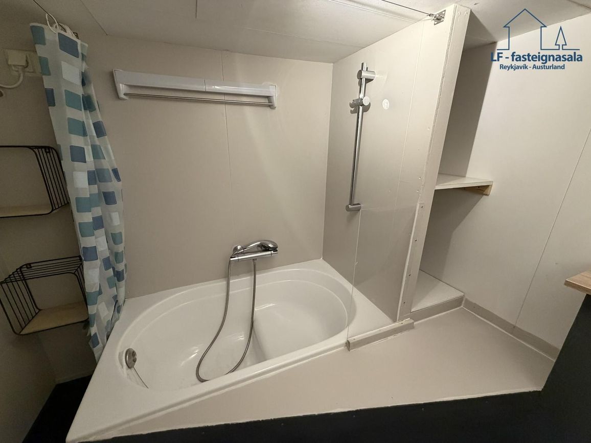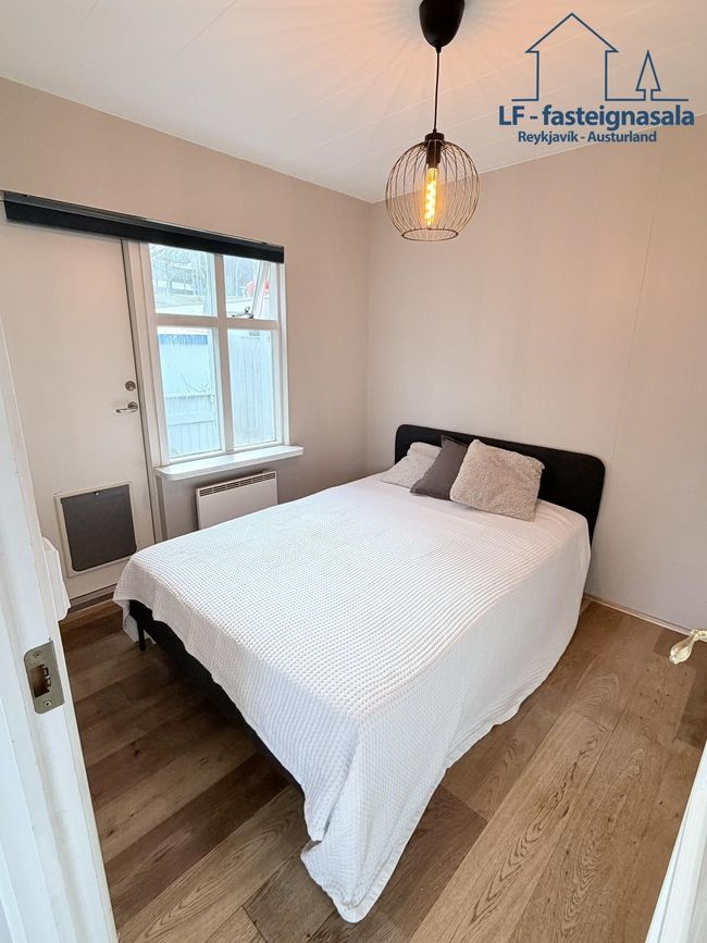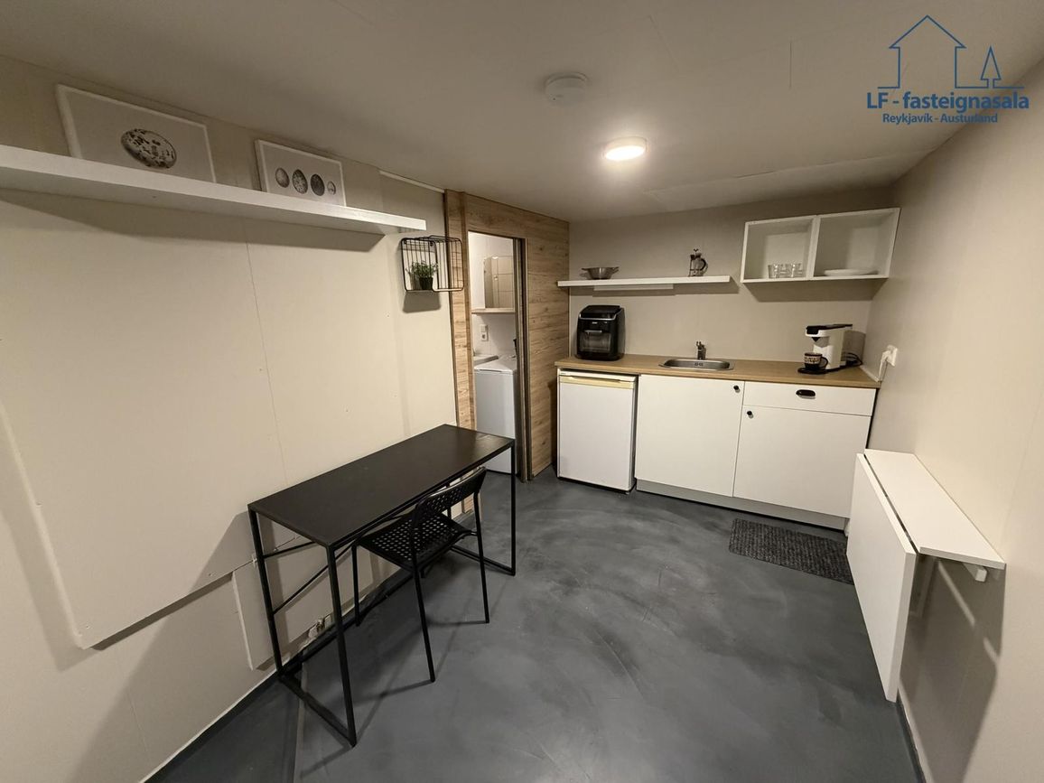 Á neðri hæð er sér íbúð með sér aðstöðu sem býður upp á góða útleigumöguleika. Neðri hæðin var endurnýjuð árið 2024 þar sem meðal annars var sett upp baðkar og lítil eldhúsinnrétting.