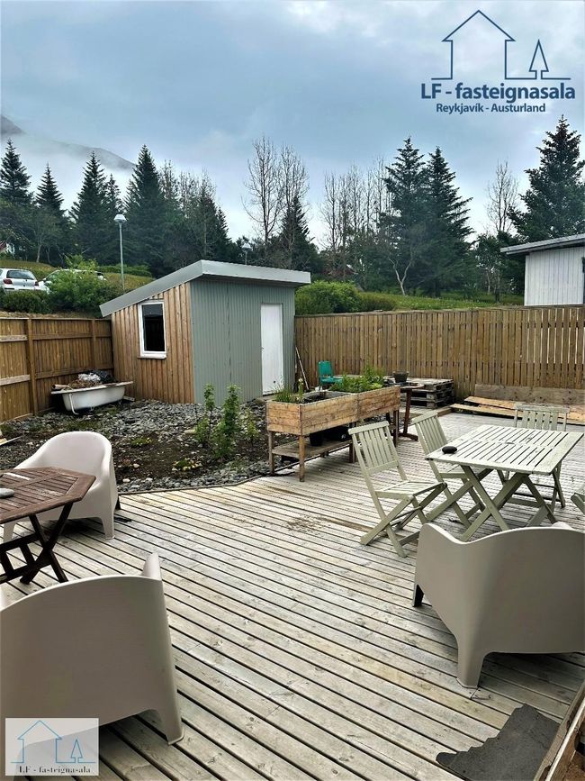 2022 - Stór sólpallur og garður norðan megin afgirtur. Nýr geymsluskúr smíðaður. Nýir gluggar sunnan megin (stofa og eldhús) á efri hæð.