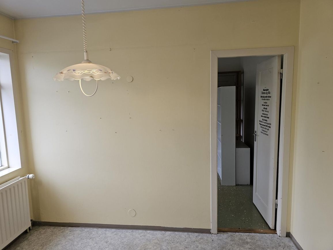Geymsla innan íbúðar, Dúkur á gólfi, stigi upp á háaloft(skriðloft). Einnig er gengt af stigapalli í geymsluna