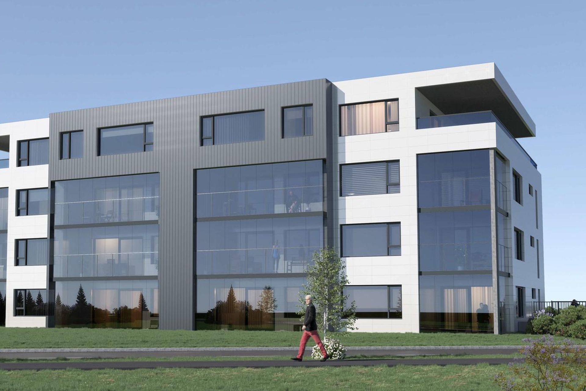 Frágangur utanhússHúsið er uppsteypt, einangrað að utan og klætt með loftræstri flísaklæðningu í ljósum lit. Stigahús er klætt með álklæðningu í dökkum lit. Aðkoma að íbúðum er um svalagang sem er skermdur af með glervegg með opnunum samkvæmt útfærslu brunahönnuðar. Svalir íbúða 1,2 og 3 hæðar eru lokaðar af með svalalokun. Svalir 4.hæðar eru með handriði. Gluggar eru timburgluggar með álkápu að utanverðu Ideal Combi. Rennihurðar eru út á svalir allra íbúða og eru úr áli frá Reyners. Útihurðir með rafdrifinni opnun eru úr áli. Þakefni er ábræddur tjörudúkur.