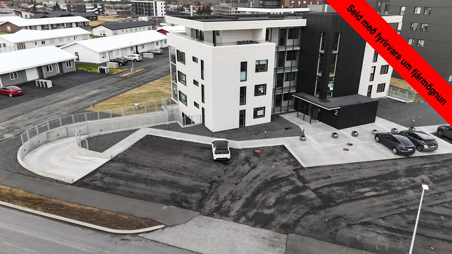 LóðLóð afhendist fullfrágengin. Bílastæði eru malbikuð og garður með grasi. Gangstígar framan við hús eru steyptir með kústaðri áferð. Snjóbræðsla er í rampi, bílastæðum hreyfihamlaðra og göngustígum framan við hús.