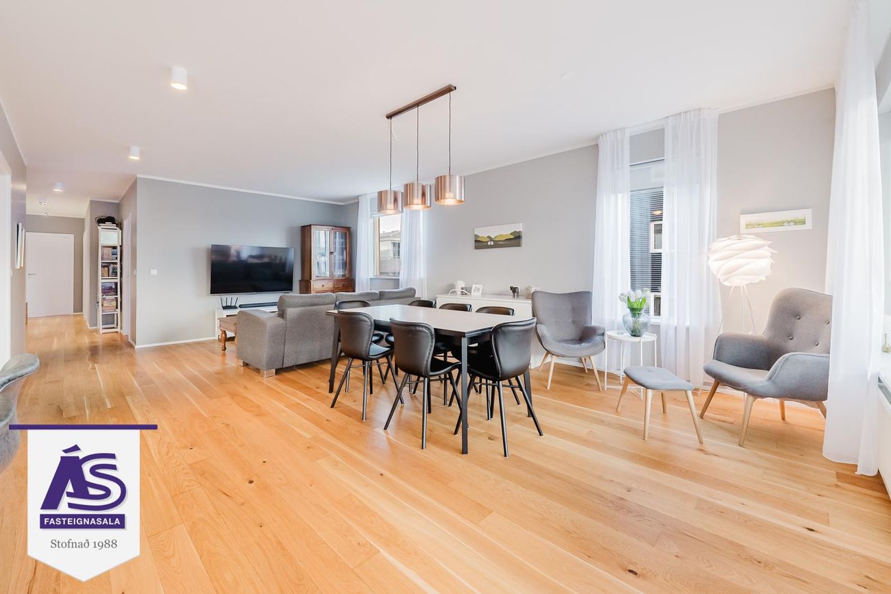 Virkilega glæsileg 5-6 herbergja íbúð í litlu fjölbýli við Engjavelli í Hafnarfirði. Tvennar svalir, tvö baðherbergi og sér inngangur.