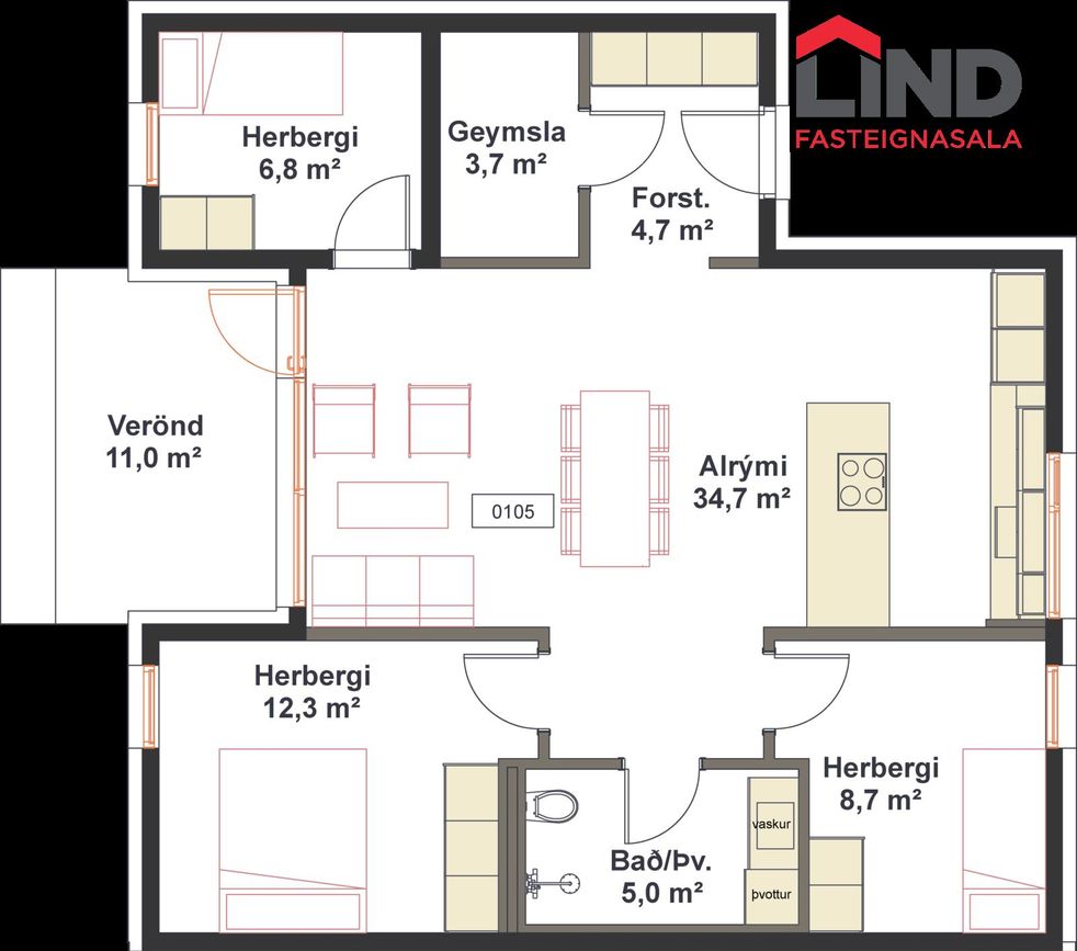 | 4 | 91,90 m² | 79.900.000 kr. 26. apríl 2026 | 79.900.000 kr. 18. apríl 2024 |