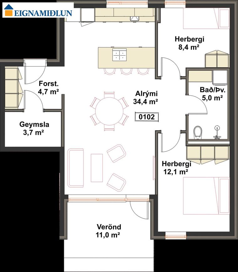 0301 ![]() | 4 | 112,20 m² | 97.900.000 kr. 30. apríl 2025 | 96.900.000 kr. 27. júní 2025 |