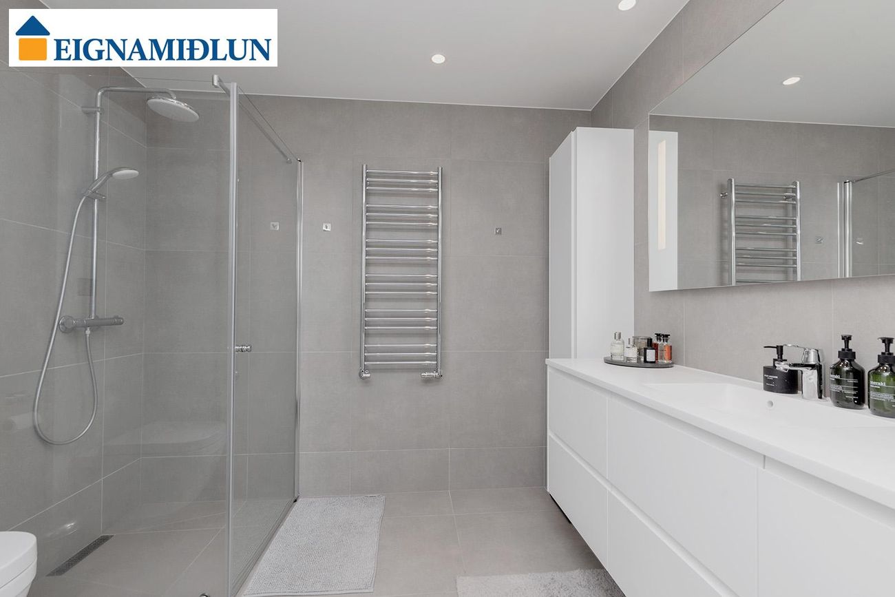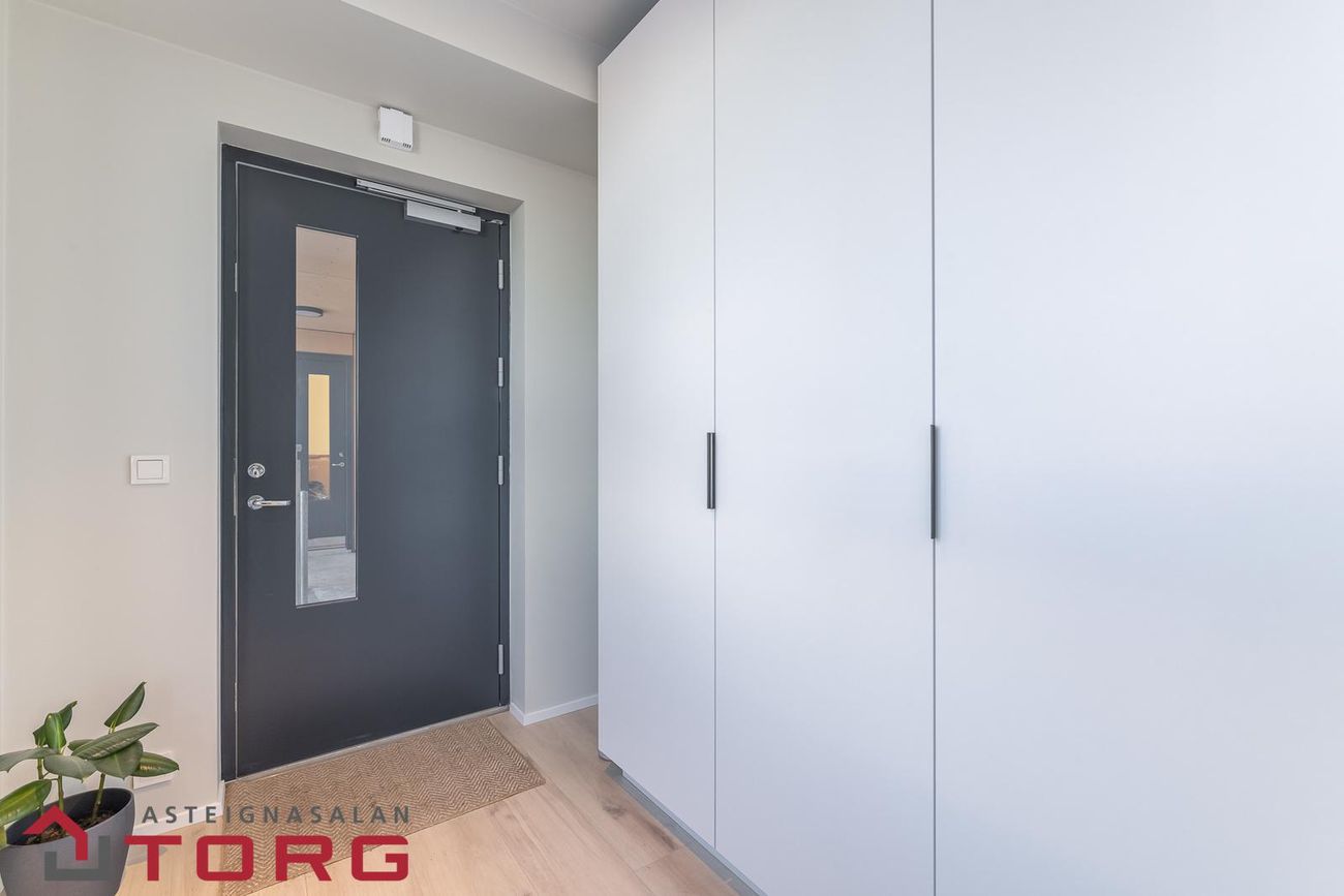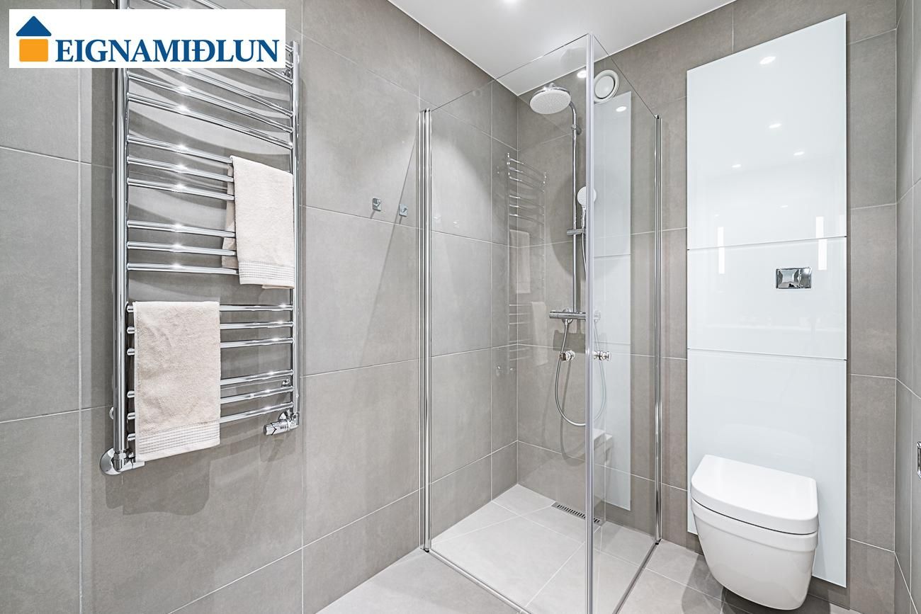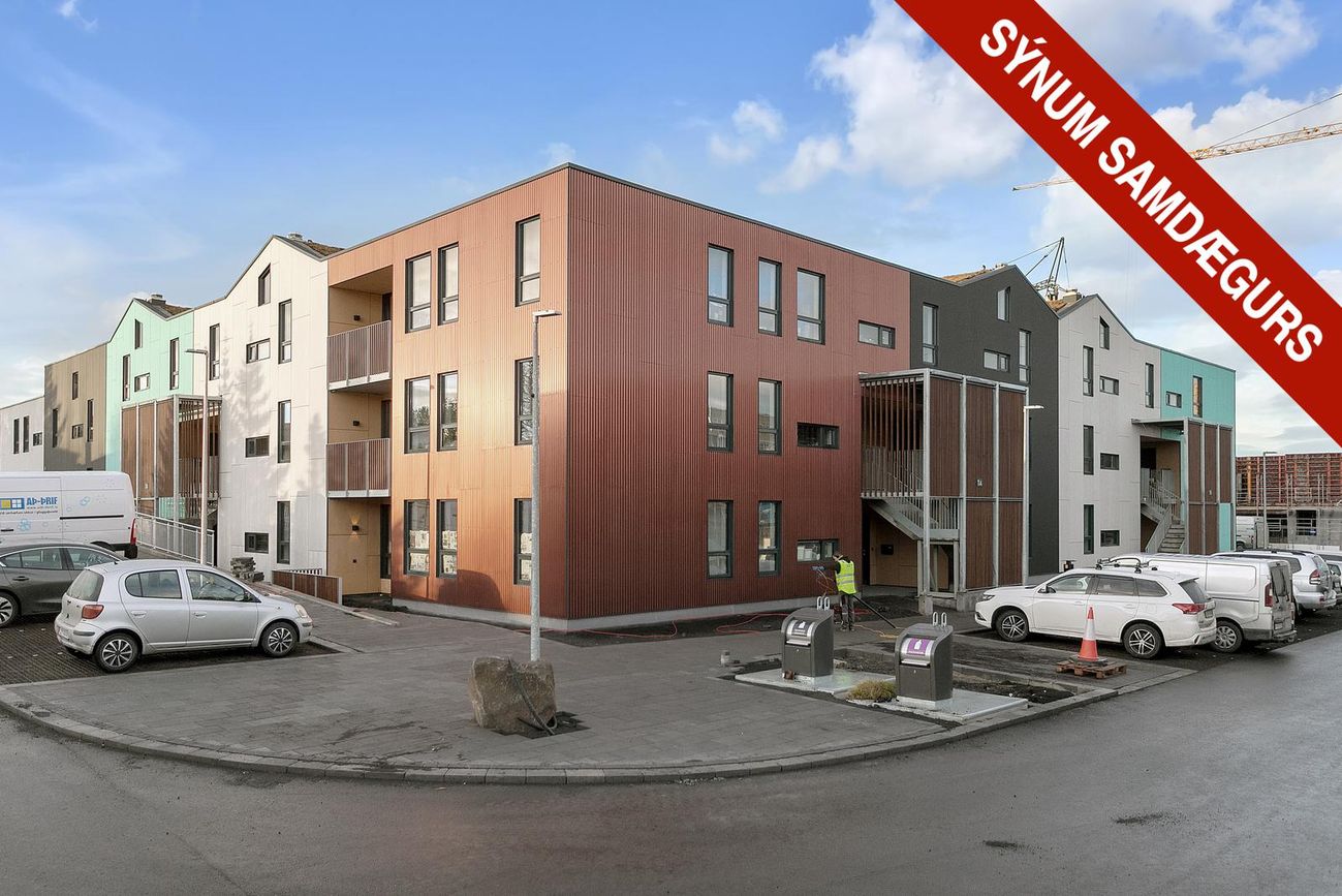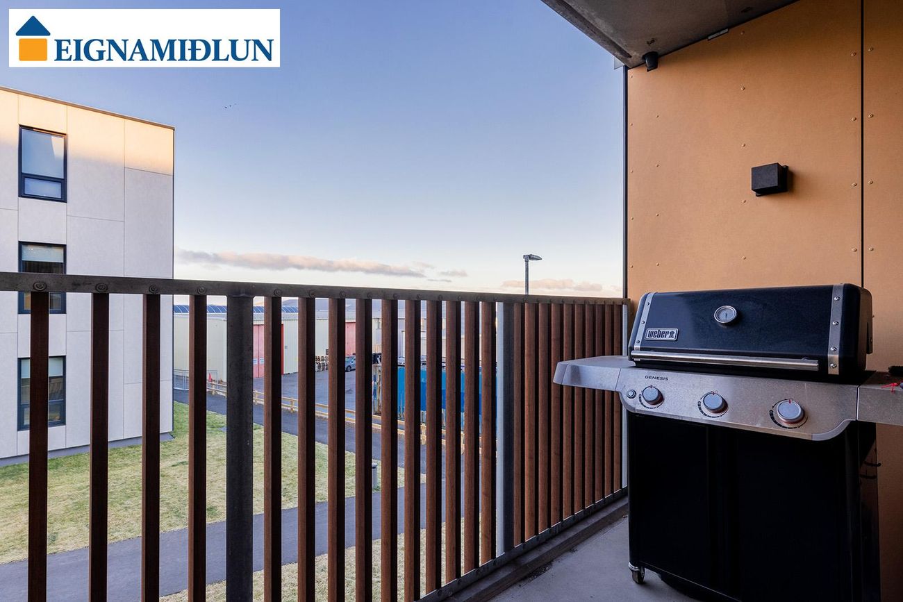 Eskiás 6 er 29 íbúða bygging sem var byggð árið 2024. Allar íbúðir með sérinngangi og allir fermetrar innan íbúðarinnar. Eina sameign hússins er sameiginleg hjóla- og vagnageymsla. Húsið er einangrað að utan og klætt viðhaldsfríum stein - og álplötum. Baðherbergi/þvottahús eru forframleidd og hífð inn í hús samhliða uppsteypu húsanna. Söluaðili baðherbergjanna er Wilbergs/Bitter ehf. (Parki) og eru þau hönnuð af Boxen samkvæmt norskum stöðlum. Mikið er lagt upp úr vönduðum frágang og er allt efni og búnaður af þekktri og viðurkenndri gerð. Fallegt parket á öllum gólfum íbúðarinnar, flísar á beðherbergi. Innréttingar í eldhúsi frá NOBILIA/GKS með innbyggðum ísskáp og innbyggðri uppþvottavél. Eldhústæki, blástursofn, spanhelluborð og innbyggður ísskápur frá Whirlpool. Stór vinnueyja í eldhúsi með góðri vinnuaðstöðu og gott skápapláss í eldhúsi. Fataskápar í báðum svefnherbergjum og fataskápar í forstofu frá GKS. Næg bílastæði á lóðinni og búið að tengja rafbílahleðslukerfi sem er aðgengilegt öllum íbúum.