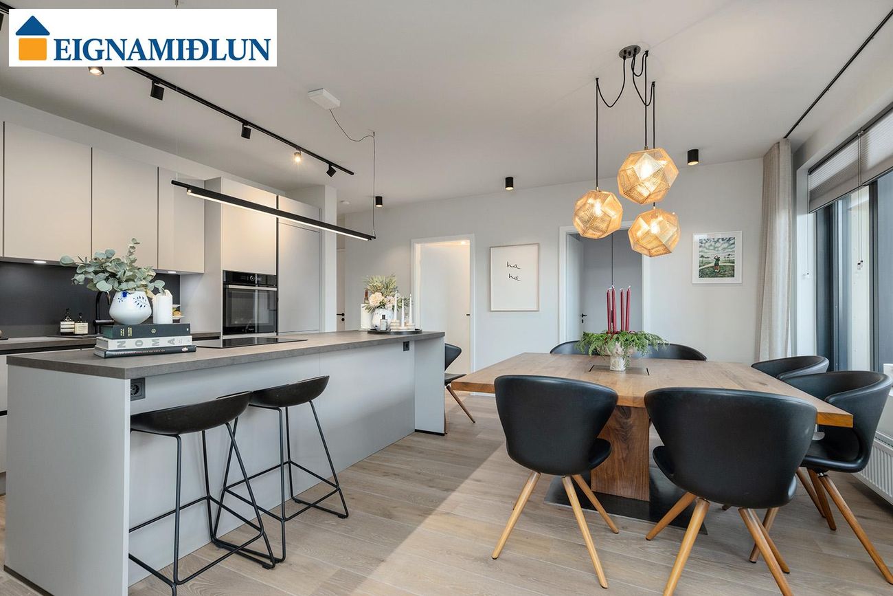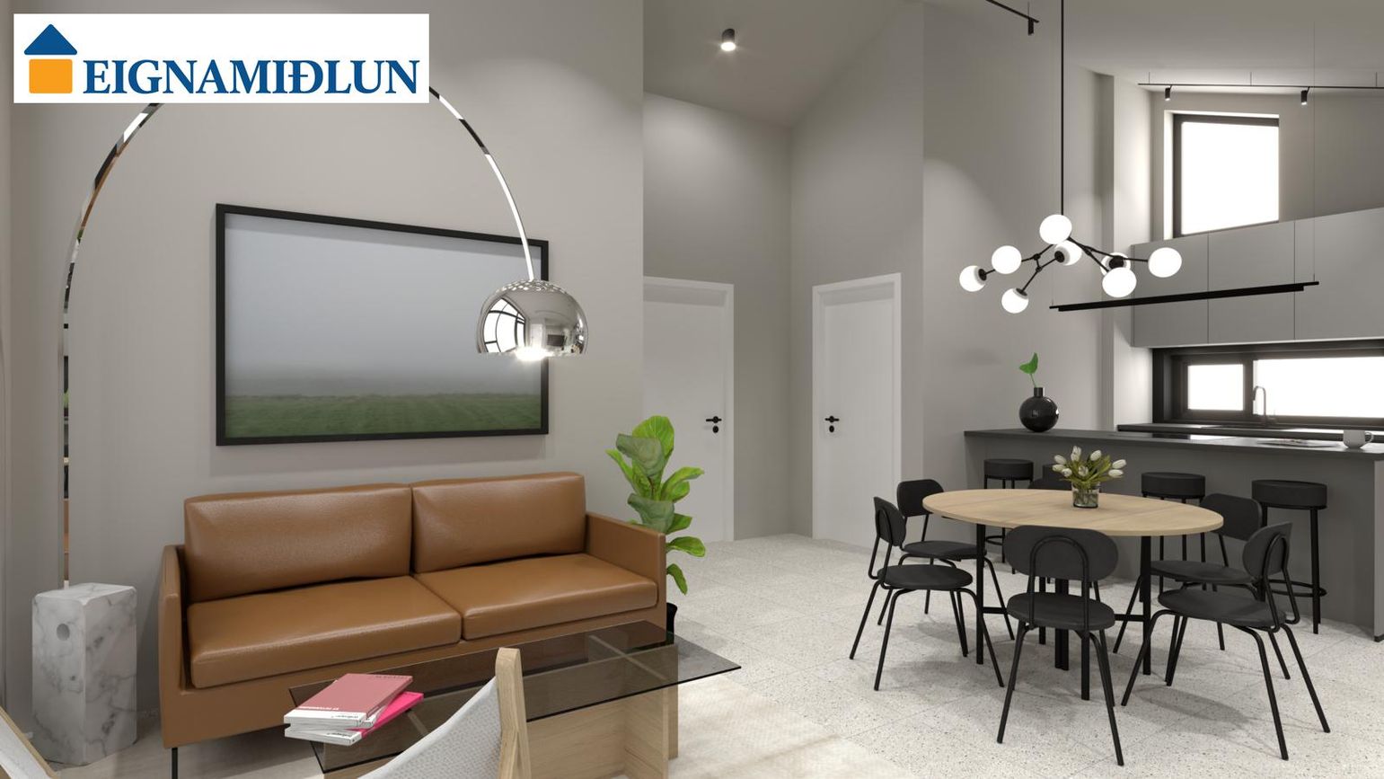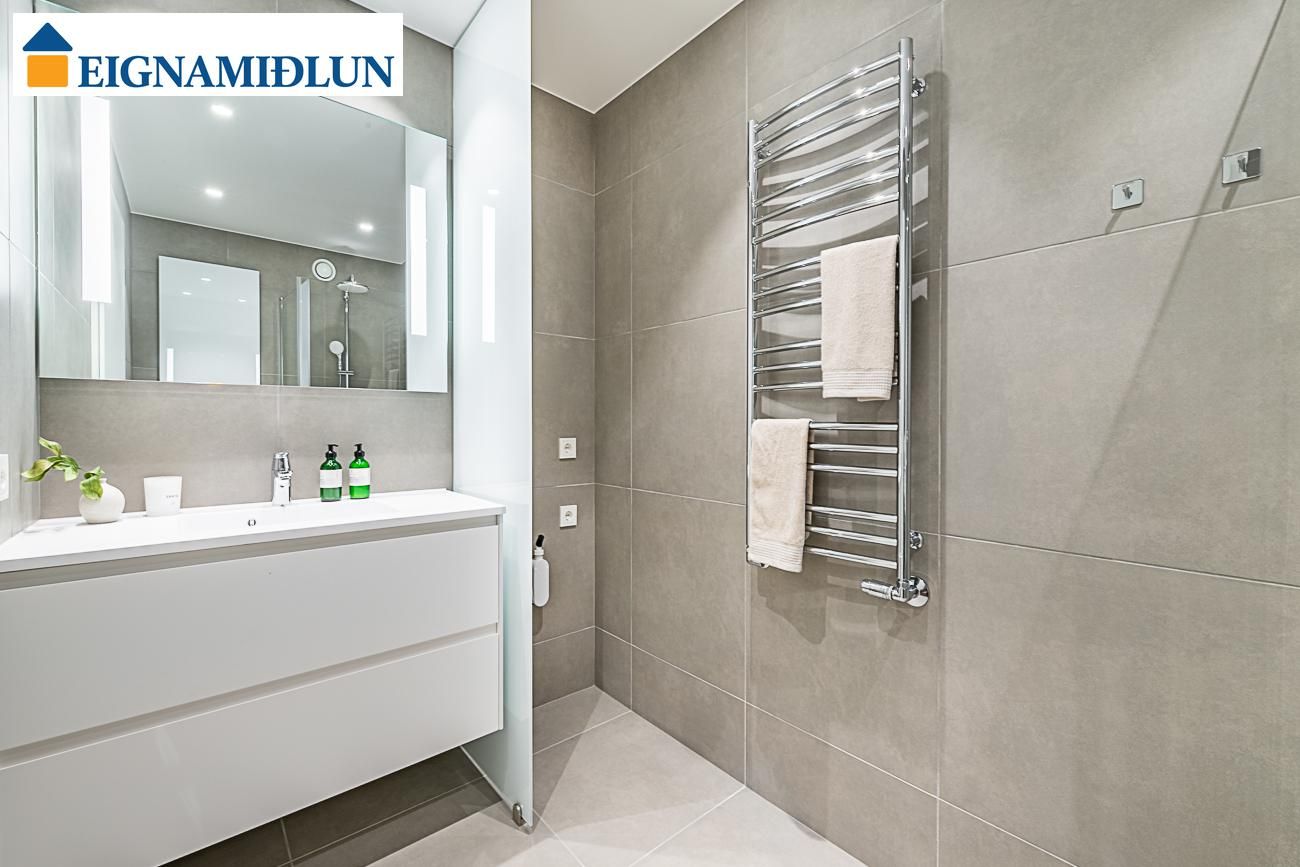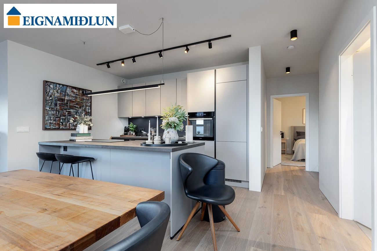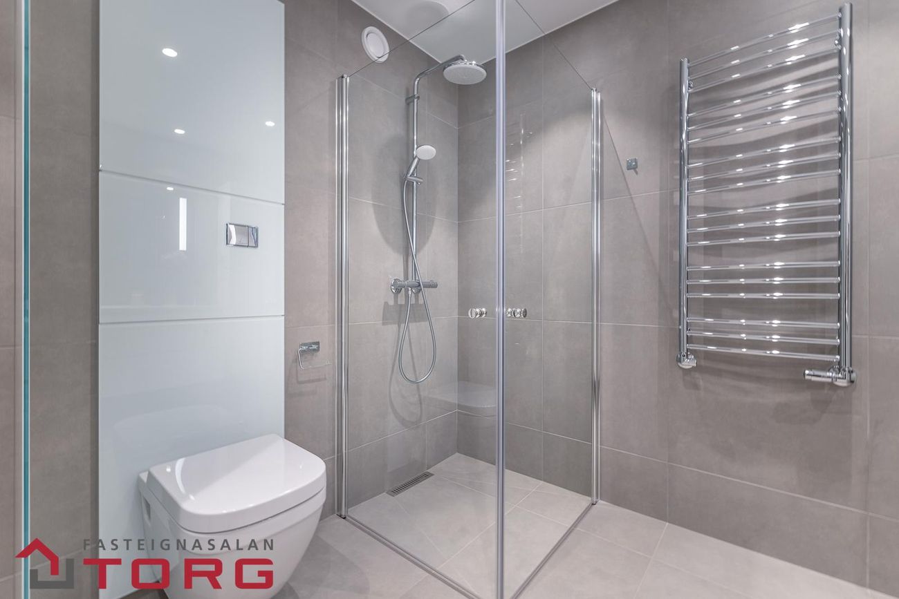 Eskiás 6 er 29 íbúða bygging sem var byggð árið 2024. Allar íbúðir með sérinngangi og allir fermetrar innan íbúðarinnar. Eina sameign hússins er sameiginleg hjóla- og vagnageymsla. Húsið er einangrað að utan og klætt viðhaldsfríum stein - og álplötum. Baðherbergi/þvottahús eru forframleidd og hífð inn í hús samhliða uppsteypu húsanna. Söluaðili baðherbergjanna er Wilbergs/Bitter ehf. (Parki) og eru þau hönnuð af Boxen samkvæmt norskum stöðlum. Mikið er lagt upp úr vönduðum frágang og er allt efni og búnaður af þekktri og viðurkenndri gerð. Fallegt parket á öllum gólfum íbúðarinnar, flísar á beðherbergi. Innréttingar í eldhúsi frá NOBILIA/GKS með innbyggðum ísskáp og innbyggðri uppþvottavél. Eldhústæki, blástursofn, spanhelluborð og innbyggður ísskápur frá Whirlpool. Stór vinnueyja í eldhúsi með góðri vinnuaðstöðu og gott skápapláss í eldhúsi. Fataskápar í báðum svefnherbergjum og fataskápar í forstofu frá GKS. Næg bílastæði á lóðinni og búið að tengja rafbílahleðslukerfi sem er aðgengilegt öllum íbúum.