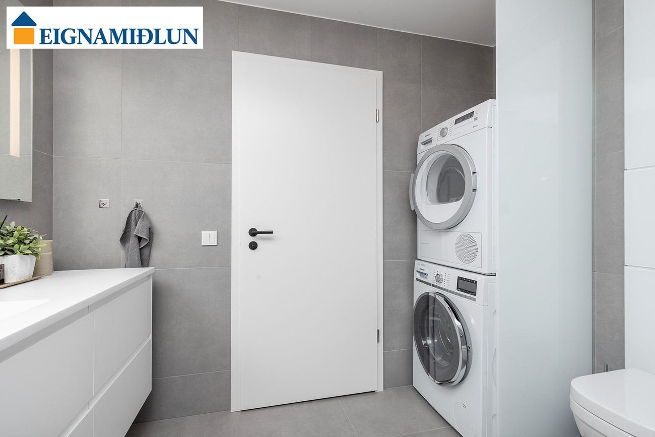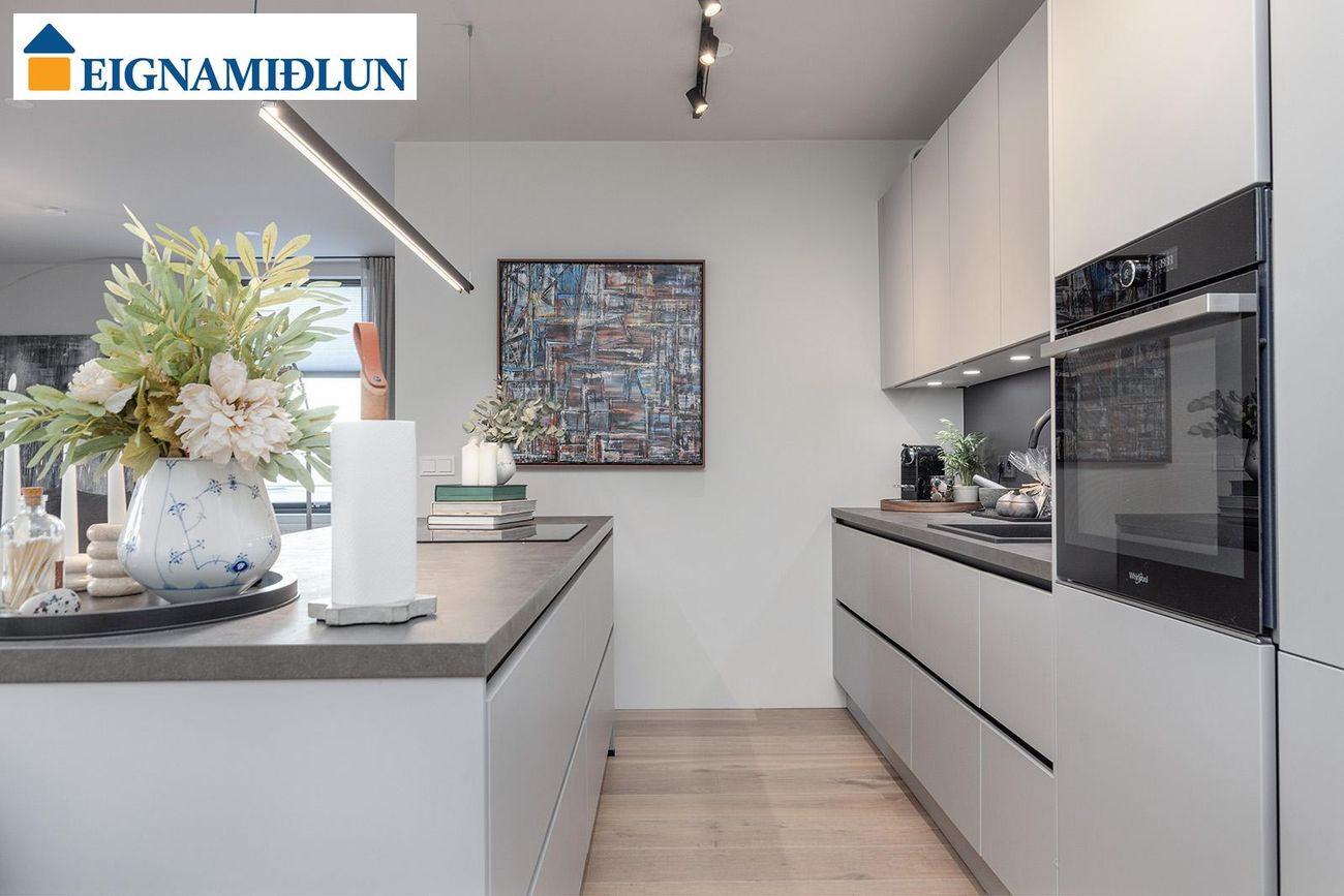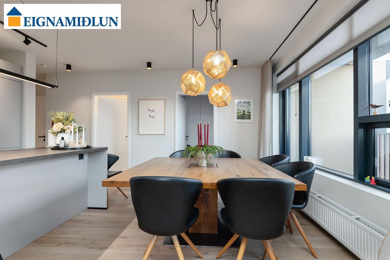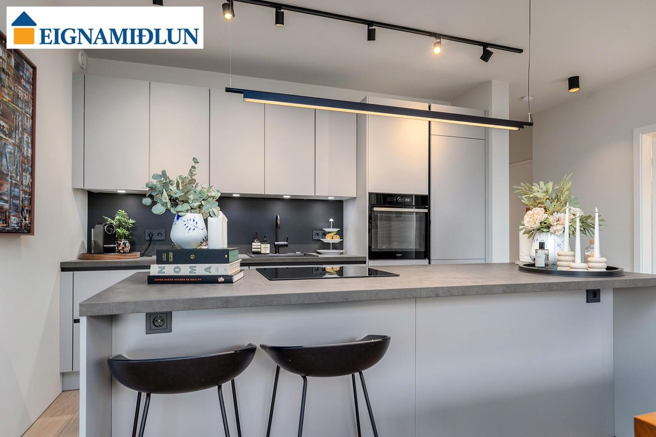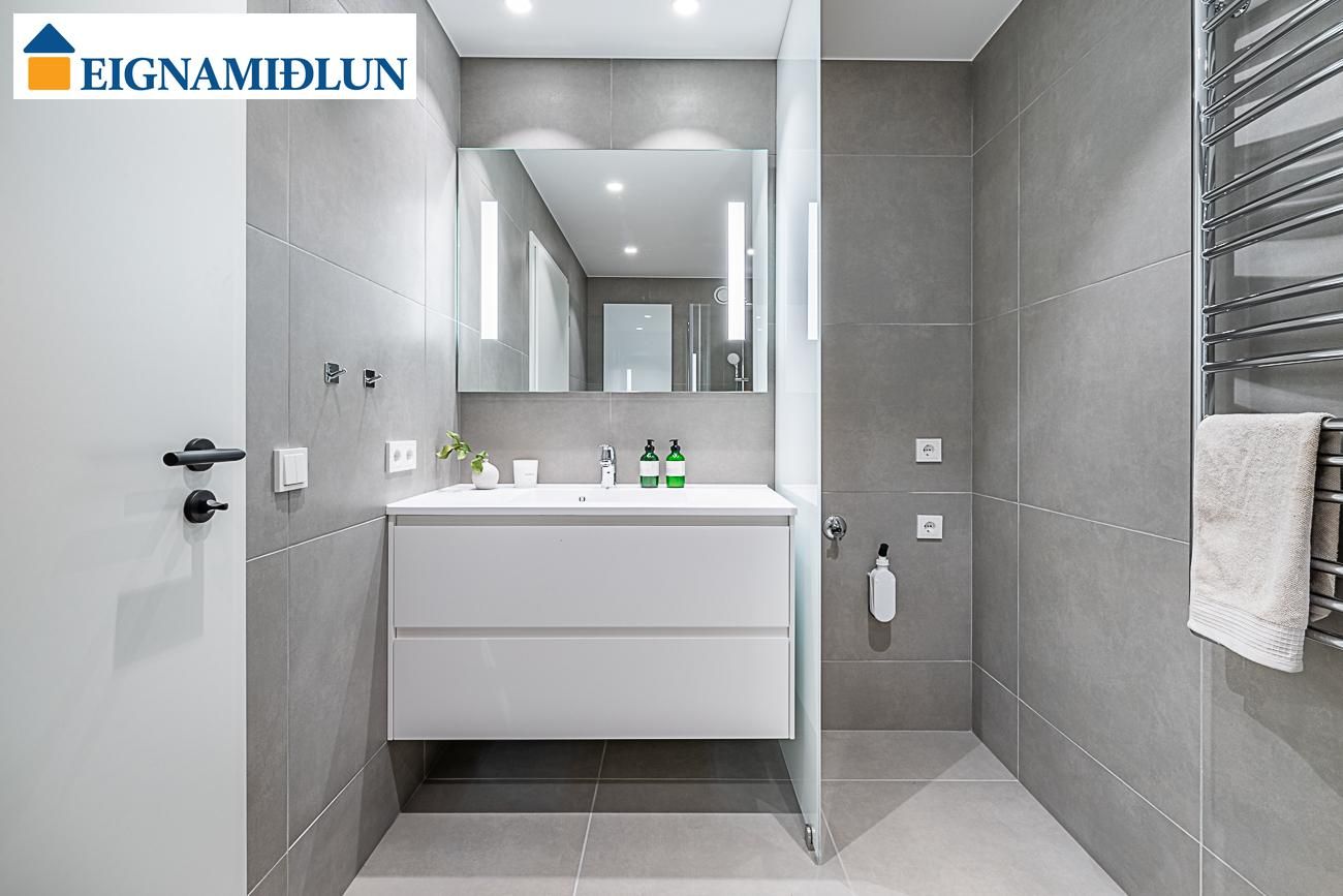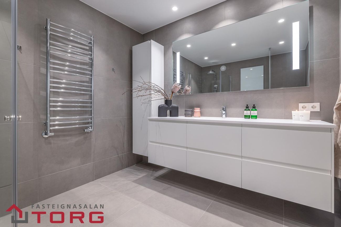 Eskiás 6 er 29 íbúða bygging sem var byggð árið 2024. Allar íbúðir með sérinngangi og allir fermetrar innan íbúðarinnar. Eina sameign hússins er sameiginleg hjóla- og vagnageymsla. Húsið er einangrað að utan og klætt viðhaldsfríum stein - og álplötum. Baðherbergi/þvottahús eru forframleidd og hífð inn í hús samhliða uppsteypu húsanna. Söluaðili baðherbergjanna er Wilbergs/Bitter ehf. (Parki) og eru þau hönnuð af Boxen samkvæmt norskum stöðlum. Mikið er lagt upp úr vönduðum frágang og er allt efni og búnaður af þekktri og viðurkenndri gerð. Fallegt parket á öllum gólfum íbúðarinnar, flísar á beðherbergi. Innréttingar í eldhúsi frá NOBILIA/GKS með innbyggðum ísskáp og innbyggðri uppþvottavél. Eldhústæki, blástursofn, spanhelluborð og innbyggður ísskápur frá Whirlpool. Stór vinnueyja í eldhúsi með góðri vinnuaðstöðu og gott skápapláss í eldhúsi. Fataskápar í báðum svefnherbergjum og fataskápar í forstofu frá GKS. Næg bílastæði á lóðinni og búið að tengja rafbílahleðslukerfi sem er aðgengilegt öllum íbúum.