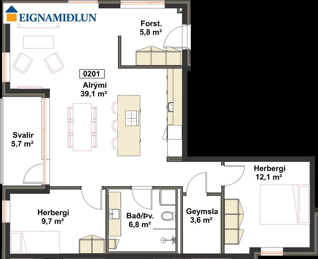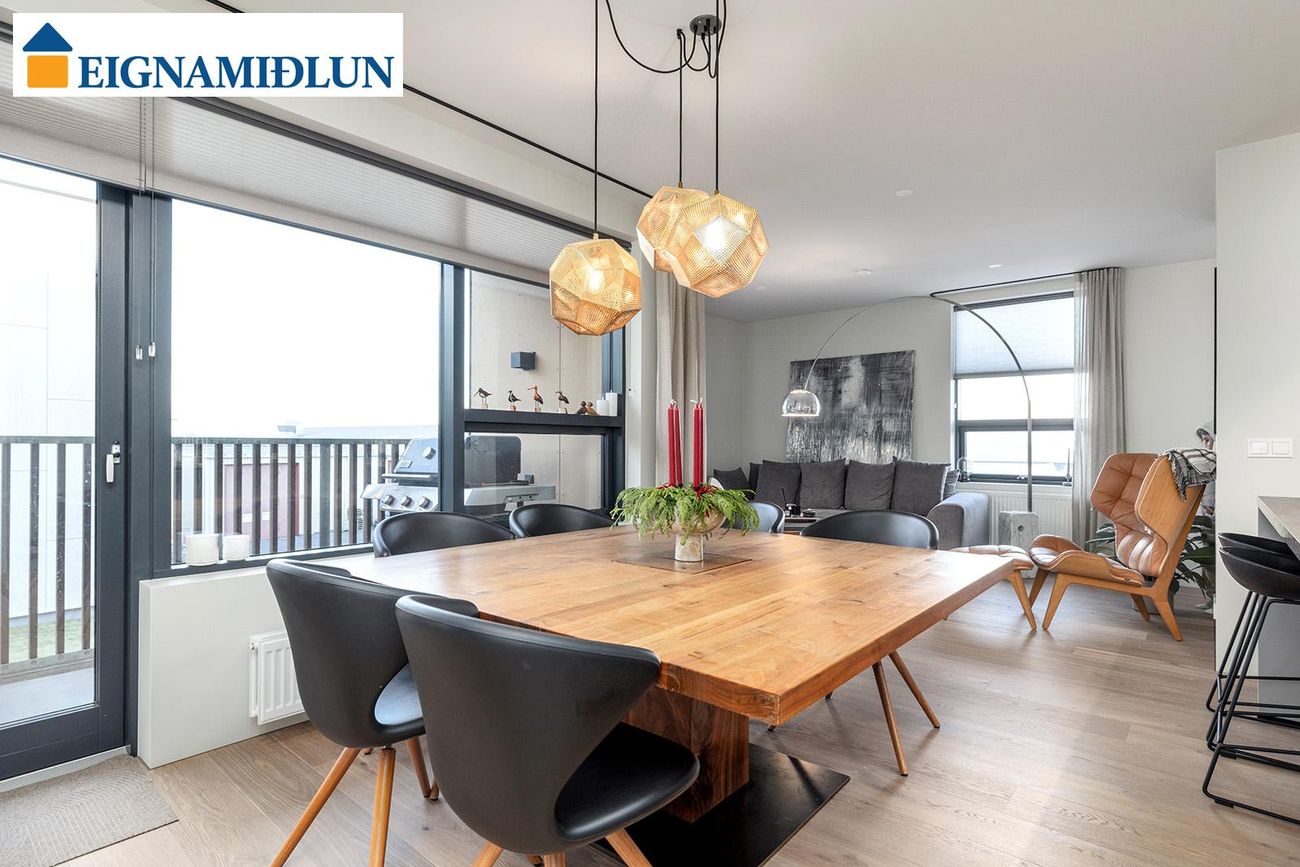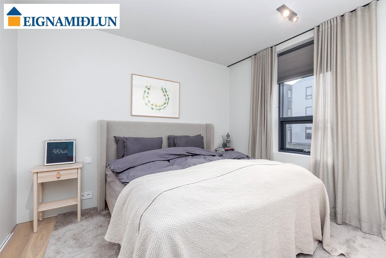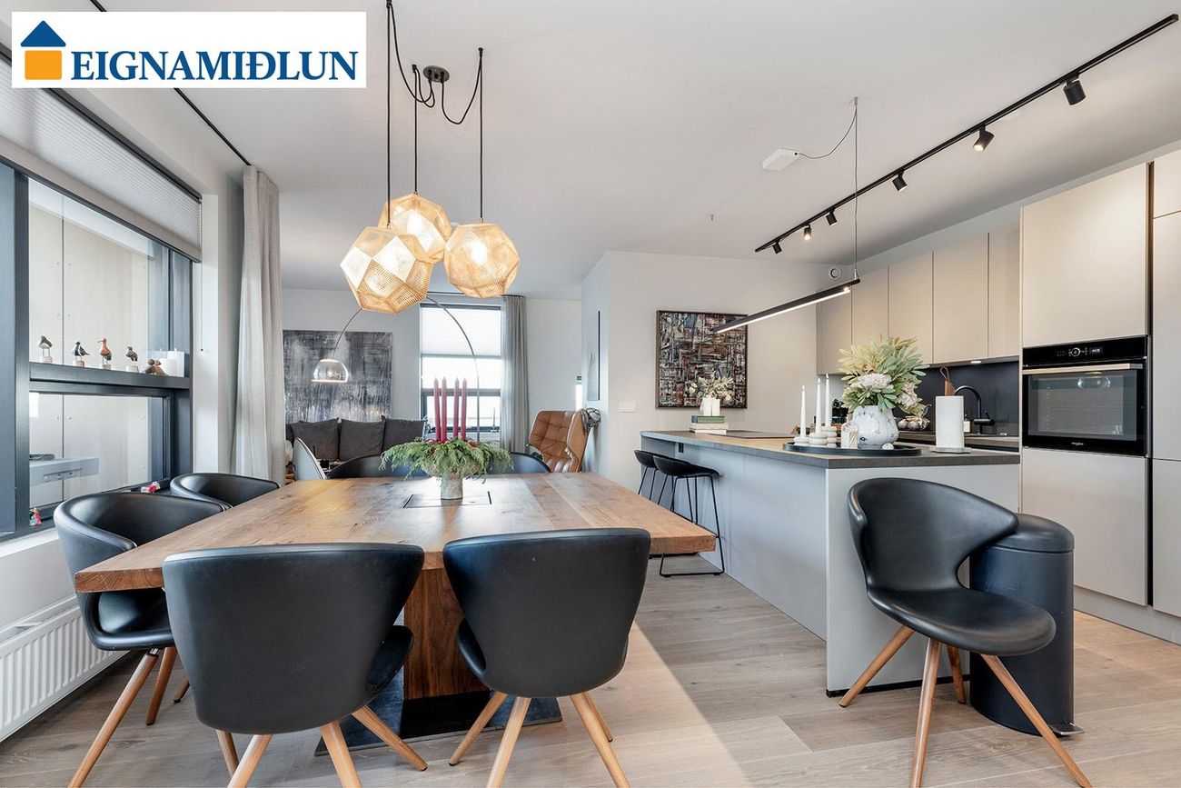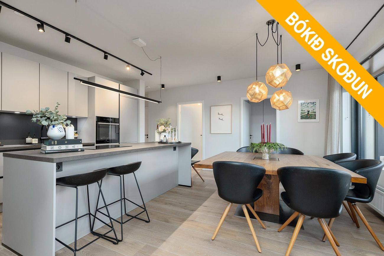 Eskiás 6 er 29 íbúða bygging sem var byggð árið 2024. Allar íbúðir með sérinngangi og allir fermetrar innan íbúðarinnar. Eina sameign hússins er sameiginleg hjóla- og vagnageymsla. Húsið er einangrað að utan og klætt viðhaldsfríum stein - og álplötum. Baðherbergi/þvottahús eru forframleidd og hífð inn í hús samhliða uppsteypu húsanna. Söluaðili baðherbergjanna er Wilbergs/Bitter ehf. (Parki) og eru þau hönnuð af Boxen samkvæmt norskum stöðlum. Mikið er lagt upp úr vönduðum frágang og er allt efni og búnaður af þekktri og viðurkenndri gerð. Fallegt parket á öllum gólfum íbúðarinnar, flísar á beðherbergi. Innréttingar í eldhúsi frá NOBILIA/GKS með innbyggðum ísskáp og innbyggðri uppþvottavél. Eldhústæki, blástursofn, spanhelluborð og innbyggður ísskápur frá Whirlpool. Stór vinnueyja í eldhúsi með góðri vinnuaðstöðu og gott skápapláss í eldhúsi. Fataskápar í báðum svefnherbergjum og fataskápar í forstofu frá GKS. Næg bílastæði á lóðinni og búið að tengja rafbílahleðslukerfi sem er aðgengilegt öllum íbúum.