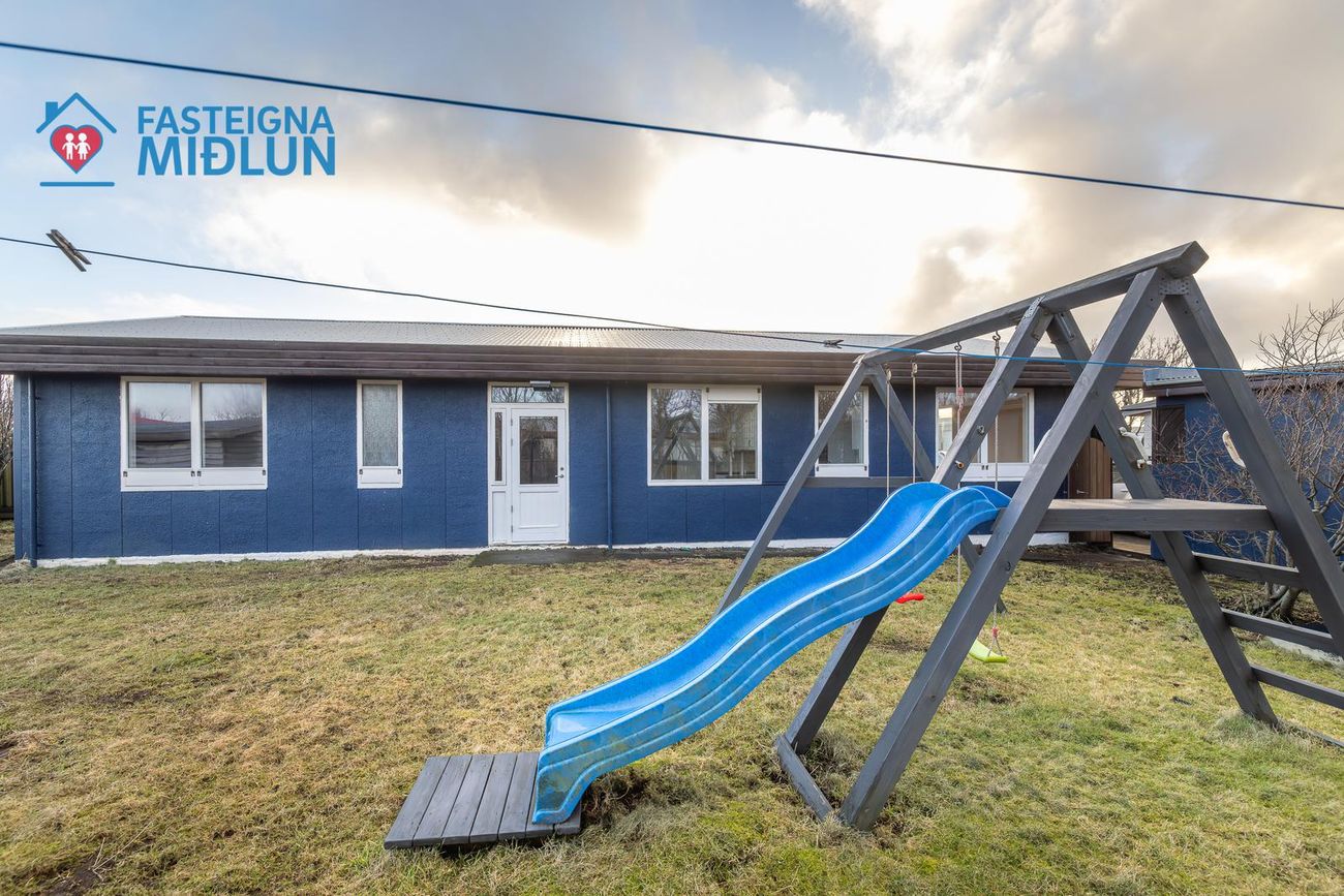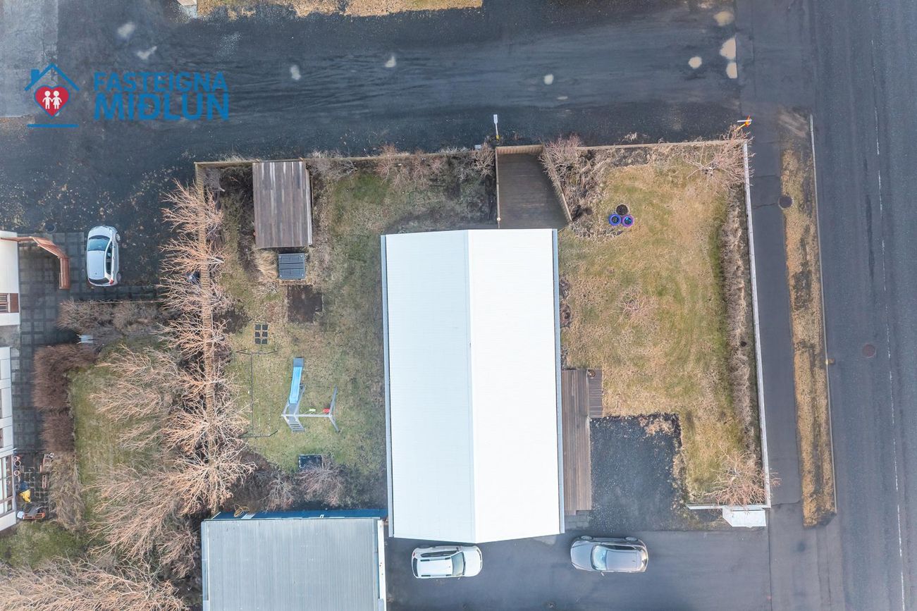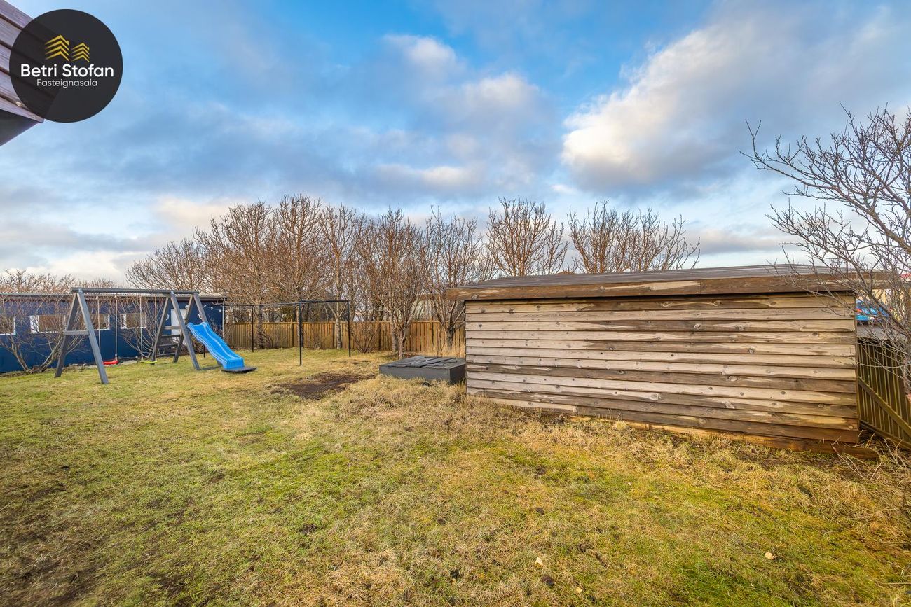 Geymsluskúr í bakgarði ekki talinn með í fermetratölu.