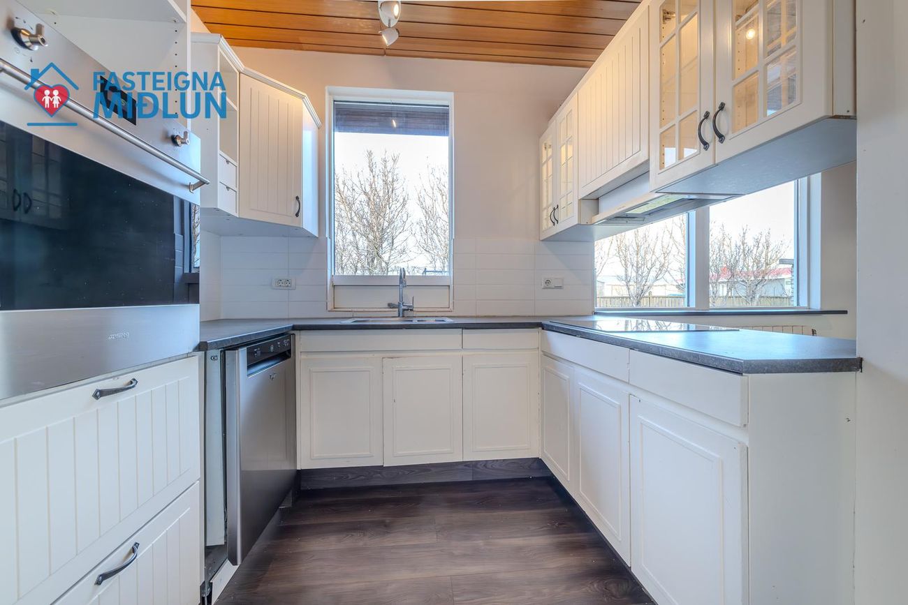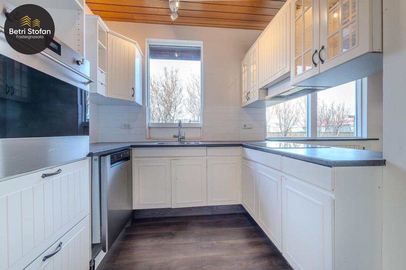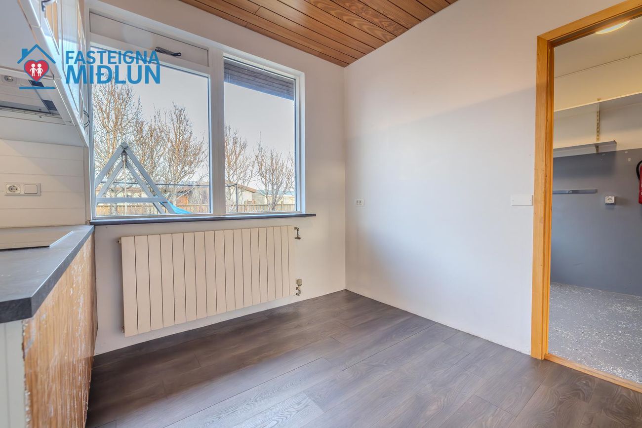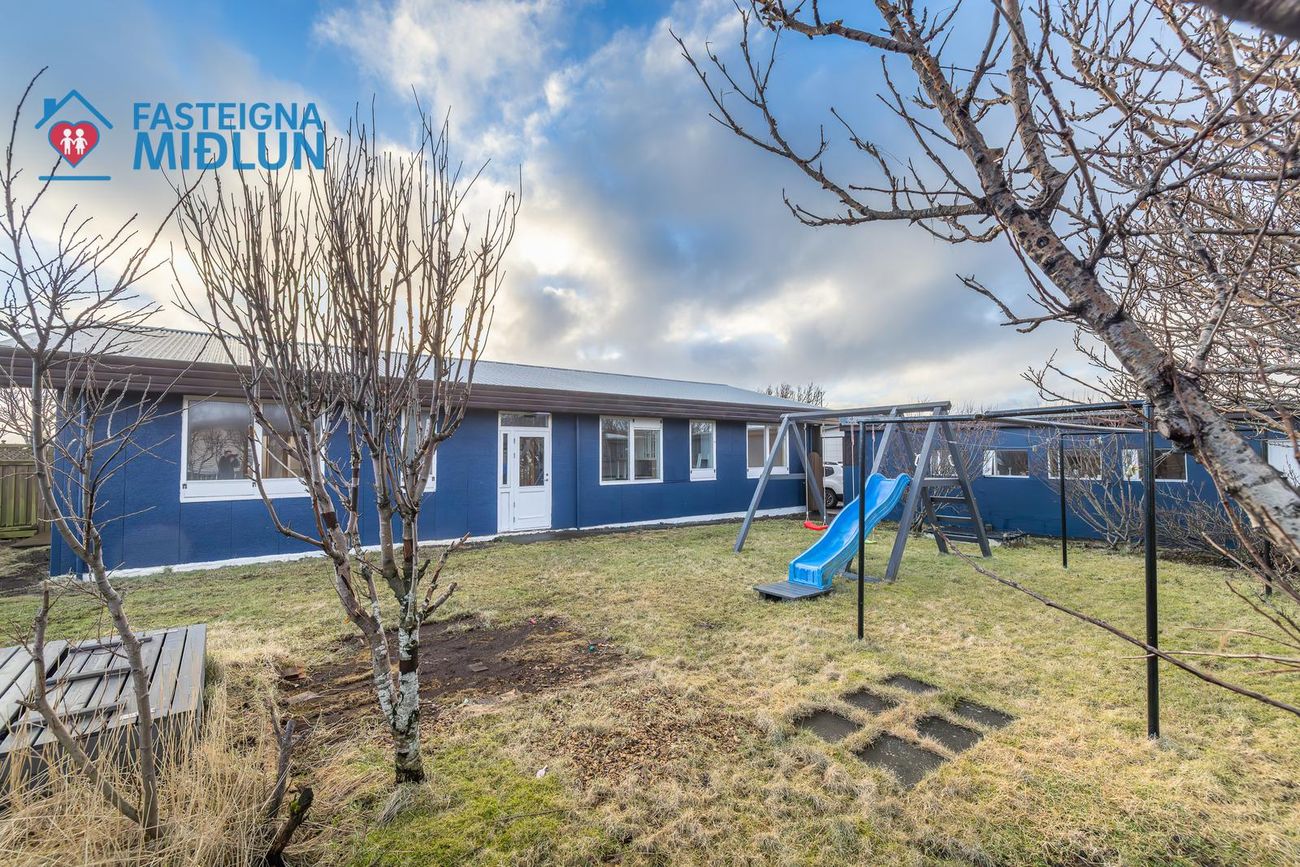 Geymsluskúr í bakgarði ekki talinn með í fermetratölu.