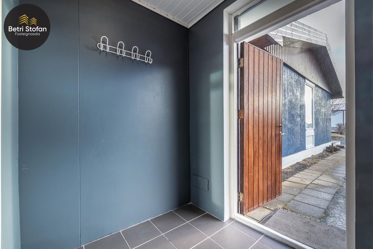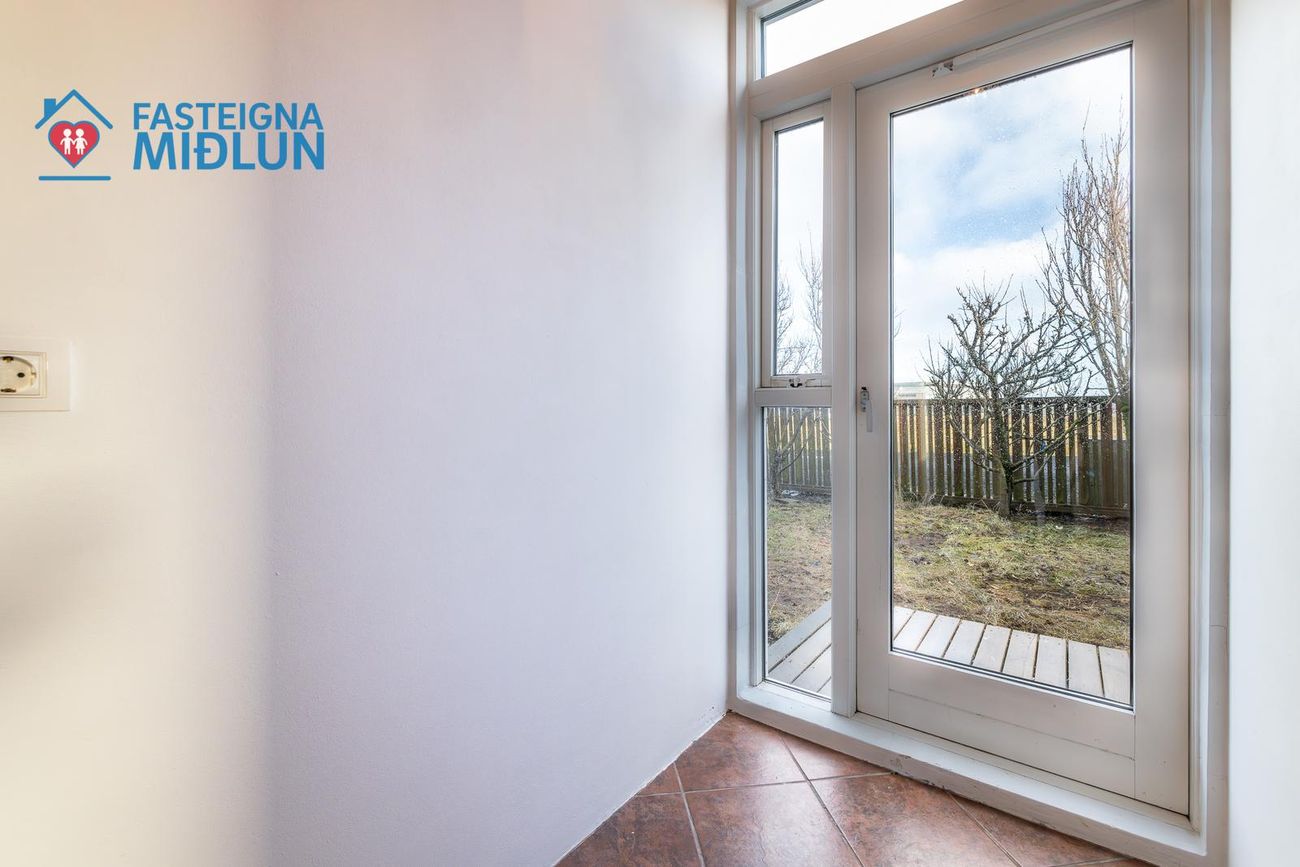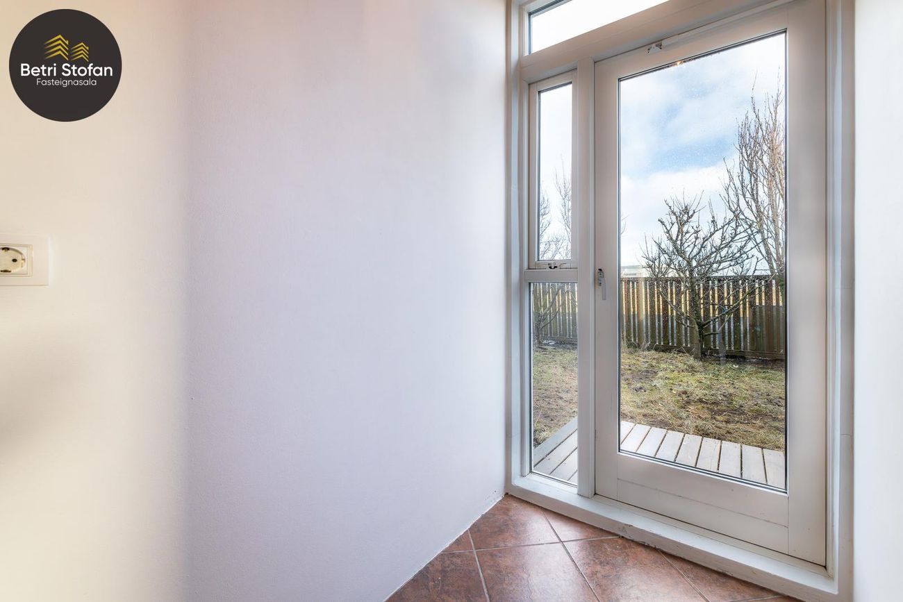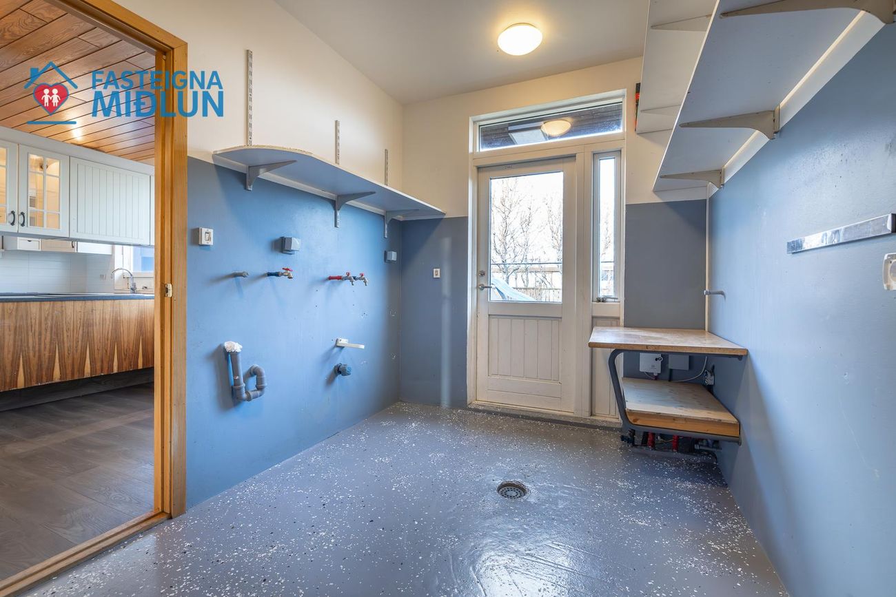 Rúmgott þvottahús með útigengi í bakgarð.