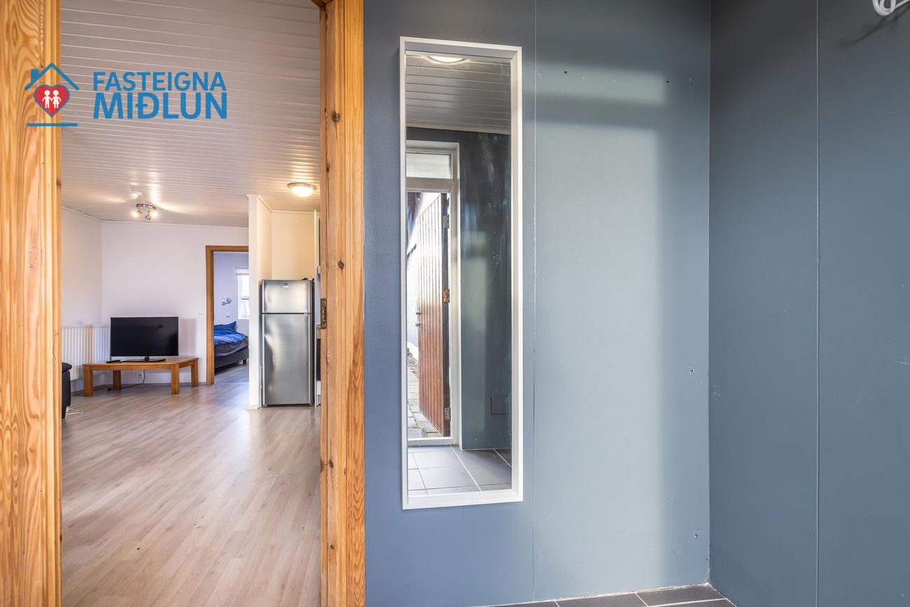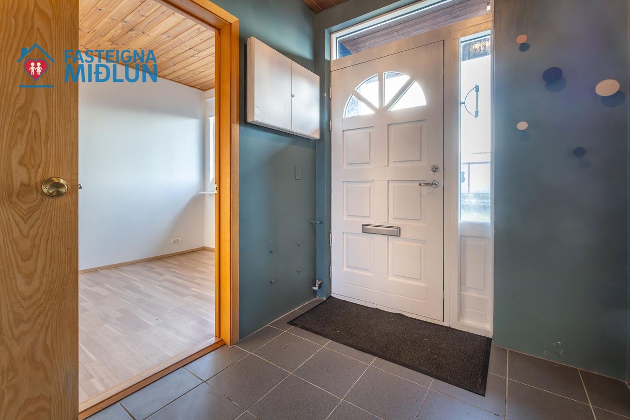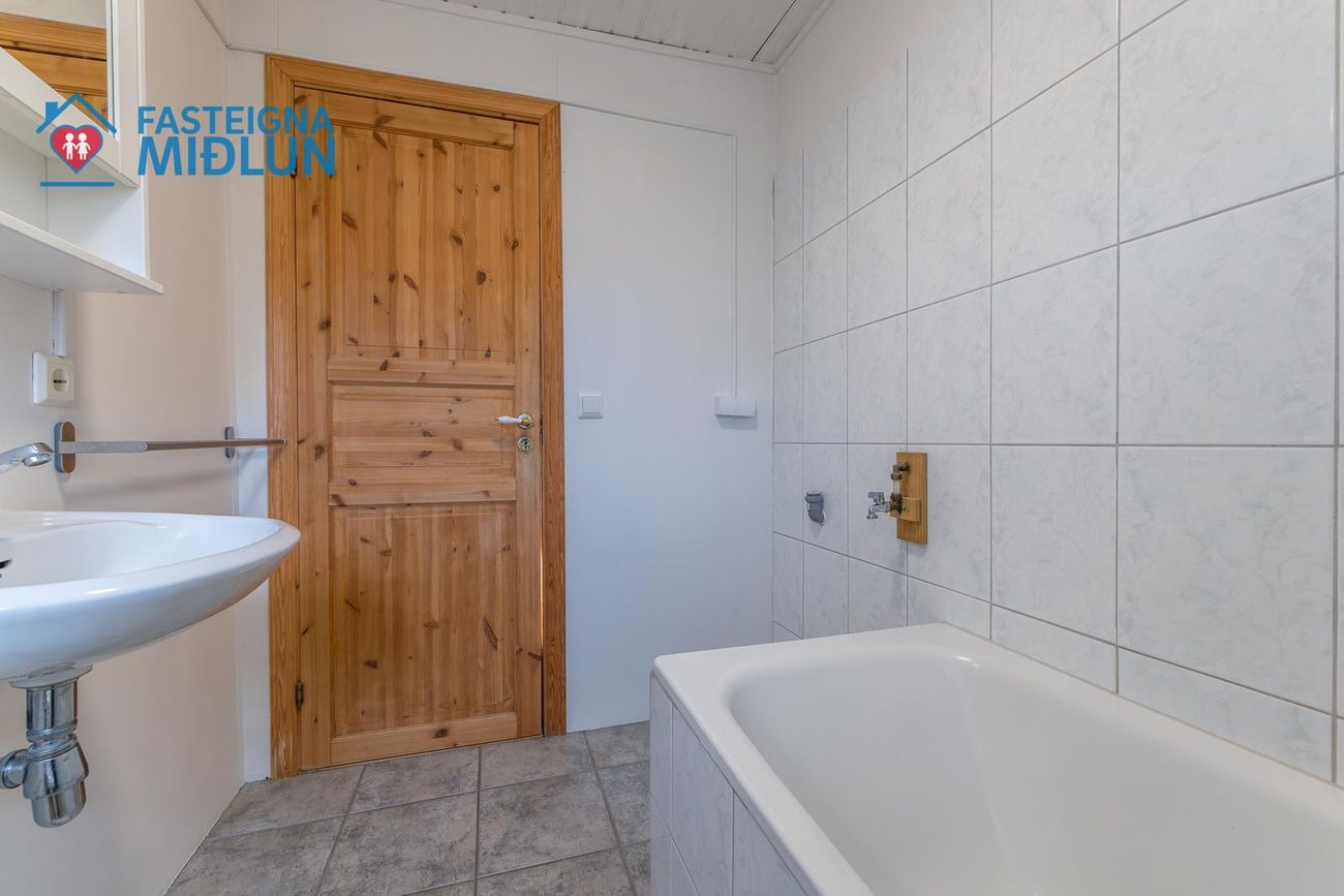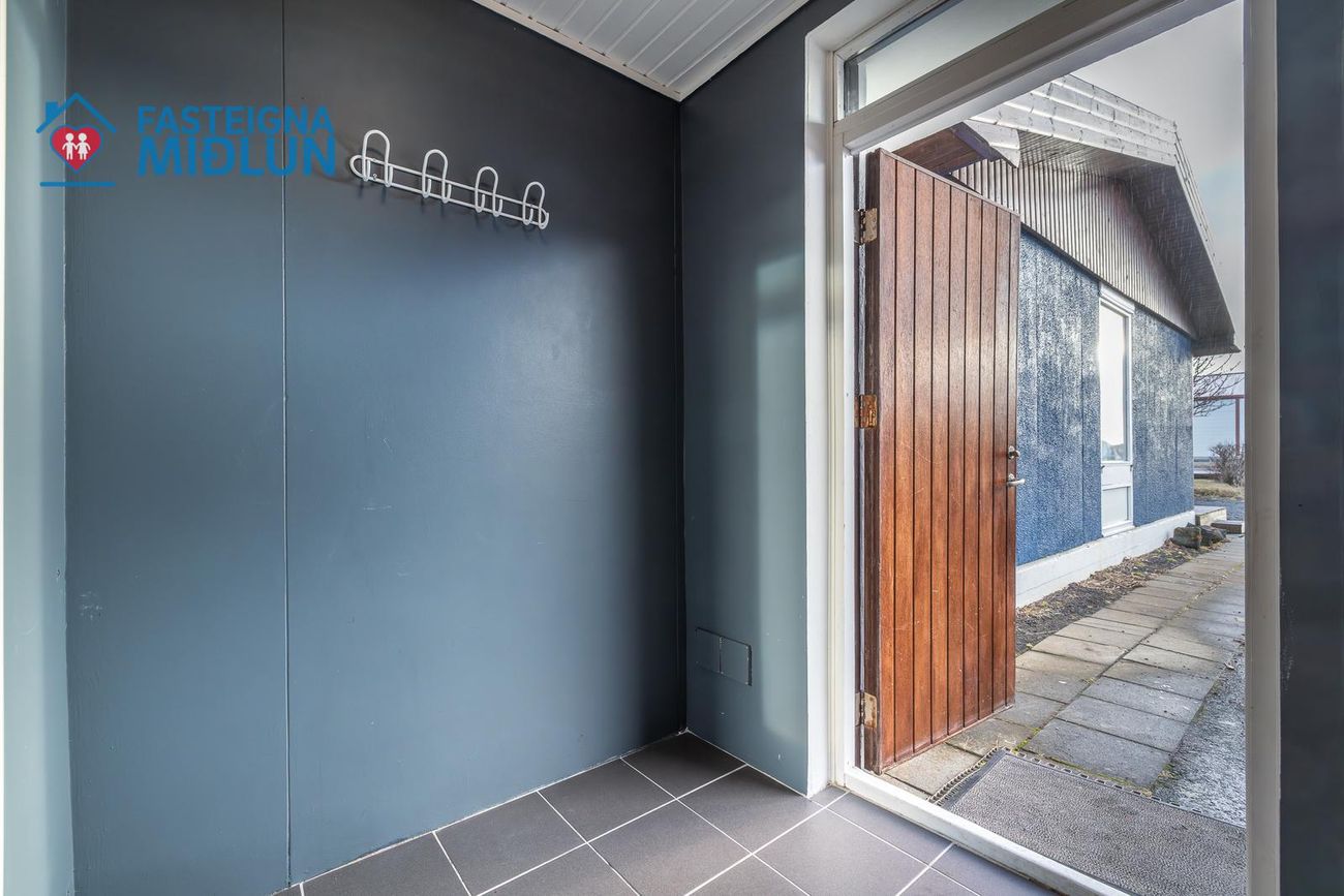 Rúmgott þvottahús með útigengi í bakgarð.