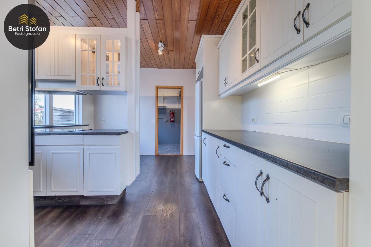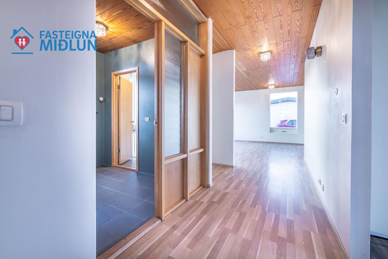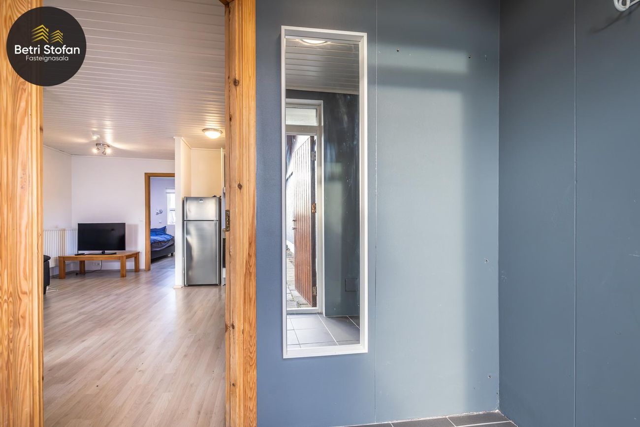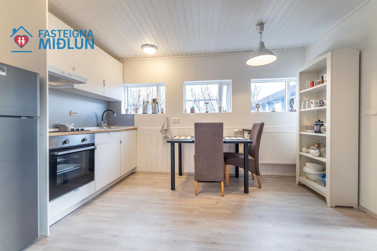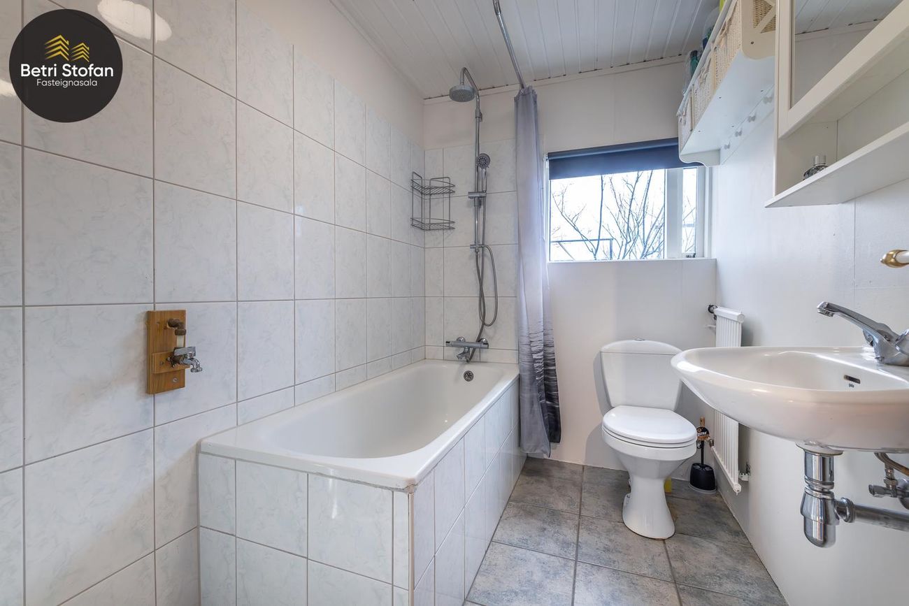 Rúmgott þvottahús með útigengi í bakgarð.