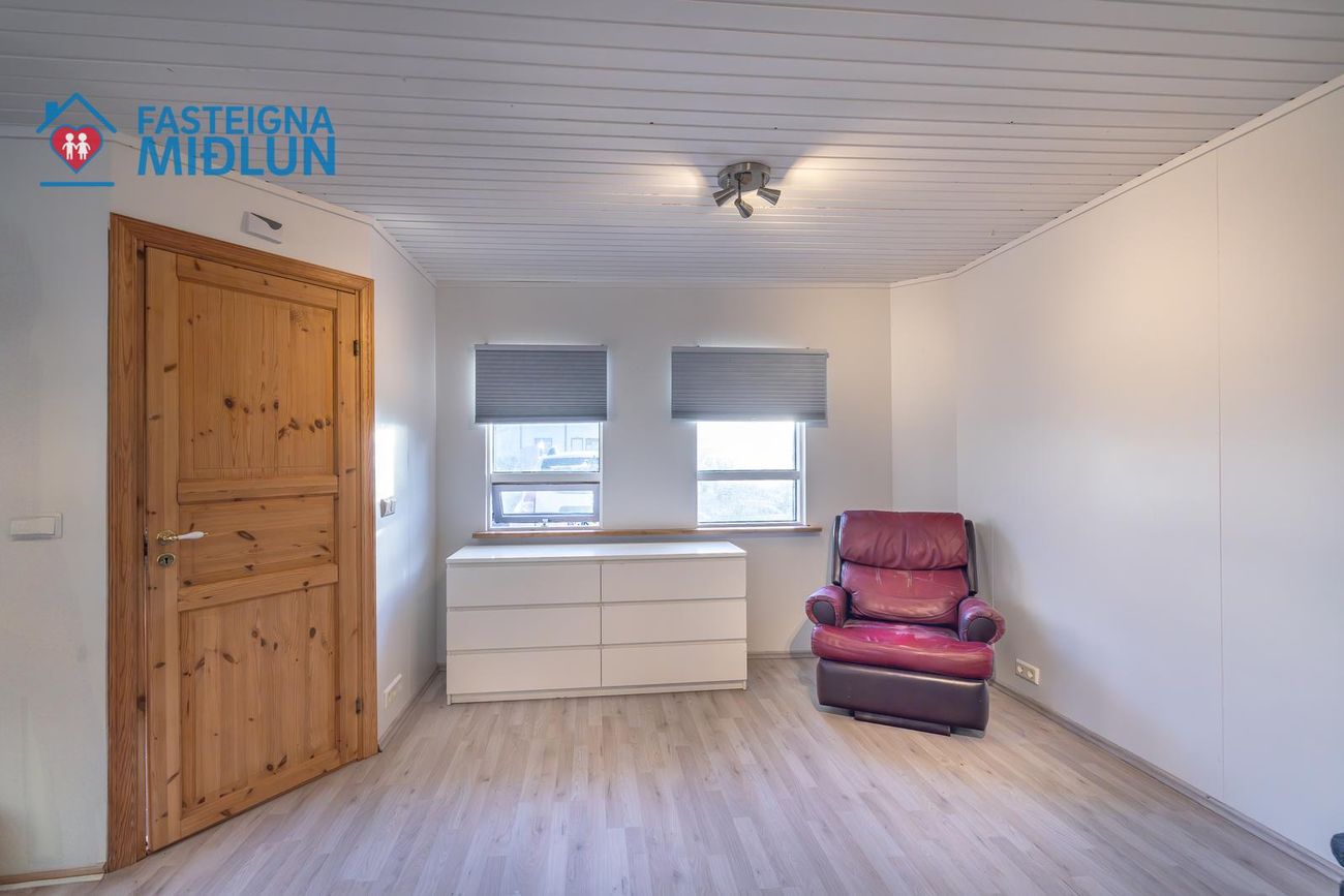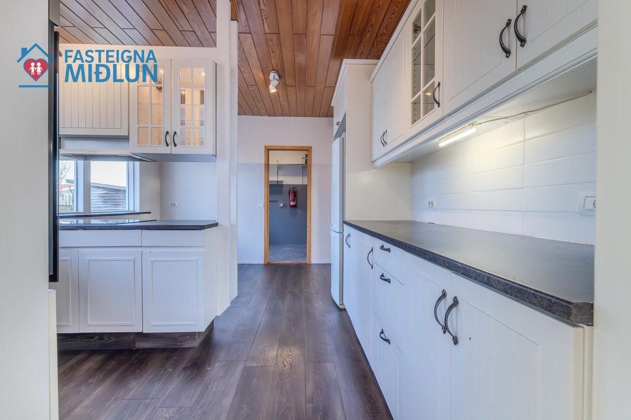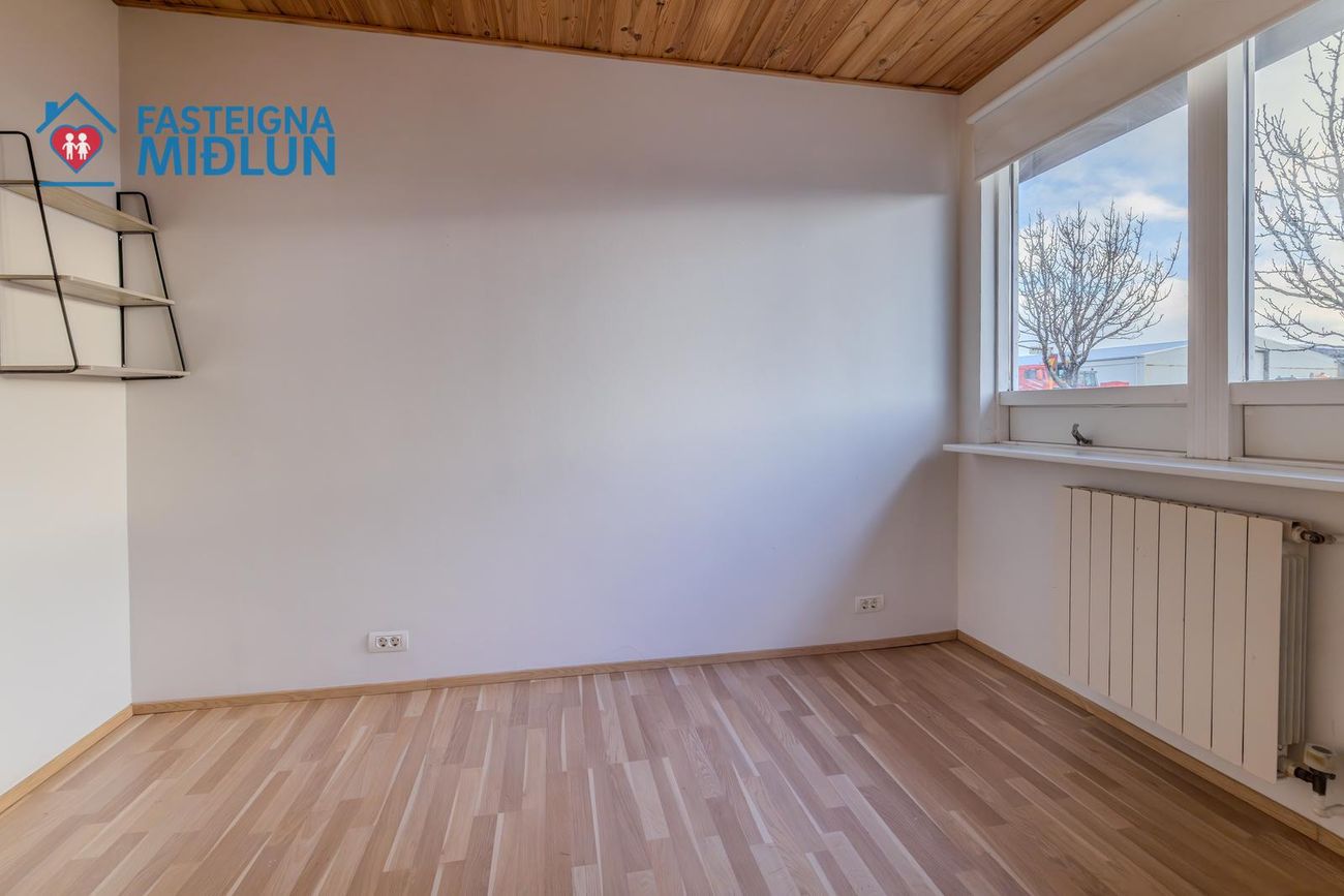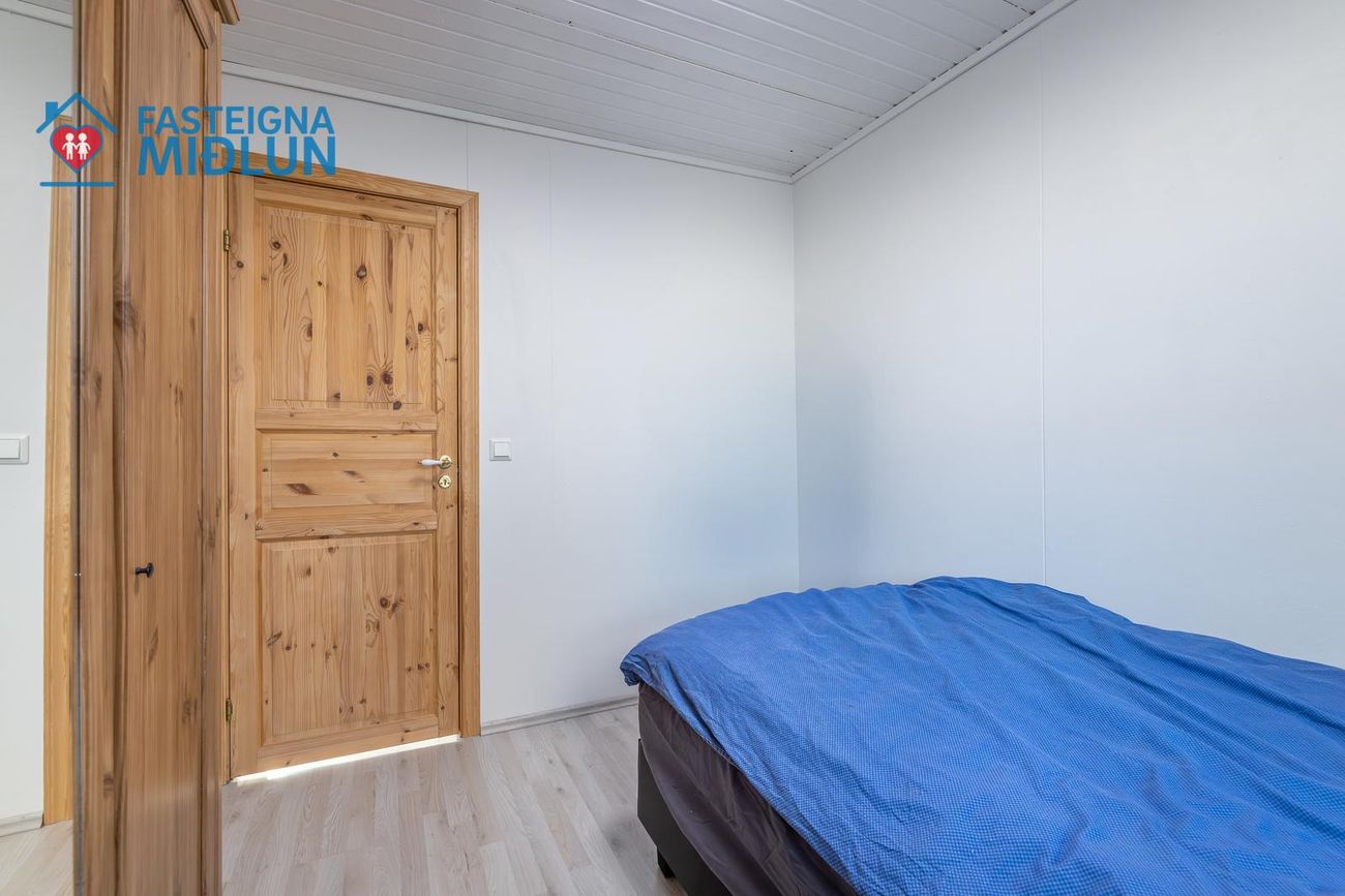 Rúmgott þvottahús með útigengi í bakgarð.
