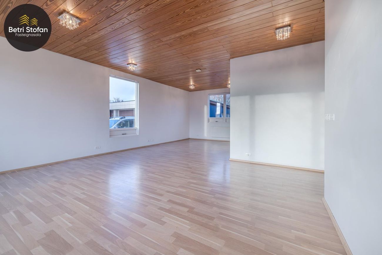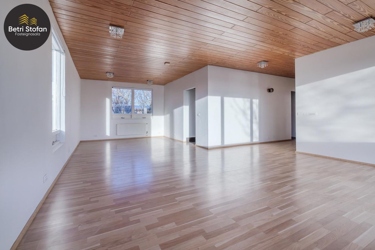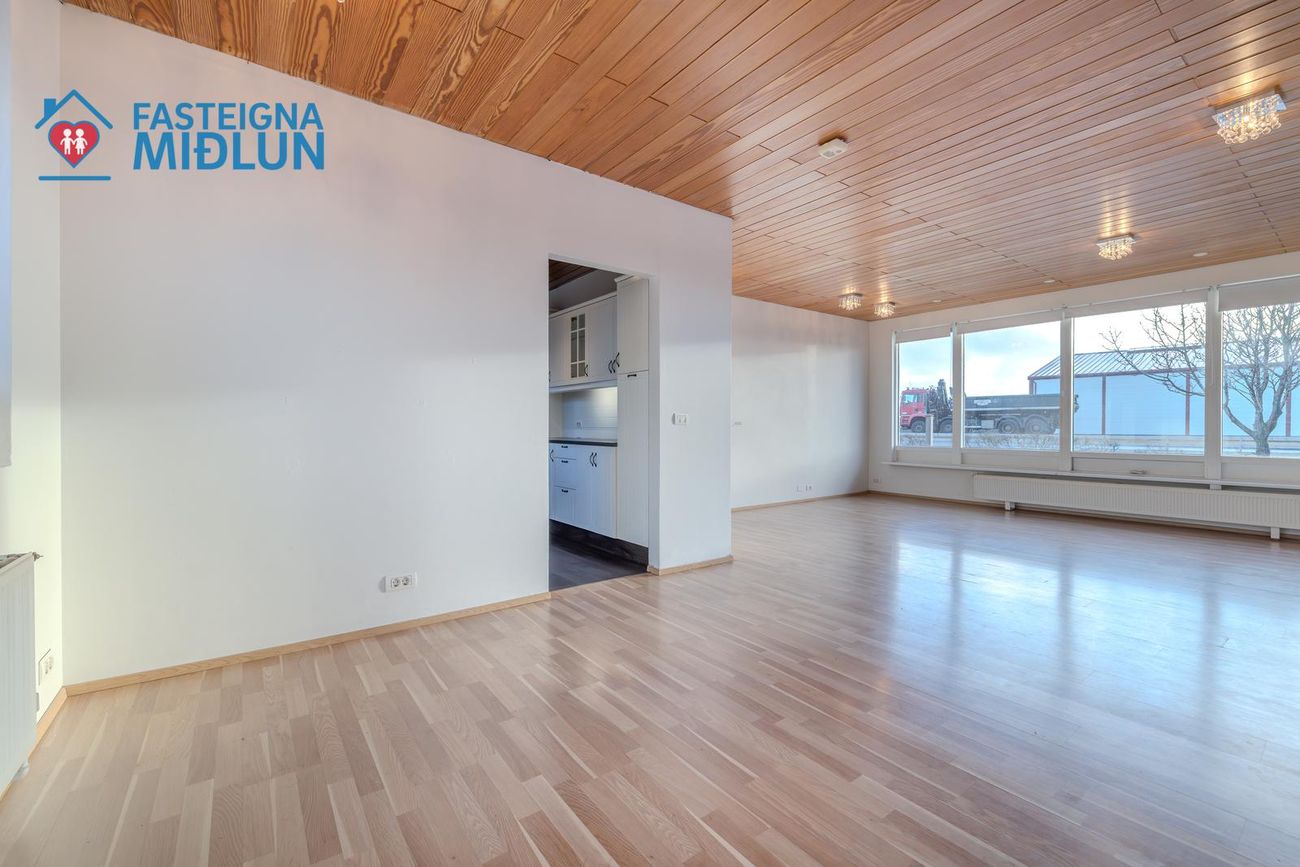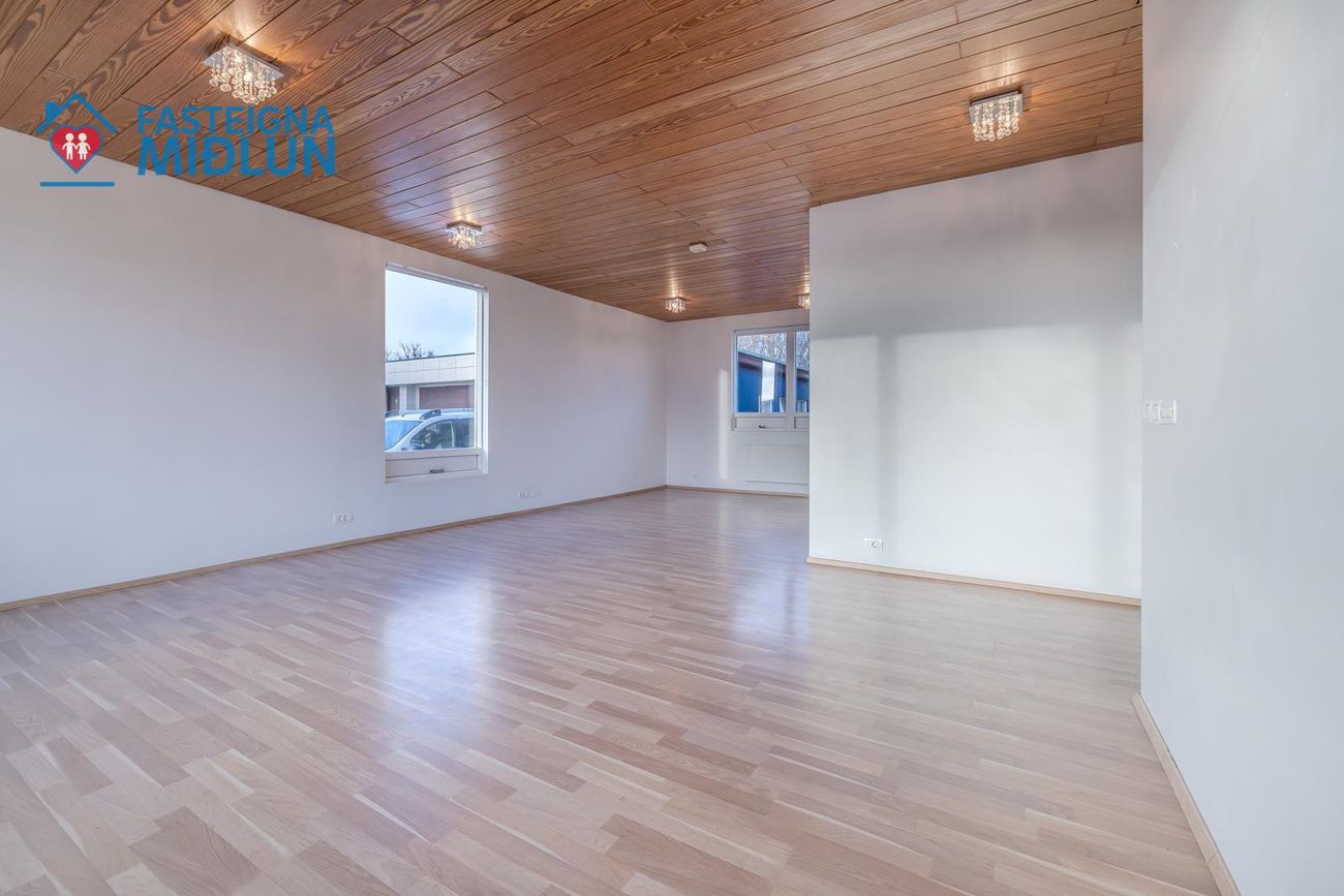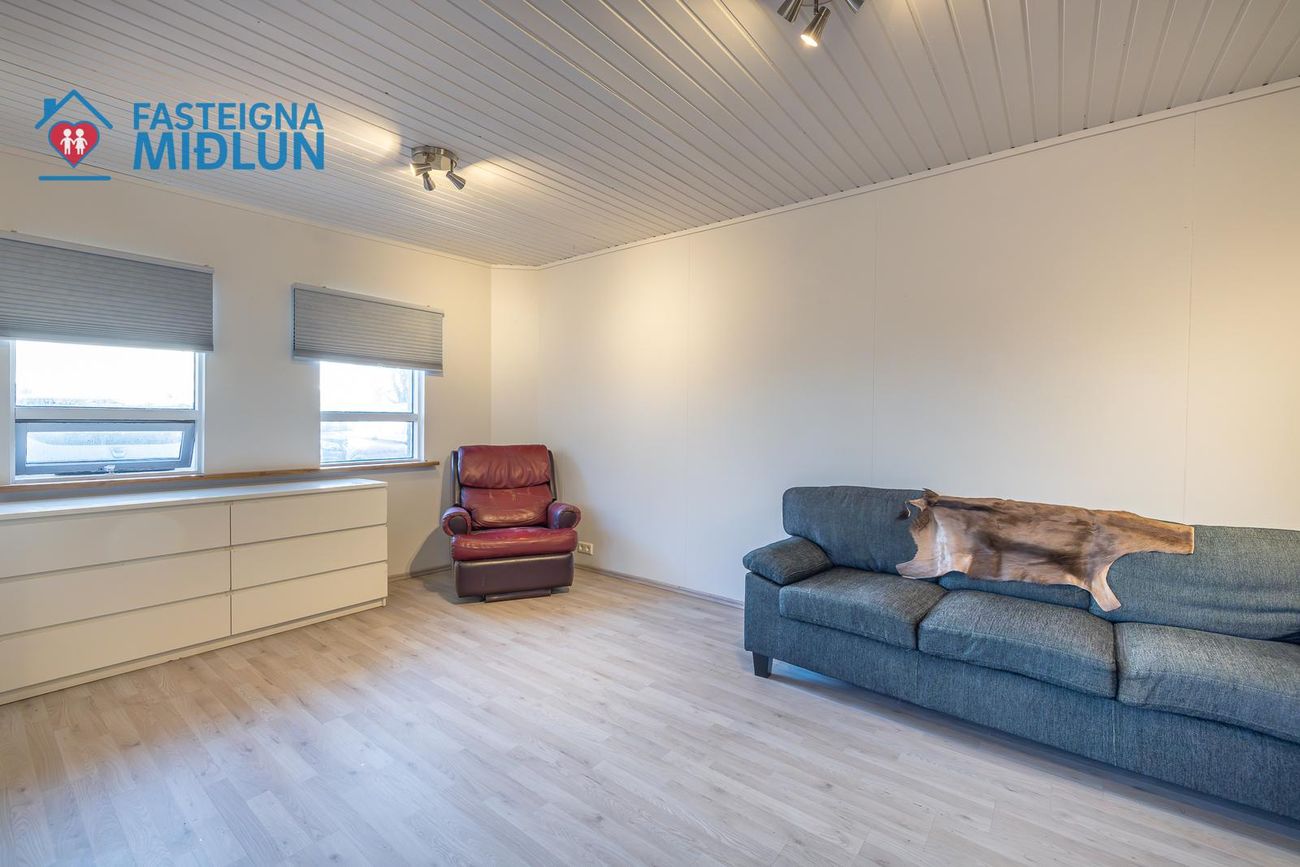 Rúmgóð og björt stofa.