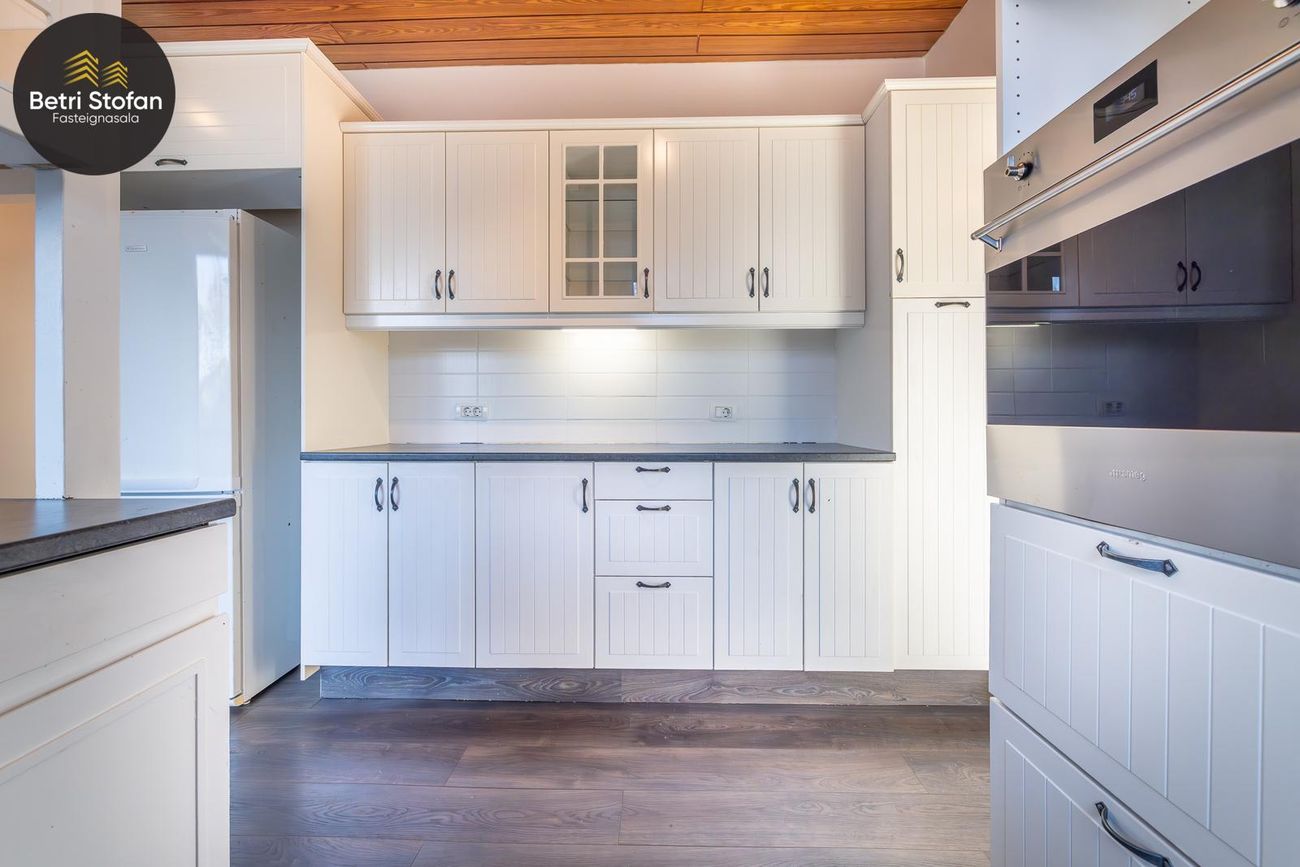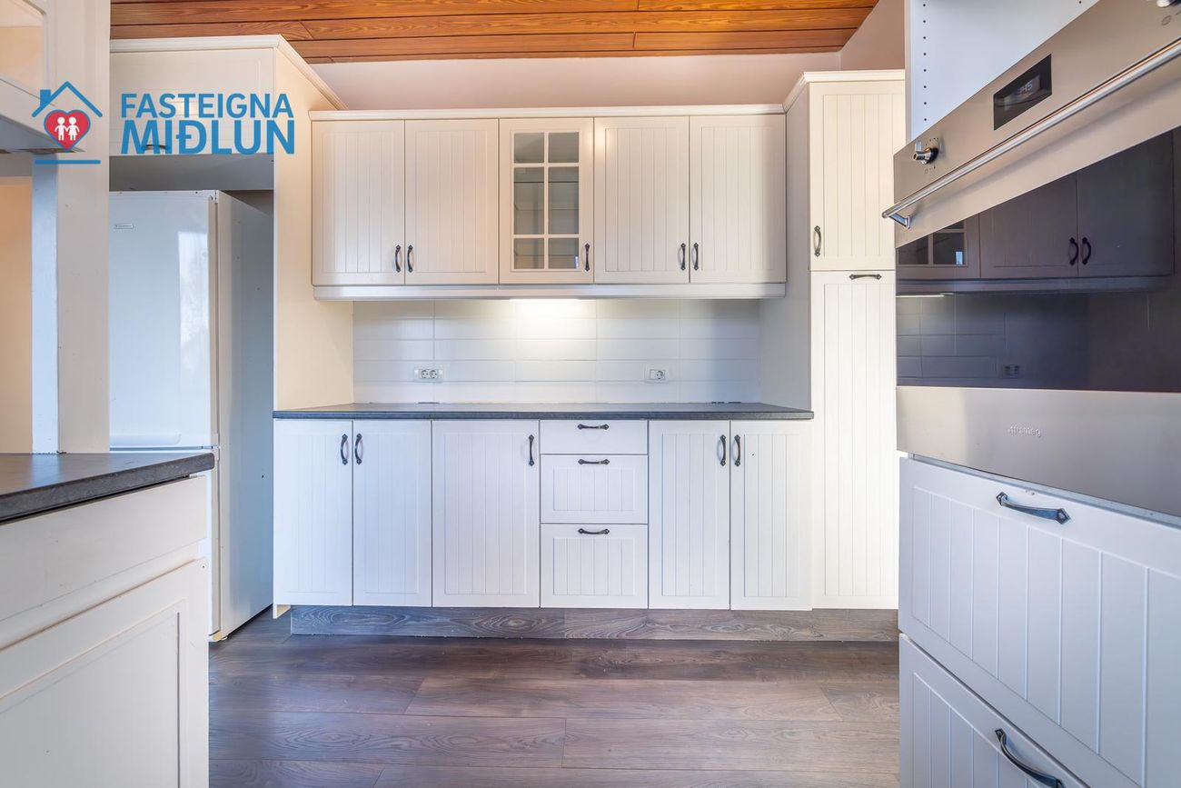 Rúmgott eldhús með borðkrók og góðu skápaplássi.