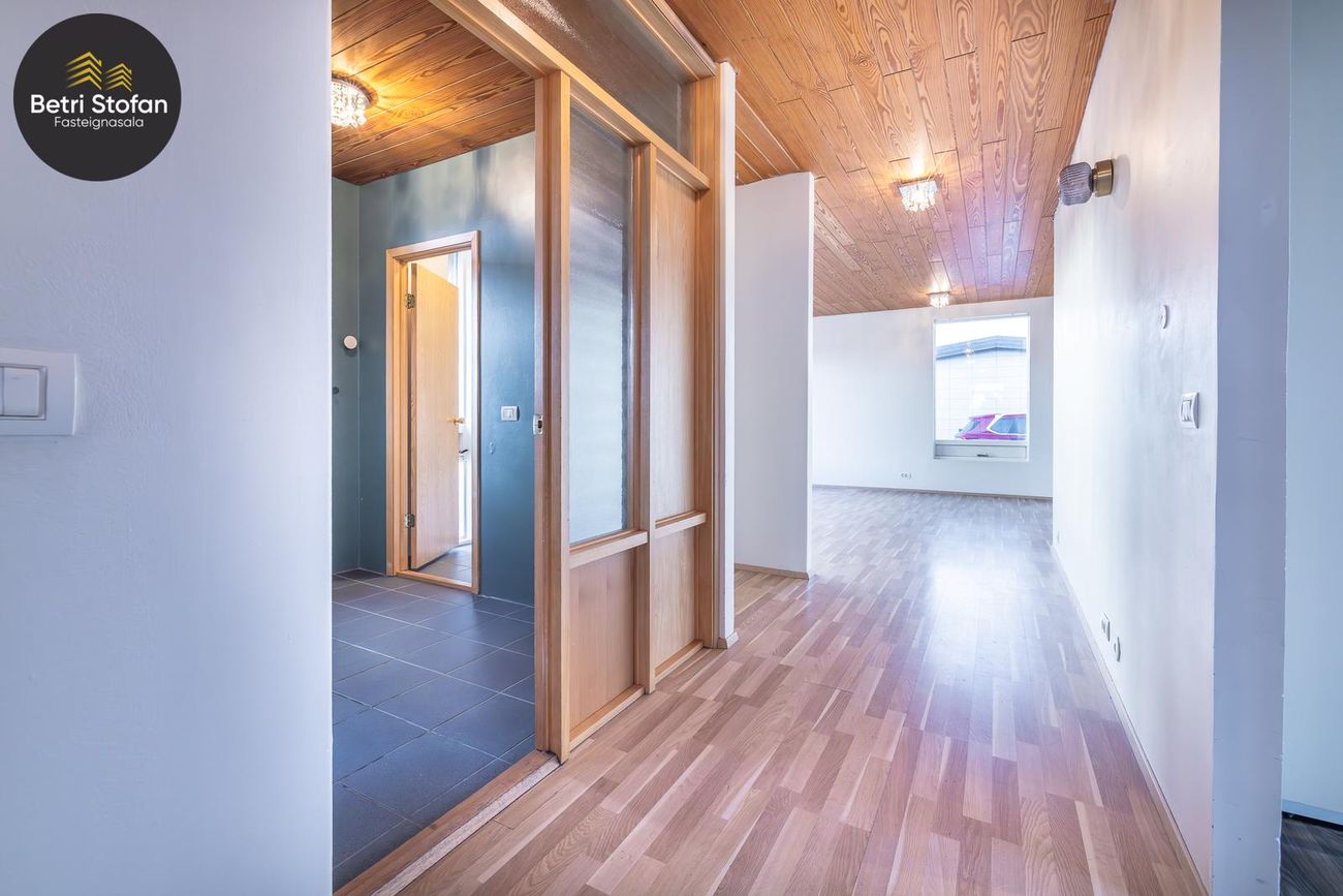 Steinsteypt, harðparket í flestum rýmum, flísar í baðherbergjum og forstofu.