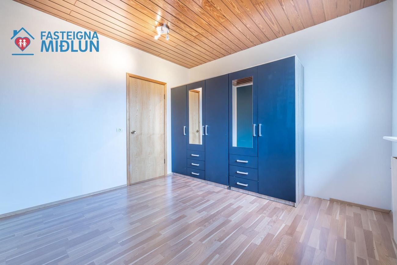 Fjögur rúmgóð svefnherbergi, þrjú með fataskápa.