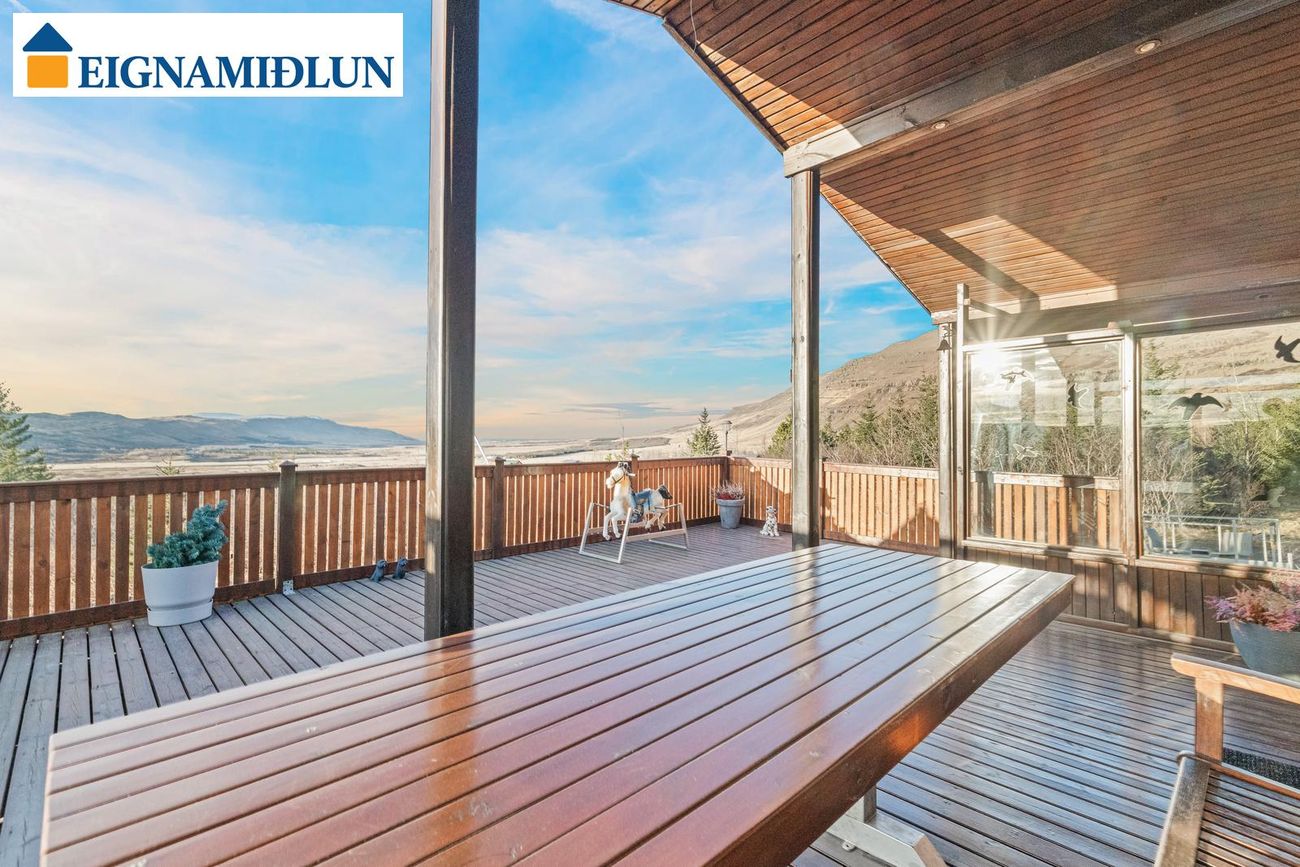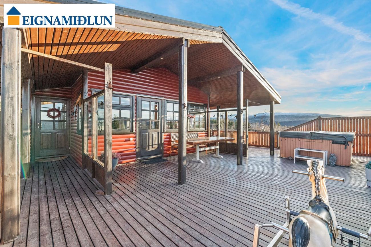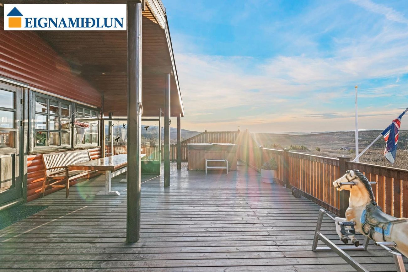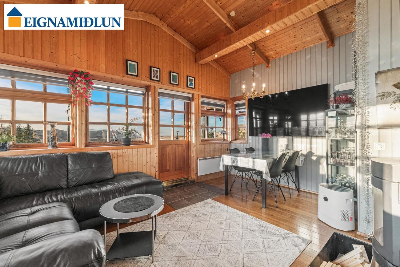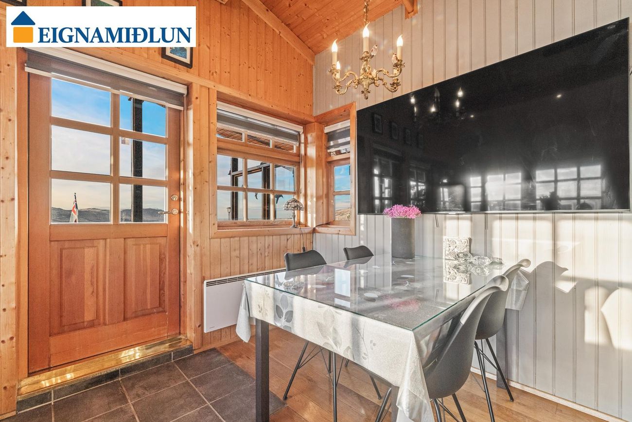 Afar fallegt útsýni er frá bústaðnum og stutt í veiði í vötnunum í Svínadal. Stór grasflöt í kringum húsið með fánastöng. Stórt bílastæði fyrir framan hús. Möguleiki er að fá hluta búslóðar með húsinu. Húsið er á steyptum grunn með steyptri gólfplötu.