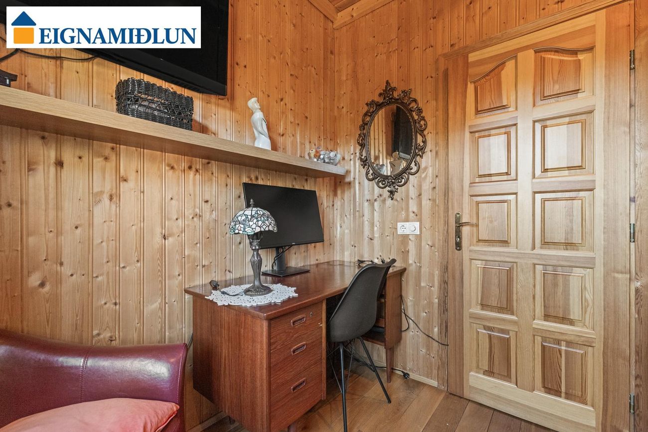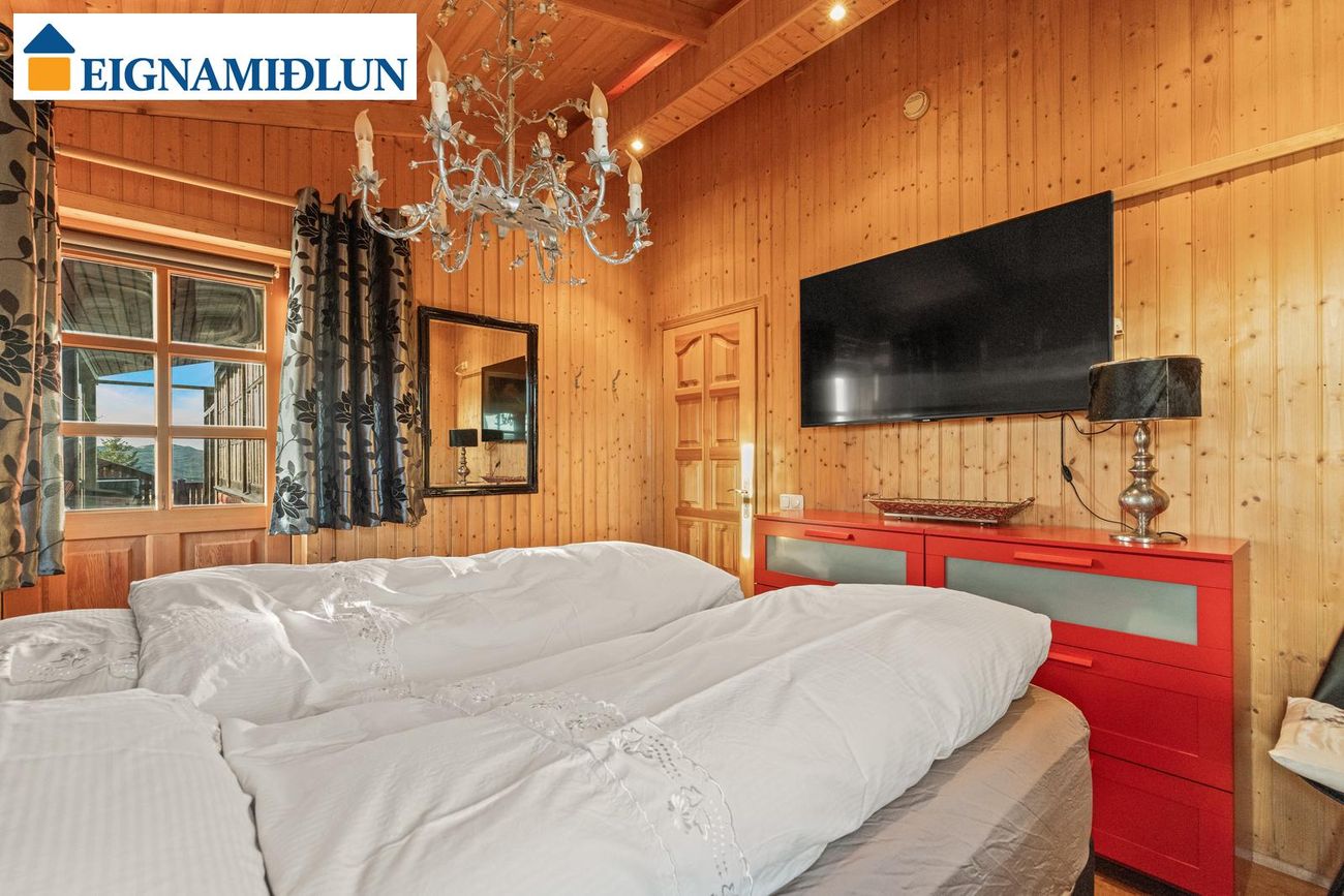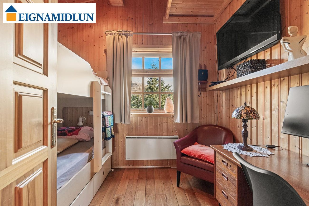 Tvö svefnherbergi eru á hæðinni og er annað með útgengi út á pall. Bæði eru með parket á gólfi.