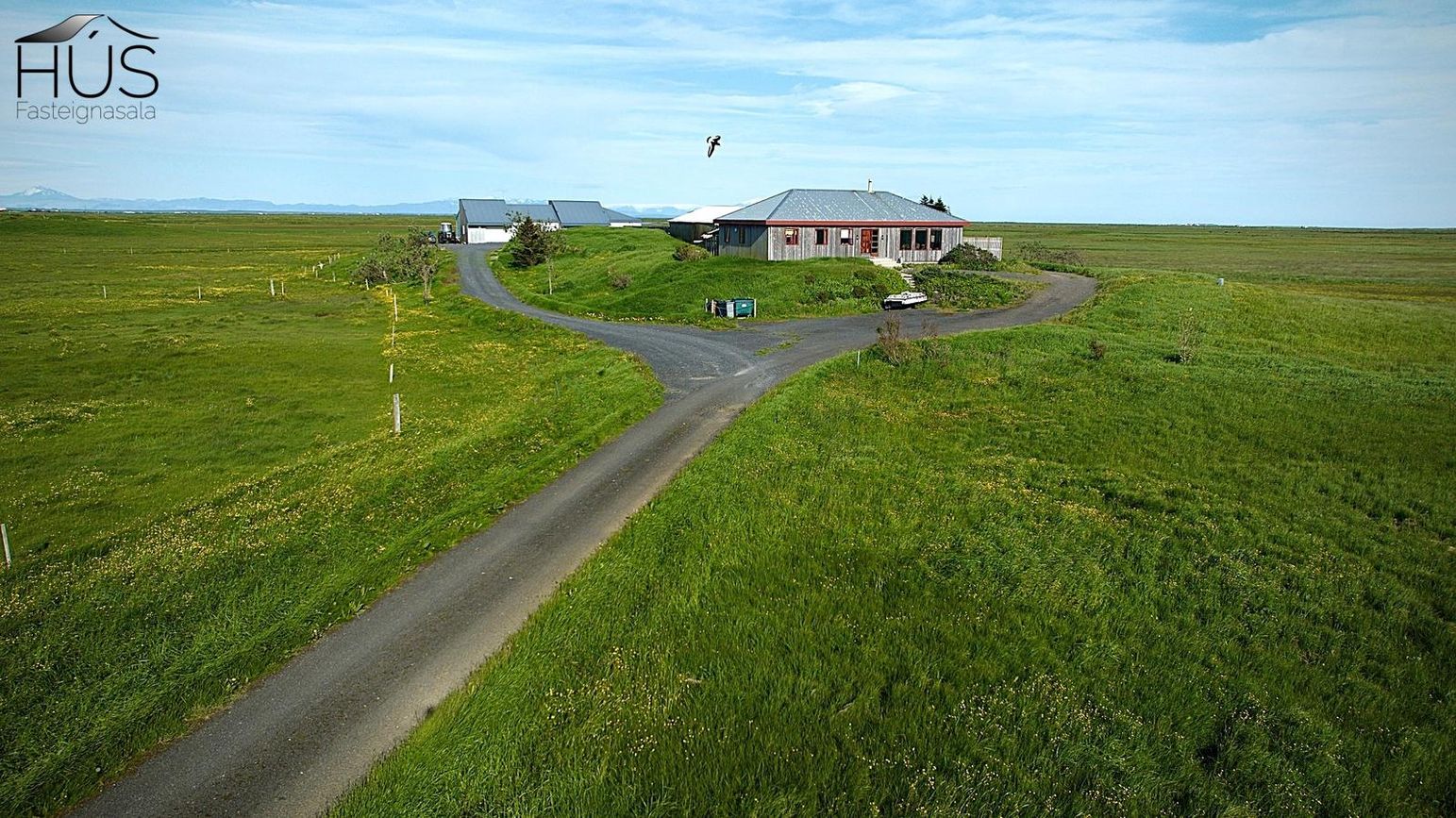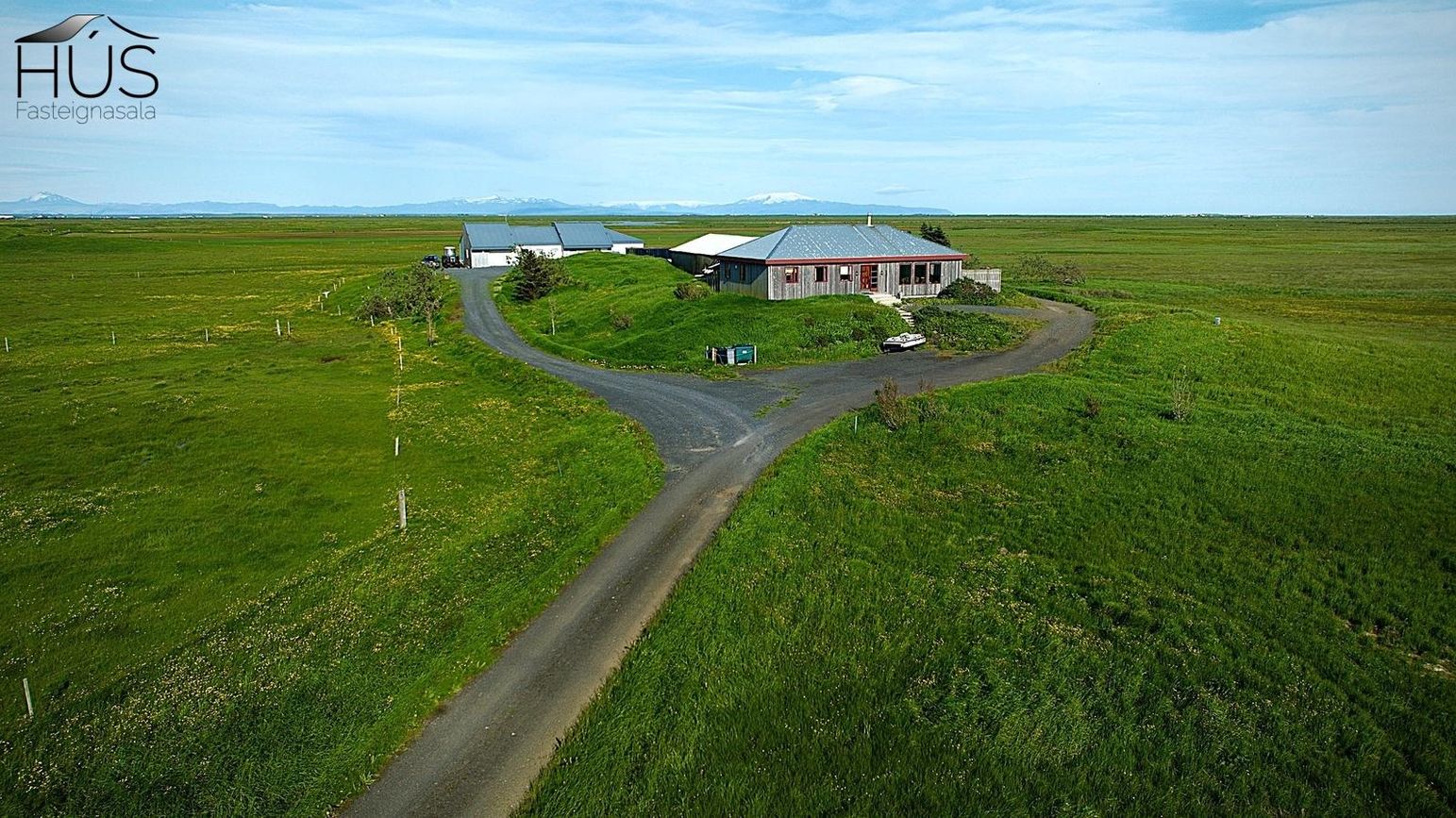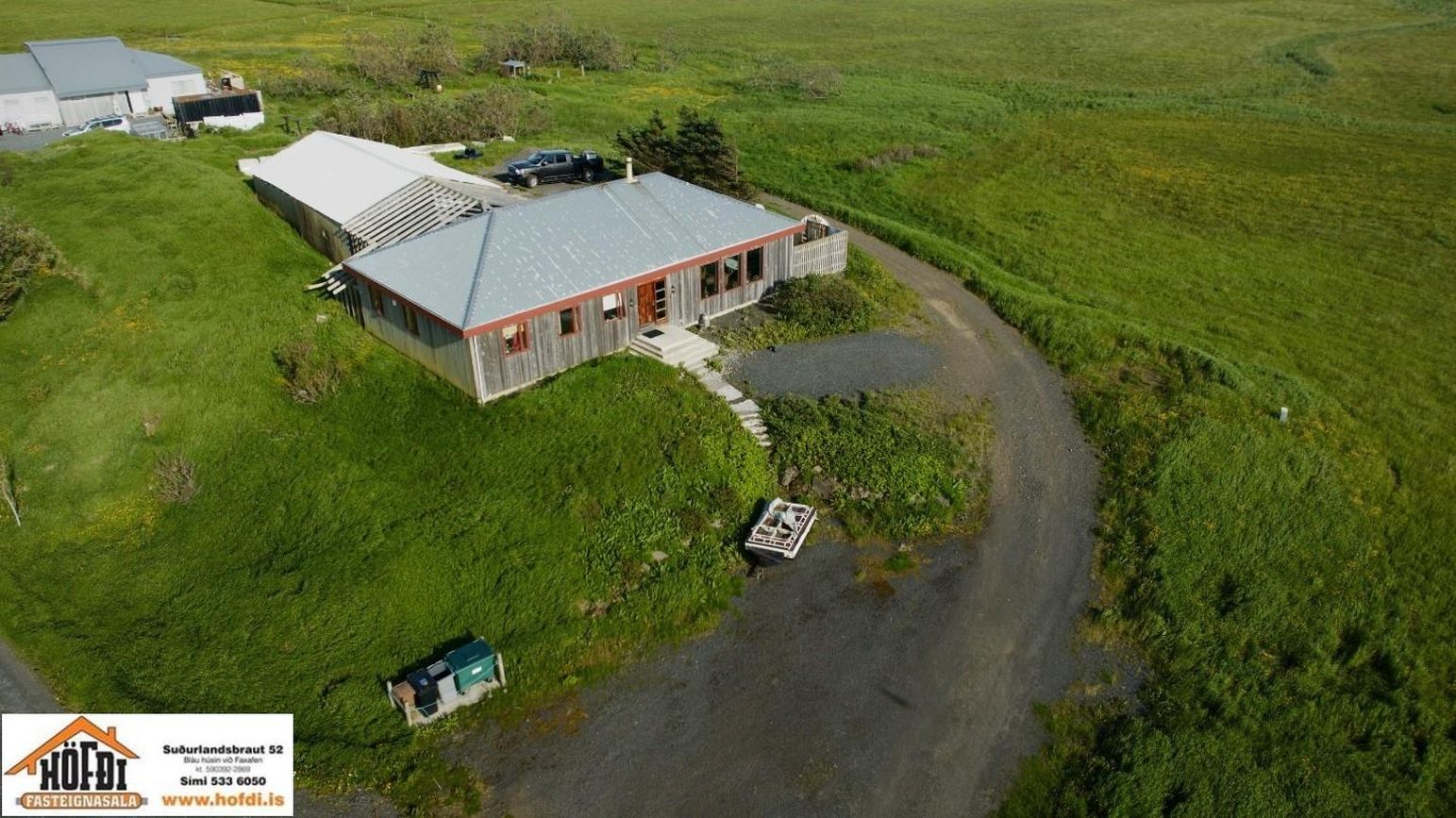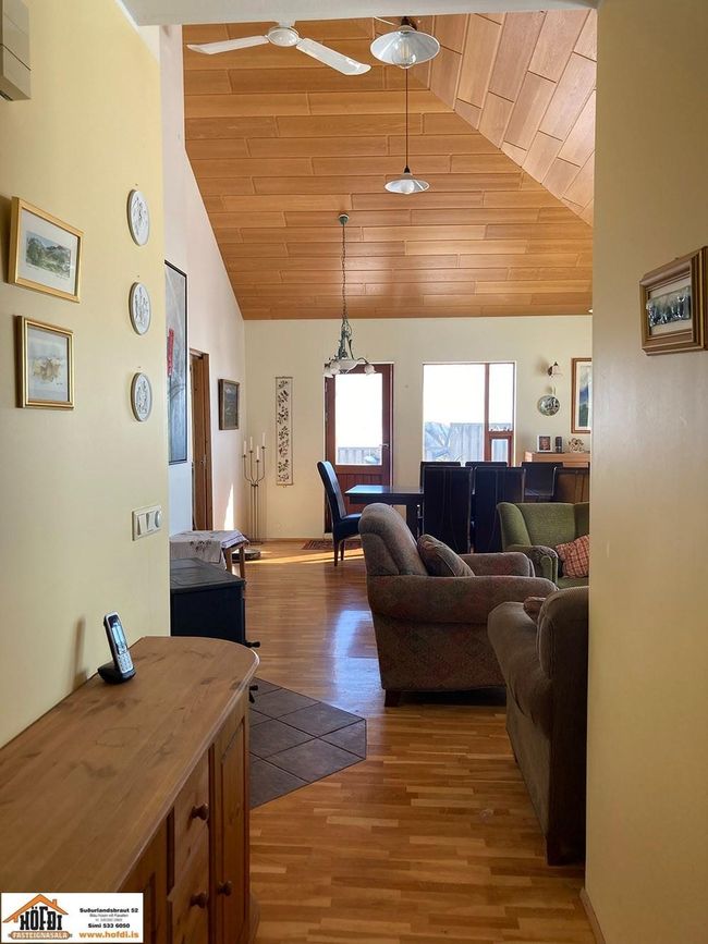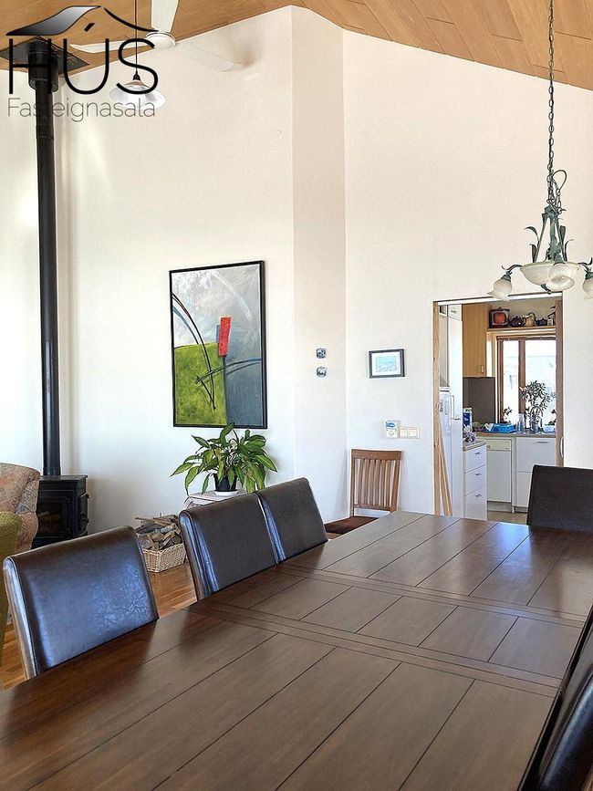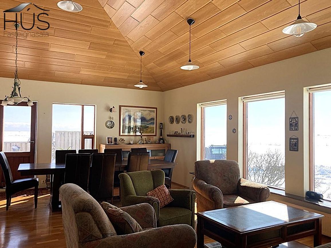 Hér er víðsýnt og stutt í alla helstu þjónustu. Íbúðarhúsið er timburhús byggt 1995 á einni hæð með skriðkjallara undir. Fallegt útsýni er úr húsinu og upptekin loft í stofum, kamína. Við hliðina eru gömul útihús sem ekki eru skráð en hægt væri að gera þau upp og nýta með margvíslegum hætti. Í íbúðarhúsinu eru m.a. fjögur herbergi, baðherbergi, snyrting, þvottahús, eldhús, stofur og sjónvarpsherbergi.