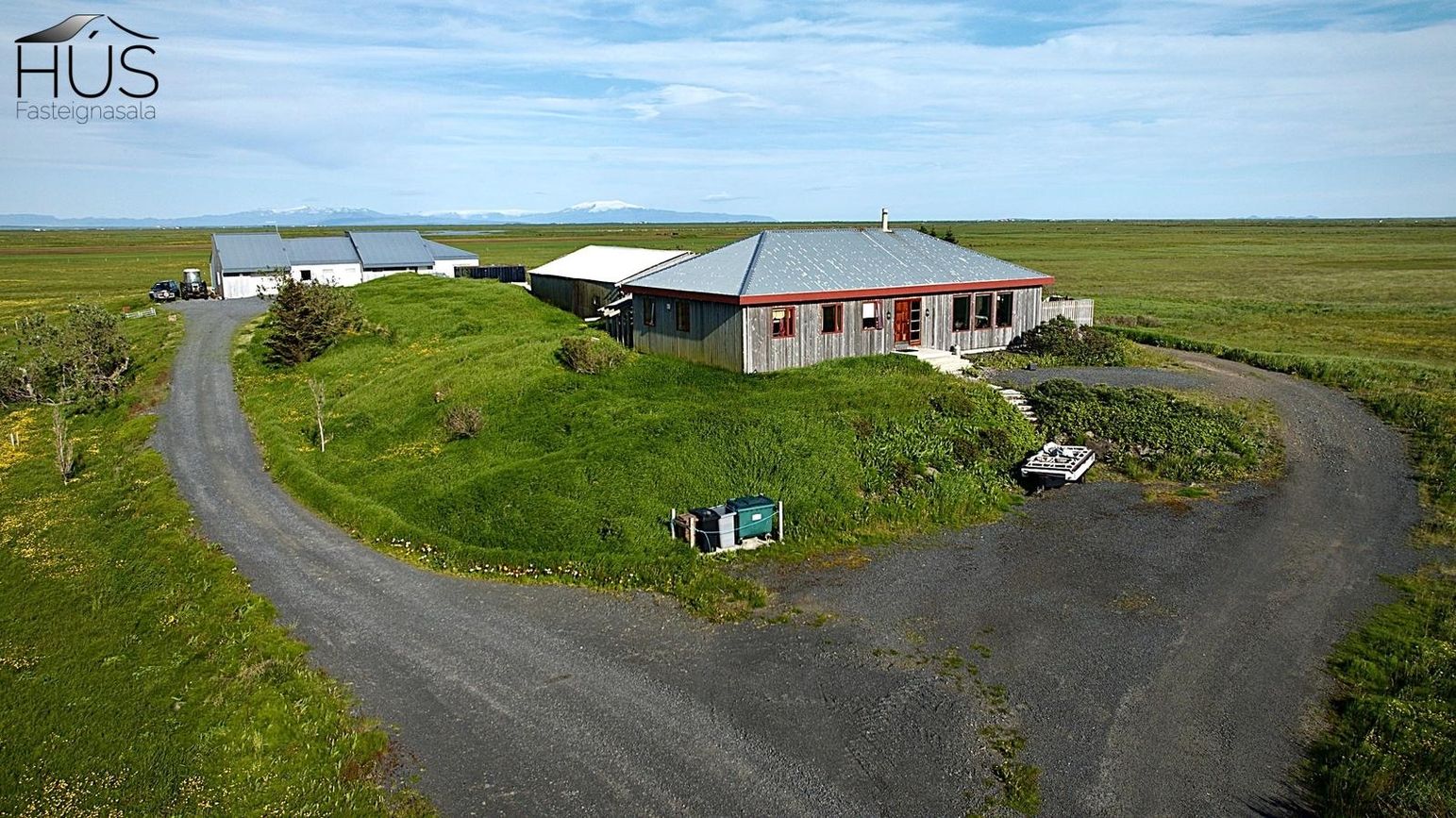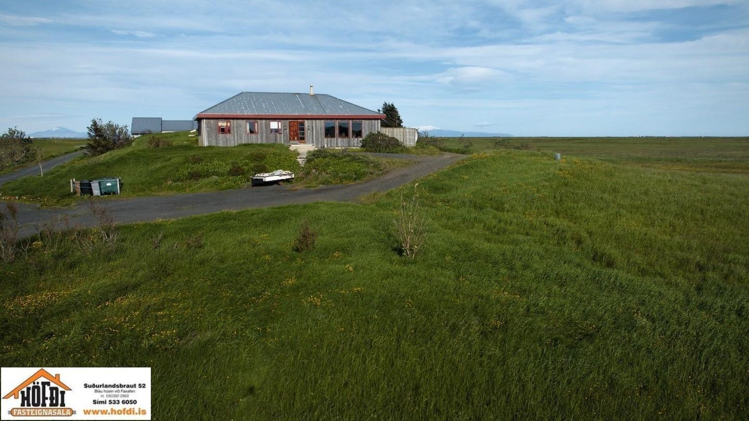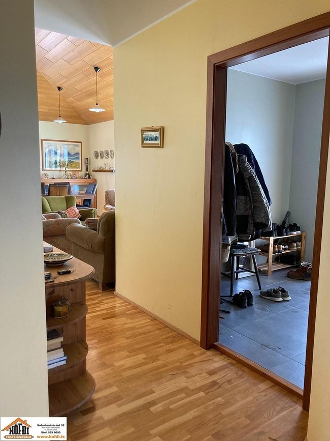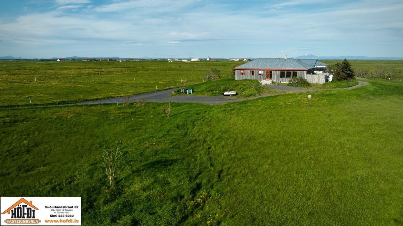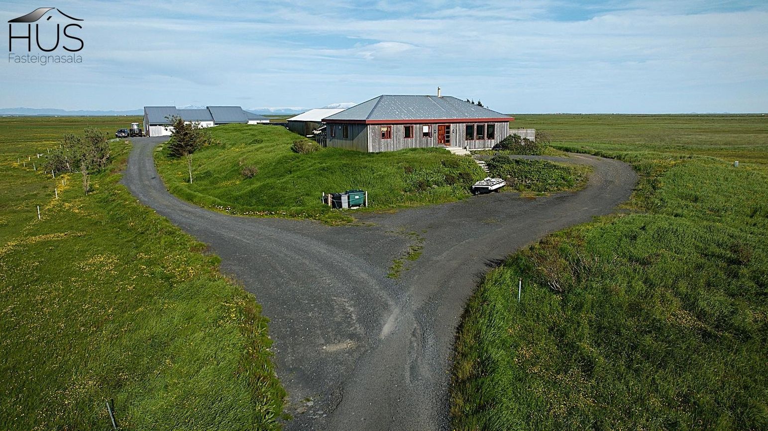 Hér er víðsýnt og stutt í alla helstu þjónustu. Íbúðarhúsið er timburhús byggt 1995 á einni hæð með skriðkjallara undir. Fallegt útsýni er úr húsinu og upptekin loft í stofum, kamína. Við hliðina eru gömul útihús sem ekki eru skráð en hægt væri að gera þau upp og nýta með margvíslegum hætti. Í íbúðarhúsinu eru m.a. fjögur herbergi, baðherbergi, snyrting, þvottahús, eldhús, stofur og sjónvarpsherbergi.