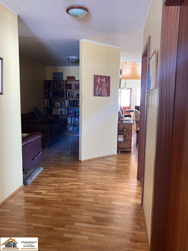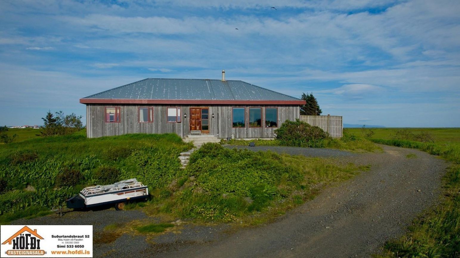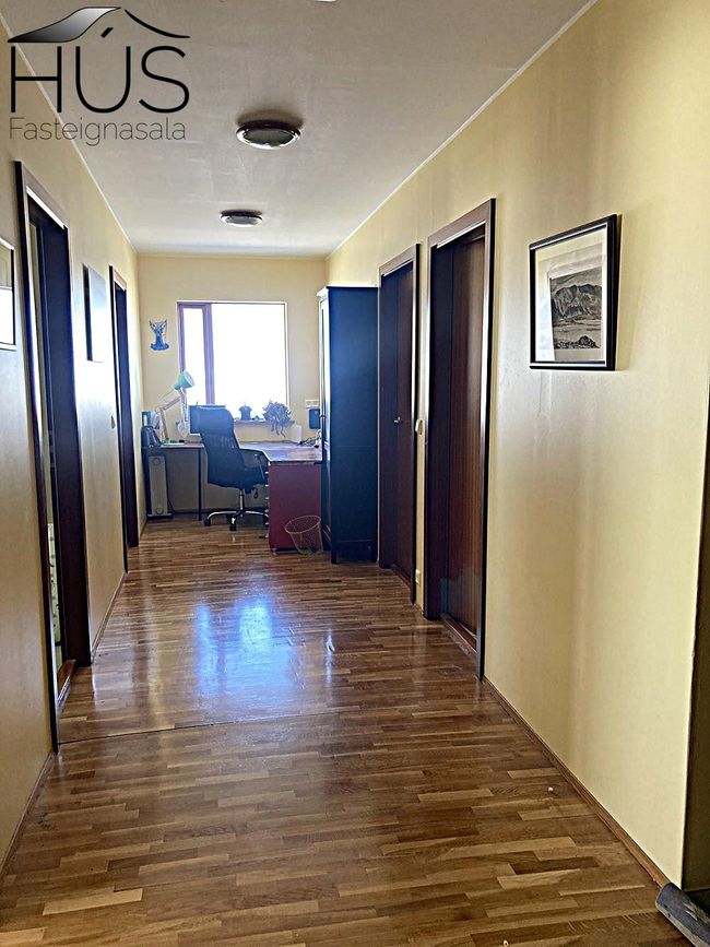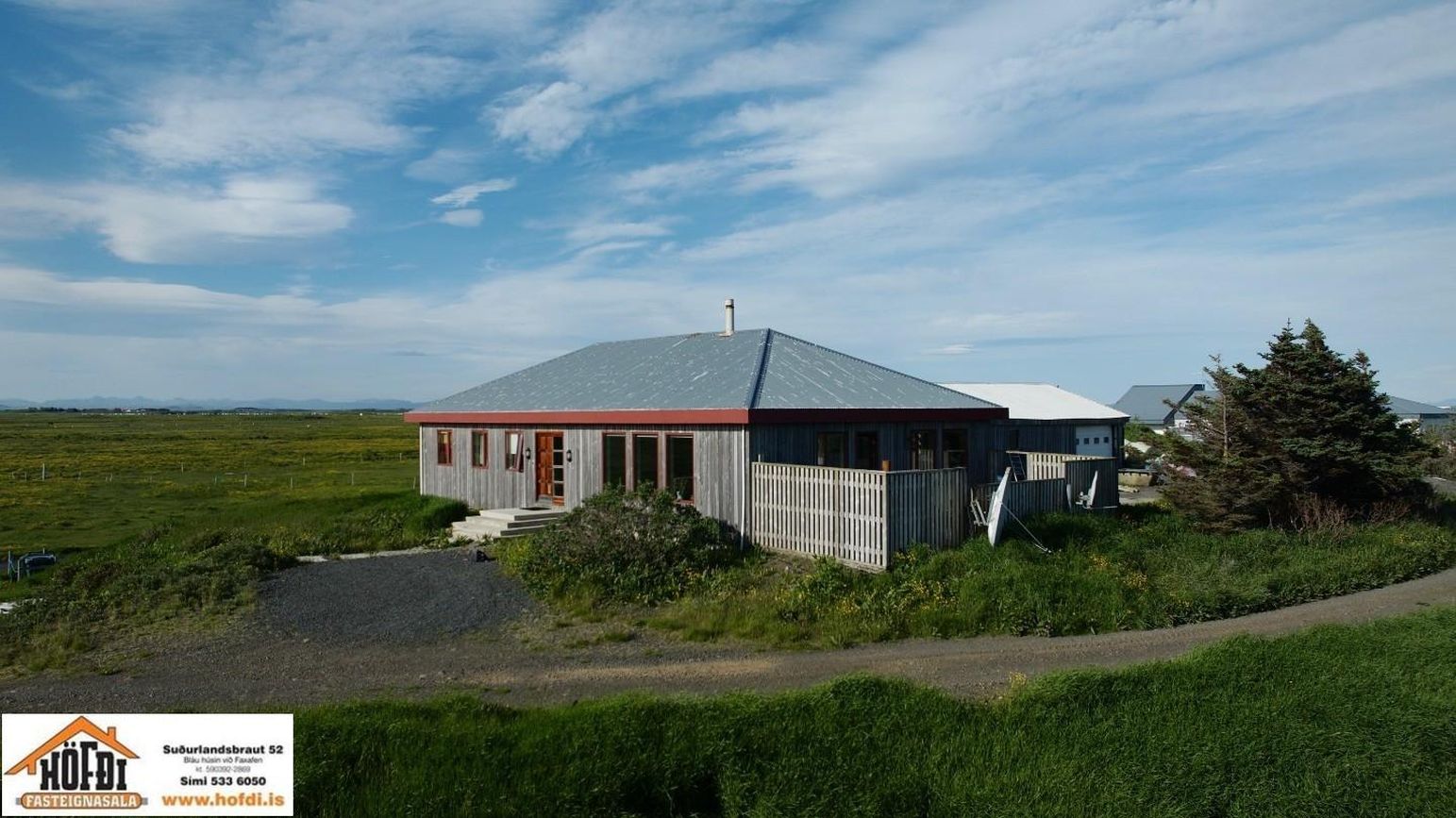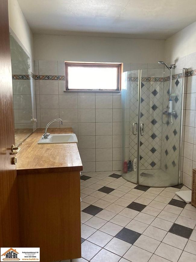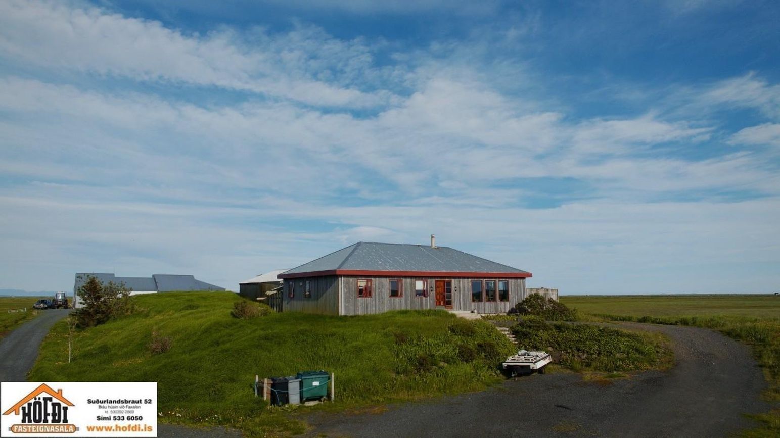 Hér er víðsýnt og stutt í alla helstu þjónustu. Íbúðarhúsið er timburhús byggt 1995 á einni hæð með skriðkjallara undir. Fallegt útsýni er úr húsinu og upptekin loft í stofum, kamína. Við hliðina eru gömul útihús sem ekki eru skráð en hægt væri að gera þau upp og nýta með margvíslegum hætti. Í íbúðarhúsinu eru m.a. fjögur herbergi, baðherbergi, snyrting, þvottahús, eldhús, stofur og sjónvarpsherbergi.