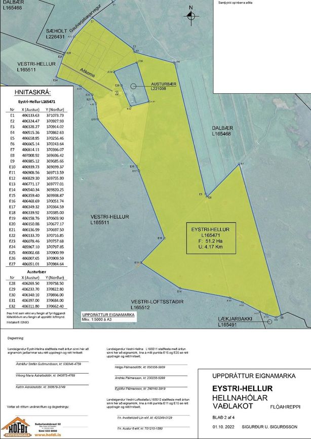 Einstakt tækifæri að eignast þessa frábærlega staðsettu jörð í Flóanum sem er í klukkustundar fjarlægð frá Höfuðborginni. Á jörðinni er vel staðsett 160 fm íbúðarhús með lögbýlisrétti. Hlutdeild í óskiptu landi að Miklavatnsmýri fylgir að auki. Um er að ræða sölu á jörðinni Eystri Hellur sem eru eru 51,2 ha af grónu landi í séreign. Samkvæmd deiliskipulagi er gert ráð fyrir 6 ha athafnarsvæði með 18 lóðum á jörðinni sem verið er að selja. Miklir möguleikar til uppbyggingar ef vill. Fjórar skákir í óskiptu landi Miklavatnsmýri fylgja og eru þær allar um 30-40 hektarar að auki og er þetta gott beitarland.