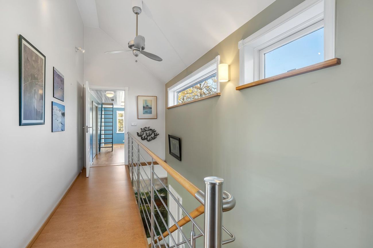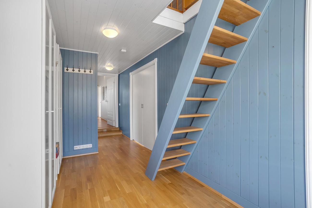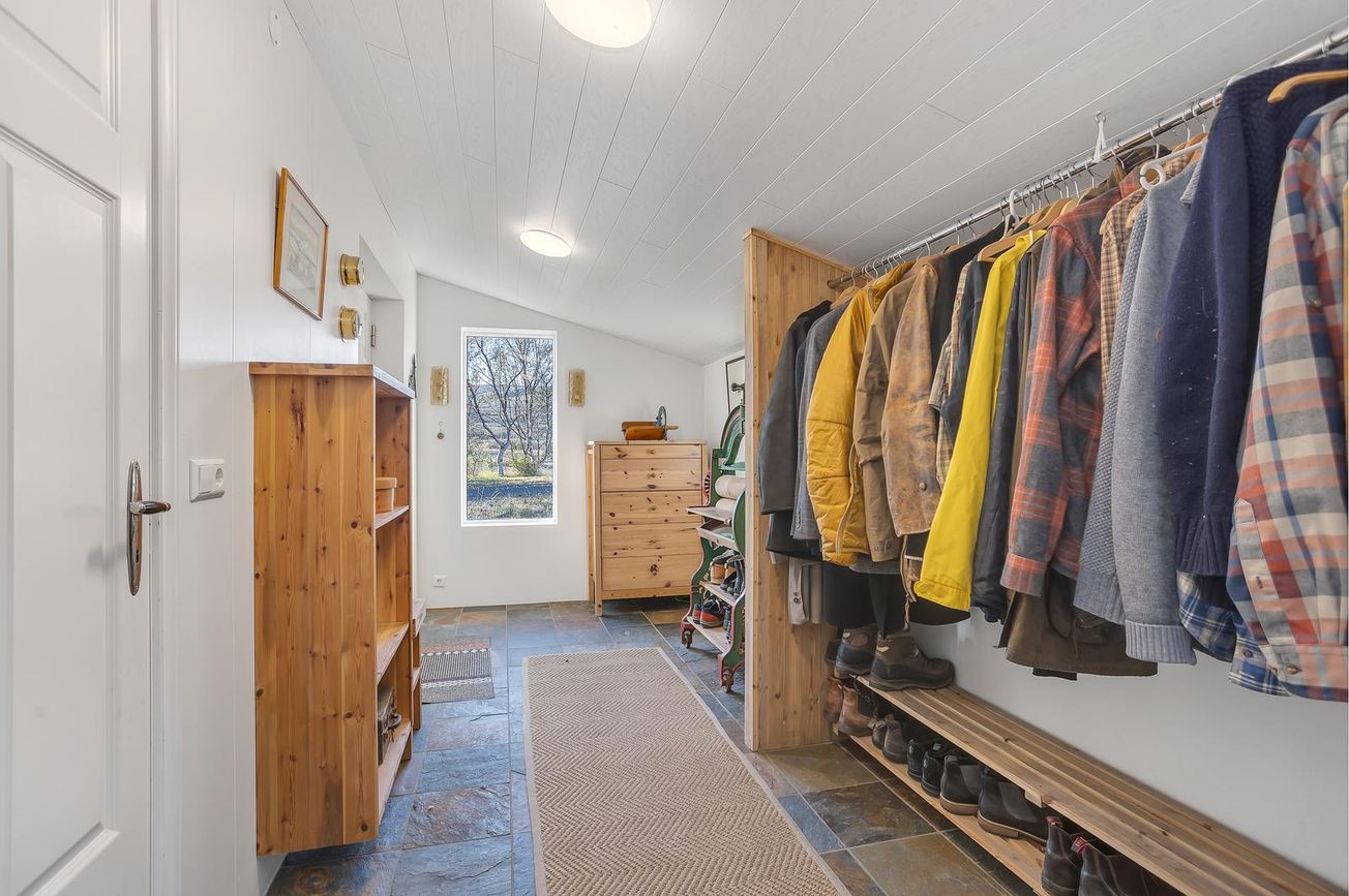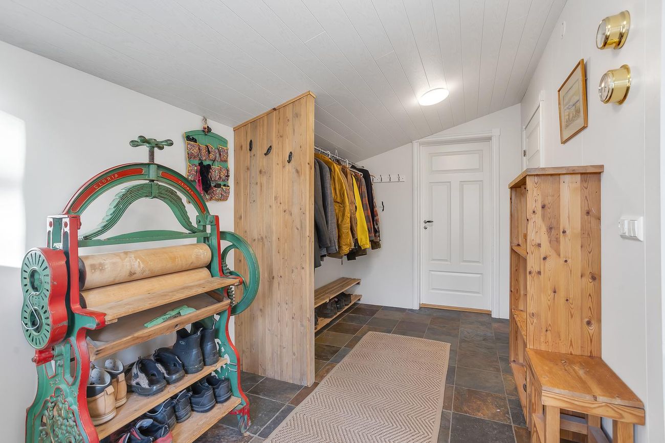 Íbúðarhús: Komið er inn í rúmgott anddyri, náttúrusteinn á gólfi. Innaf er baðherbergi og geymsla. Eldhús er mjög rúmgott með snyrtilegri innréttingu. Innaf er stofa og sólstofa, náttúrusteinn á gólfum. Innaf því er baðherbergi og þvottahús. Á efri hæð eru þrjú svefnherbergi ásamt litlu baðherbergi. Háaloft sem nýtist vel sem geymsla eða svefnloft en reiknast ekki inn í fermetratöluna.