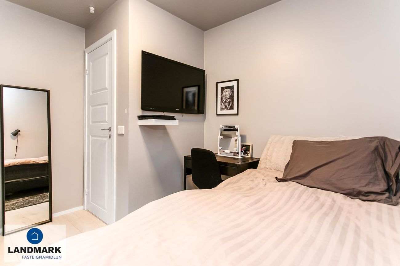 Risloft (11 fm) með opnanlegum þakglugga sem hægt er að innrétta sem vinnuherbergi eða svefnherbergi. Annað herbergi á efri hæð með parketi og rúmgott rými.