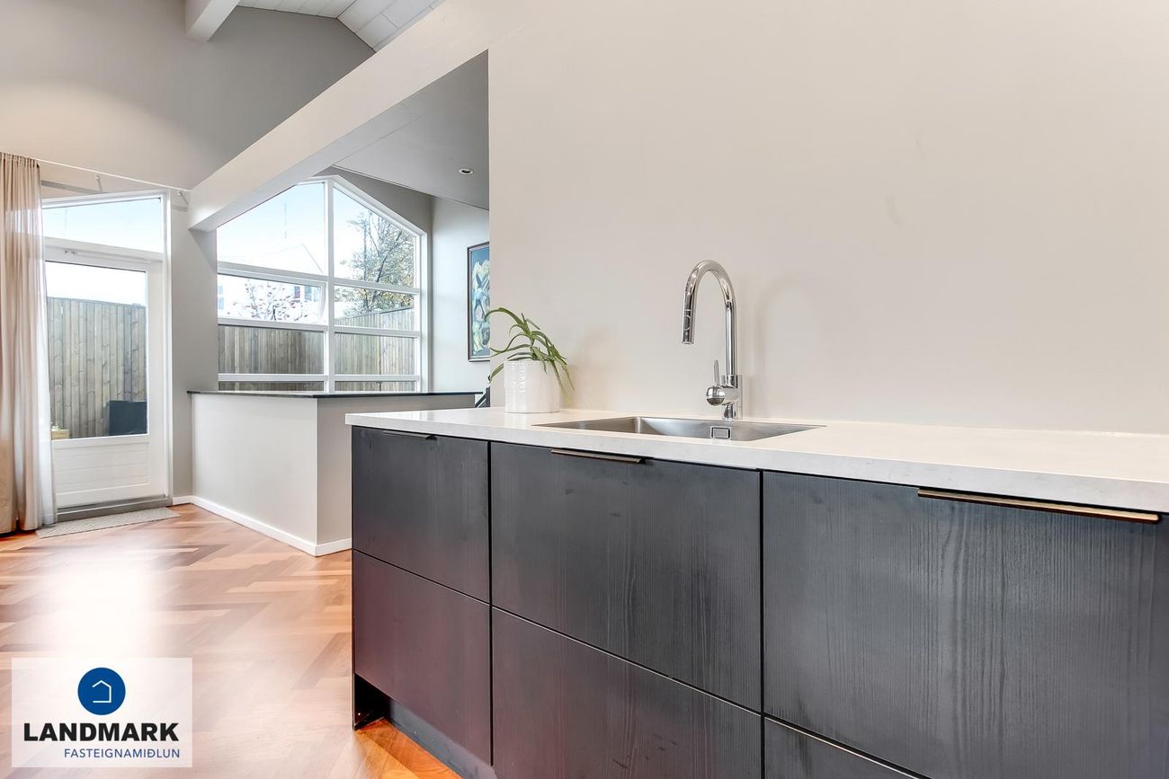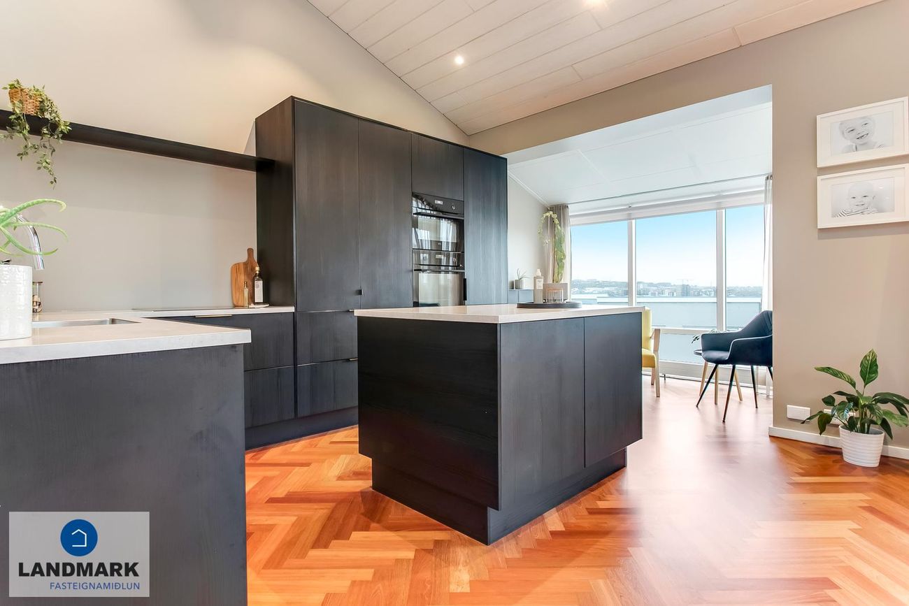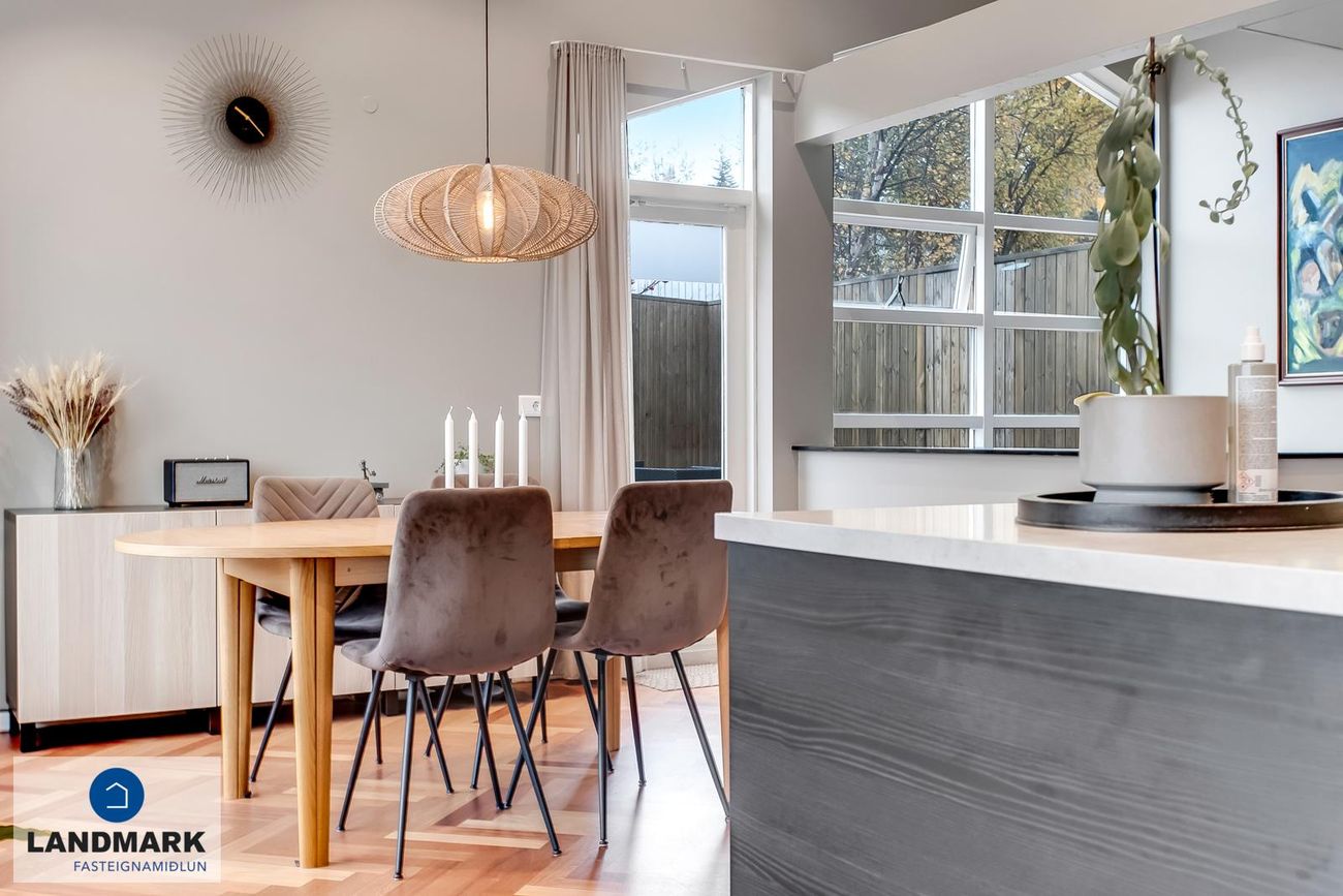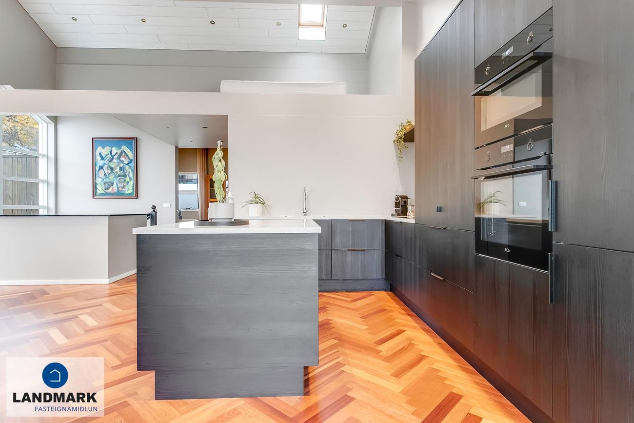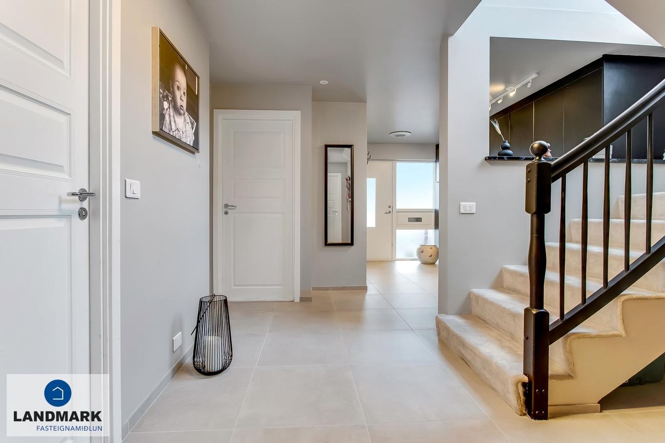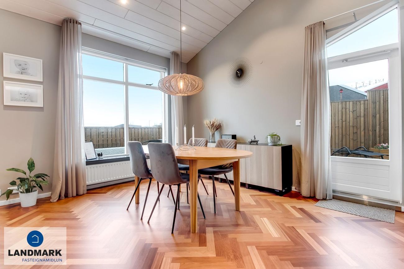194,1 fm parhús með 5-6 herbergi, 3-4 svefnherbergi, risloft og bílskúr. Nýlega endurnýjuð baðherbergi, eldhús og þvottahús. Opinn flokkur með aukinni lofthæð.