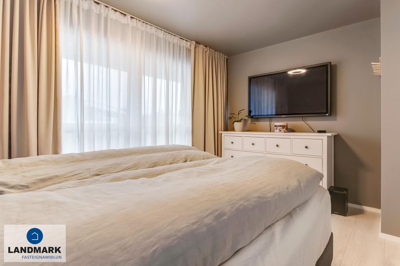 Rúmgóður bílskúr (36,8 fm) með rafmagni, hiti, vatni og rafknúnum hurðaopnara. Tvö bílastæði með hiti undir plani.