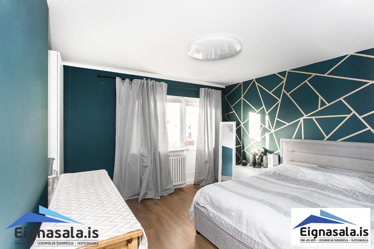 Hjónaherbergi er með innbyggðum skáp og útgengi út á vestur svalir.