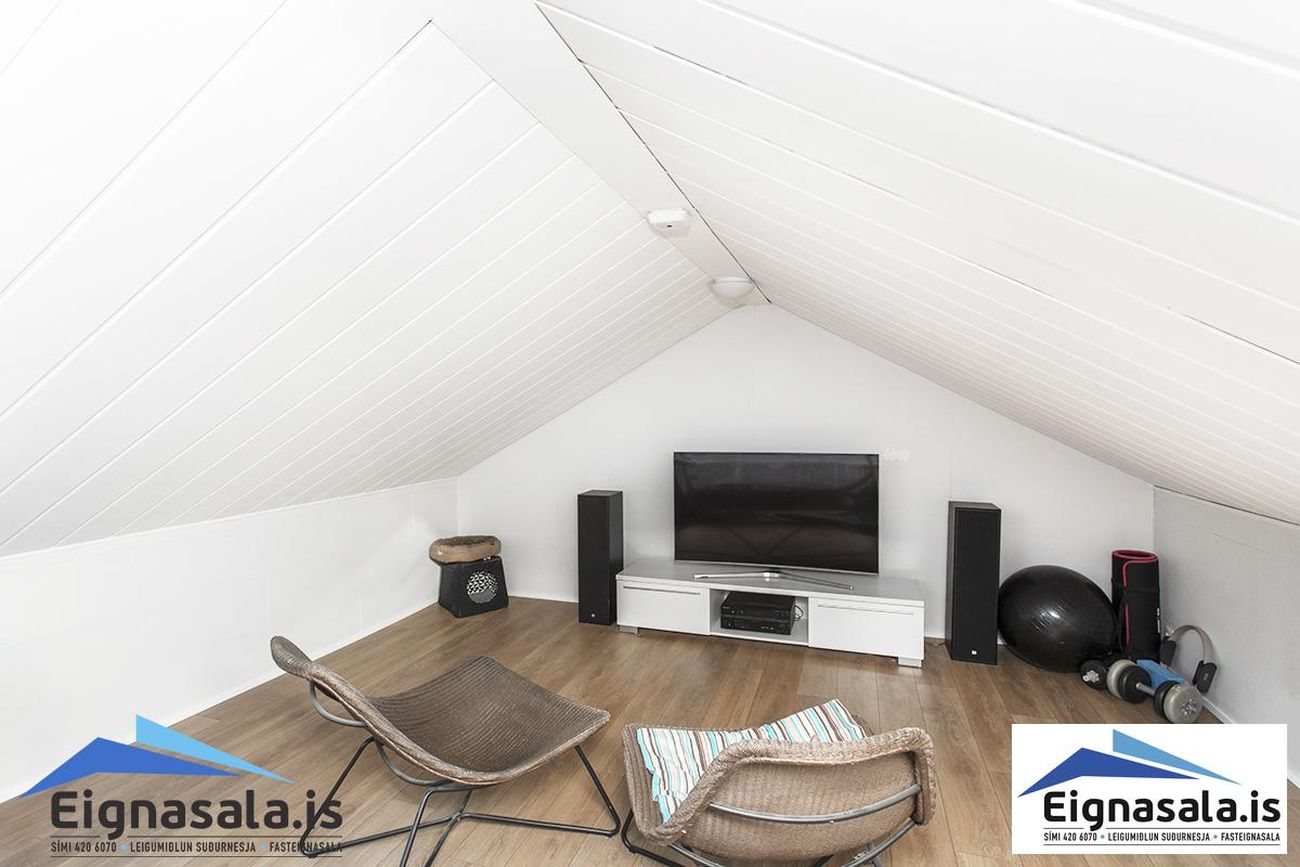 Í risi er að mestu opið innréttað rými með þakgluggum og harðparketi.