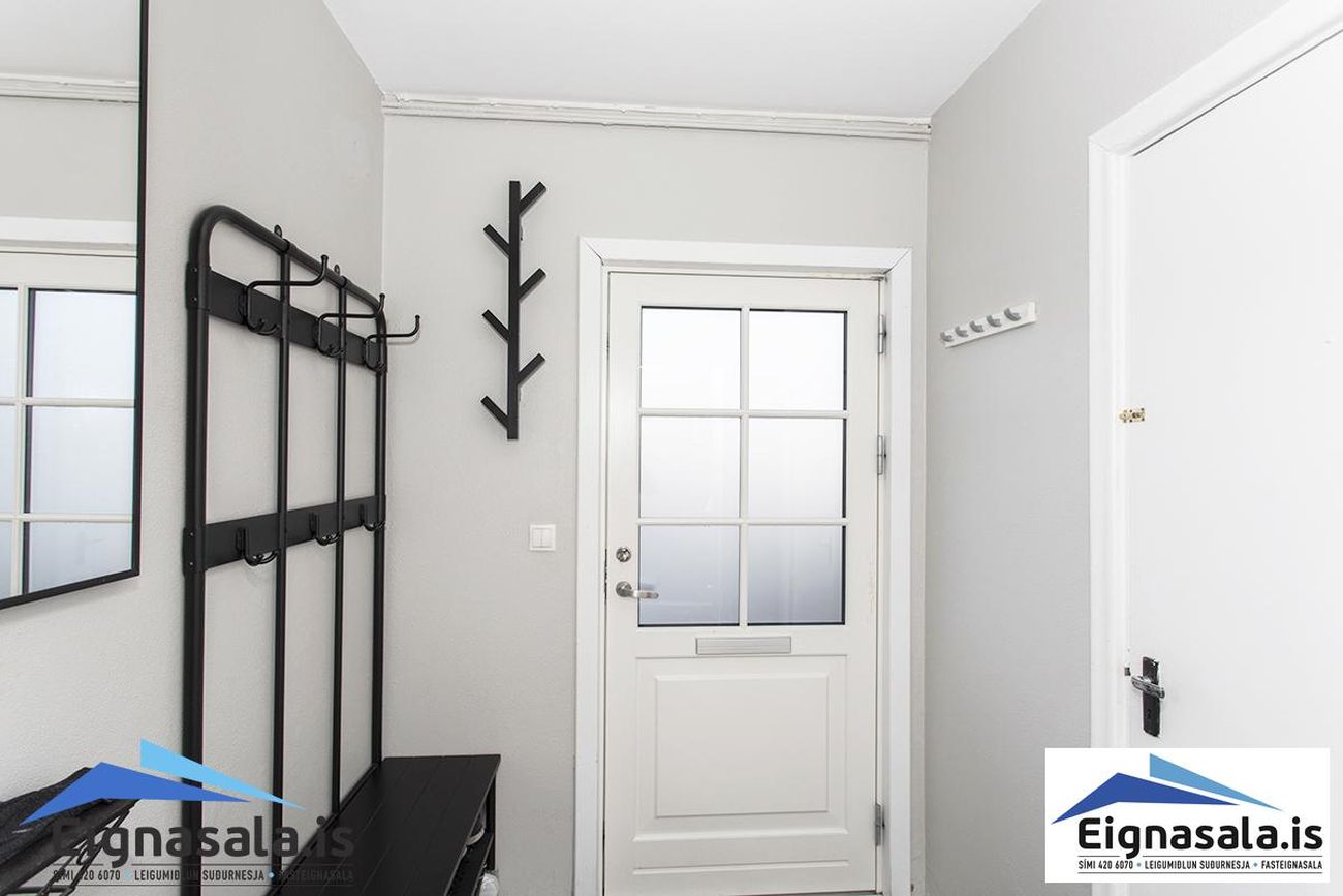 Húsið skiptist í forstofu með flísum á gólfi, þar til hliðar er þvottahús og geymsla með útgengi á framlóð (ekki nýtt sem þvottahús af núverandi eigendum).