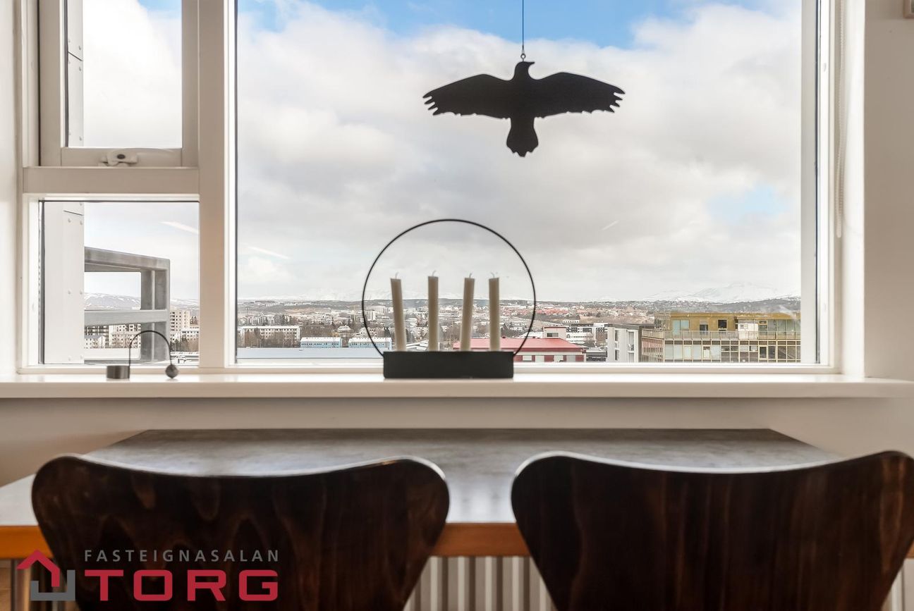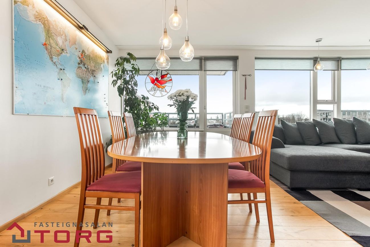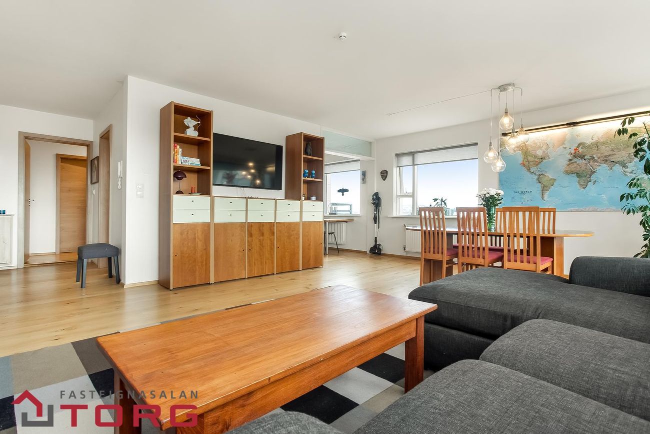 Stutt í alla helstu þjónustu, Kringluna, skóla og leikskóla. Virkilega björt og falleg eign, með miklu útsýni, sem vert er að skoða.