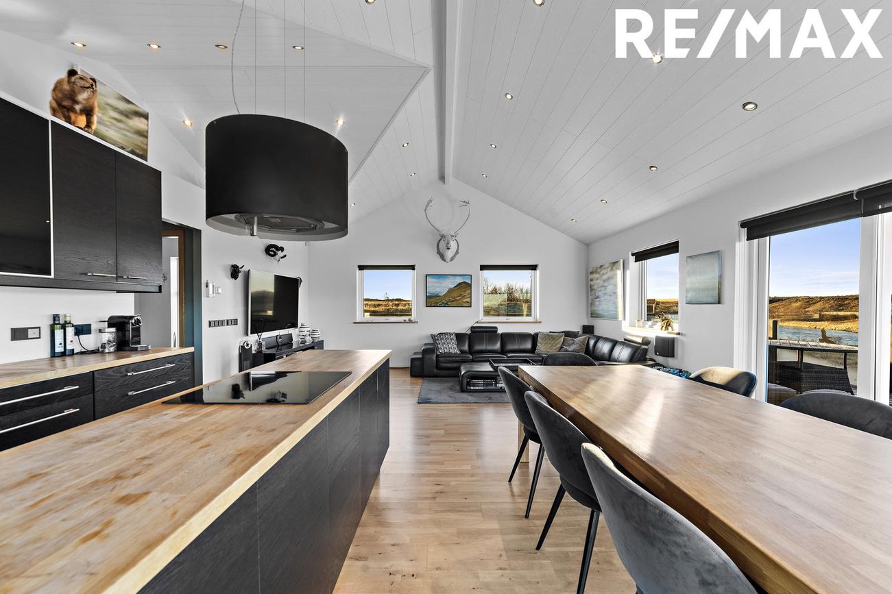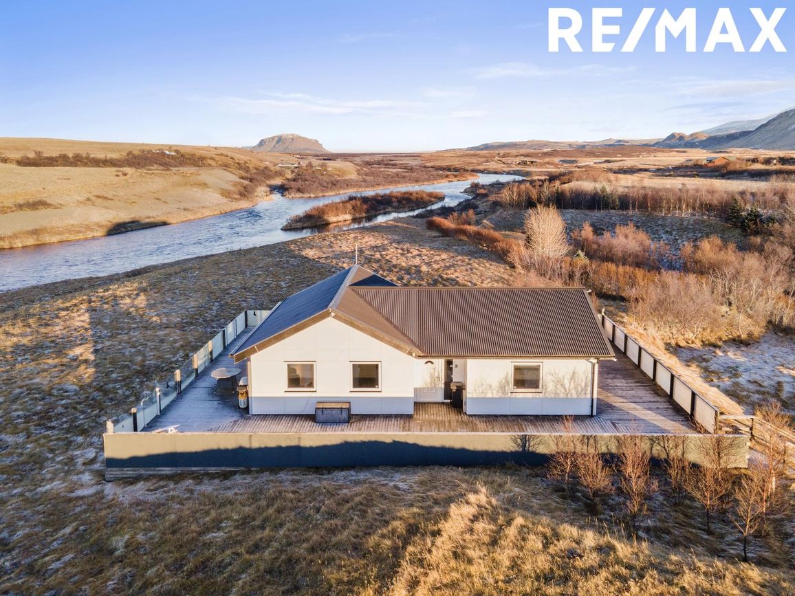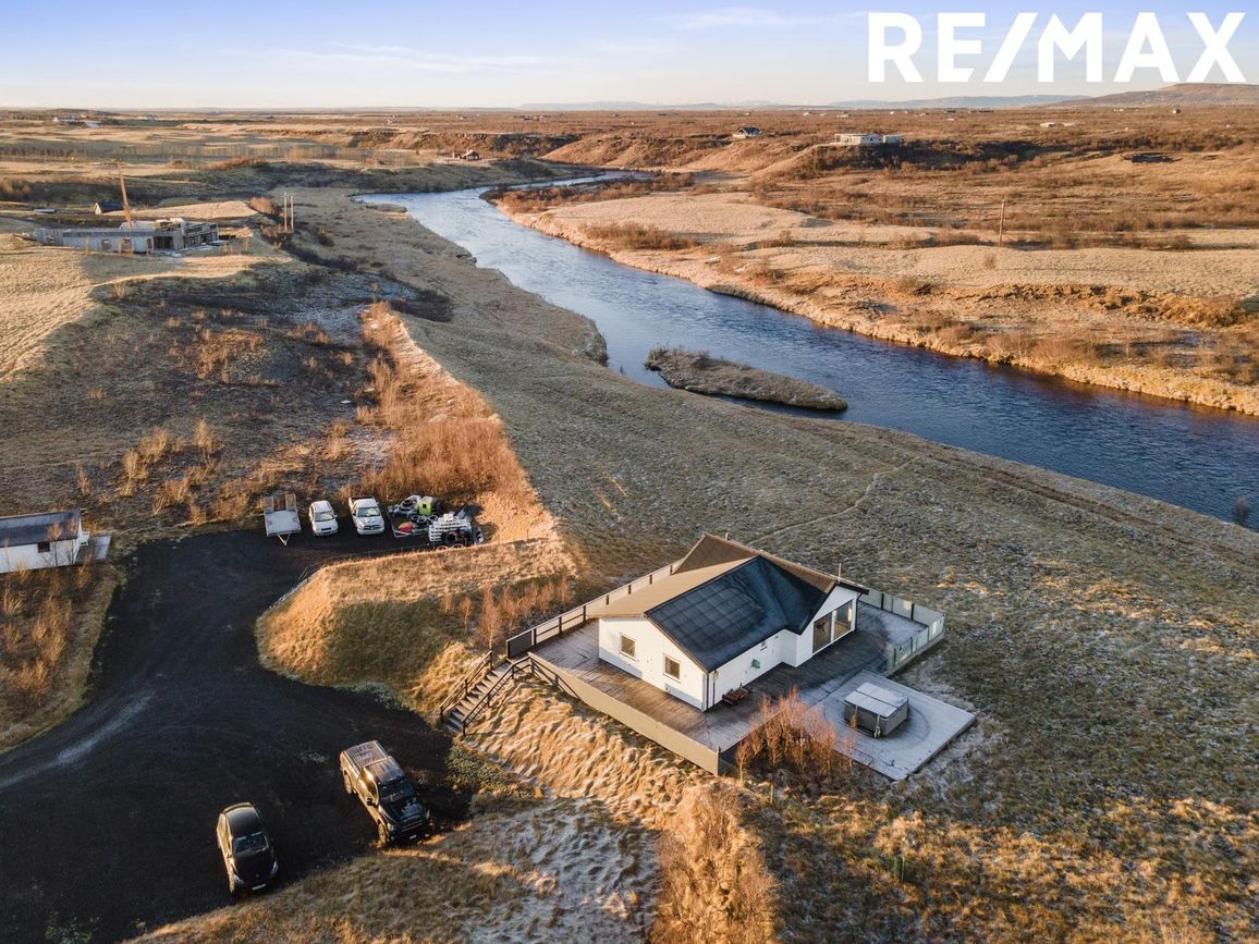 RE/MAX og GUÐNÝ ÞORSTEINS Löggiltur fasteignasali kynna í einkasölu: Fitjahraun 7 er sérlega falleg 1,5ha lóð á bökkum Ytri Rangár með einstöku útsýni yfir ánna, lóðin er fallega vaxin með trjágróðri. Á lóðinni er 95,6fm heilsárshús með steyptir plötu, 300fm sólpalli ásamt heitum potti, skjólveggir eru með hertu gleri, tröppur með lýsingu upp á pall. Húsið er klætt að utan með viðhaldsfrírri klæðningu. Vegur og bílastæði eru með bundnu slitlagi, stórt bílaplan. Einnig er 19,7fm gestahús ásamt 60fm niðurgröfnum bílskúr/vinnuskúr með rafmagni og vatni.