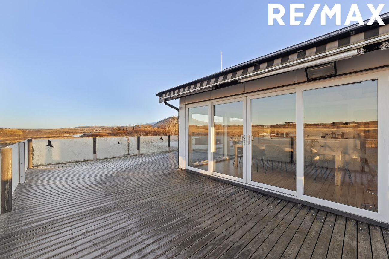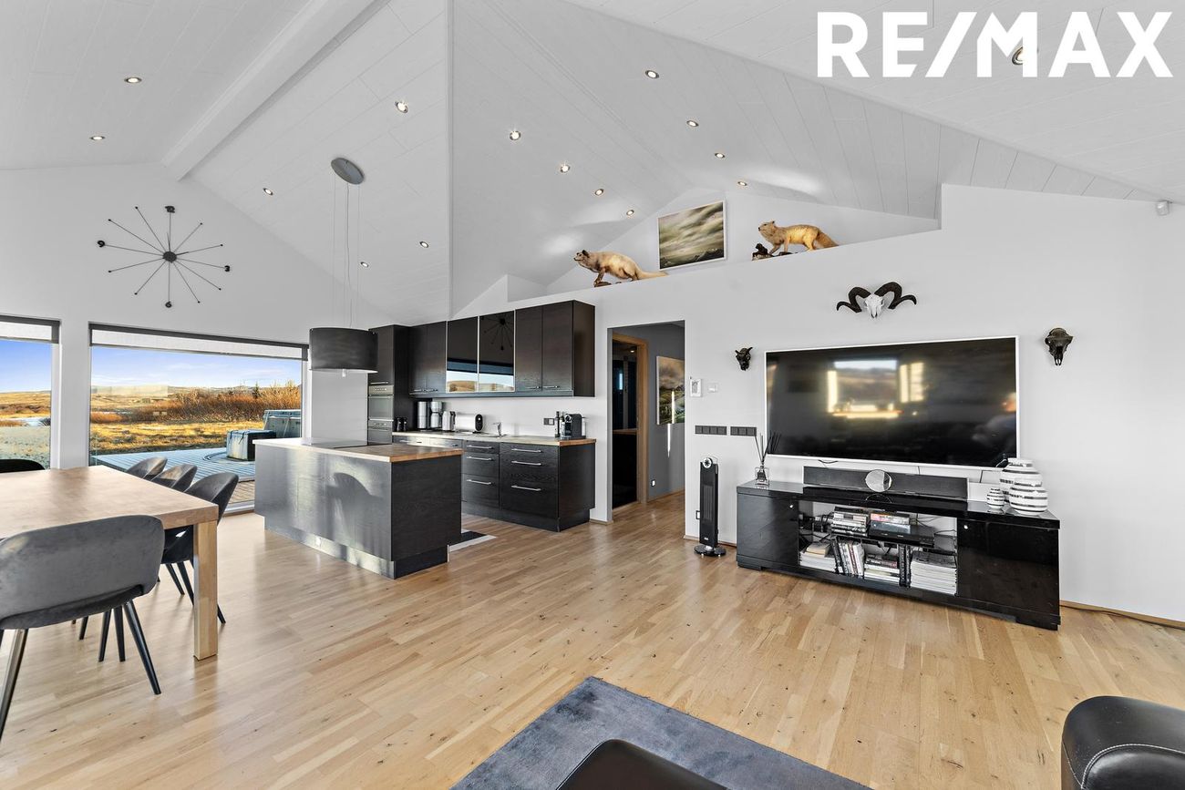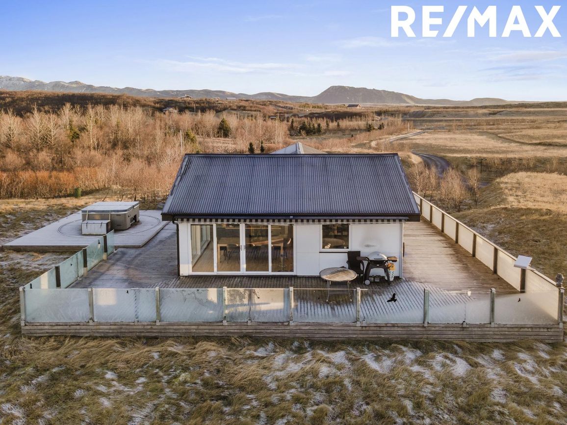 RE/MAX og GUÐNÝ ÞORSTEINS Löggiltur fasteignasali kynna í einkasölu: Fitjahraun 7 er sérlega falleg 1,5ha lóð á bökkum Ytri Rangár með einstöku útsýni yfir ánna, lóðin er fallega vaxin með trjágróðri. Á lóðinni er 95,6fm heilsárshús með steyptir plötu, 300fm sólpalli ásamt heitum potti, skjólveggir eru með hertu gleri, tröppur með lýsingu upp á pall. Húsið er klætt að utan með viðhaldsfrírri klæðningu. Vegur og bílastæði eru með bundnu slitlagi, stórt bílaplan. Einnig er 19,7fm gestahús ásamt 60fm niðurgröfnum bílskúr/vinnuskúr með rafmagni og vatni.