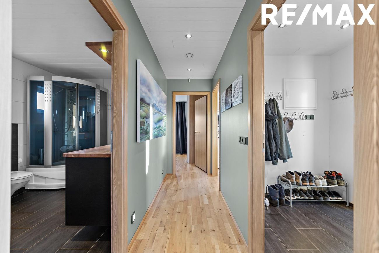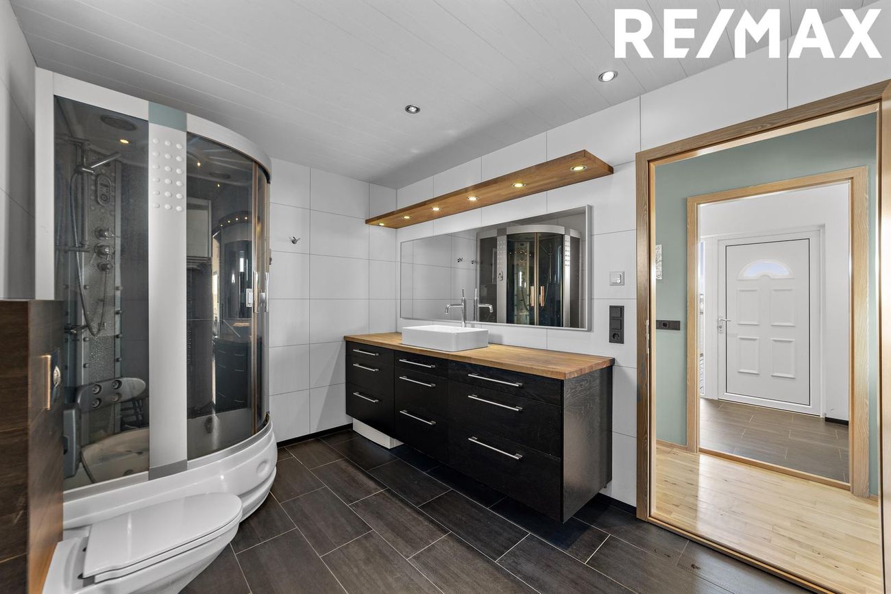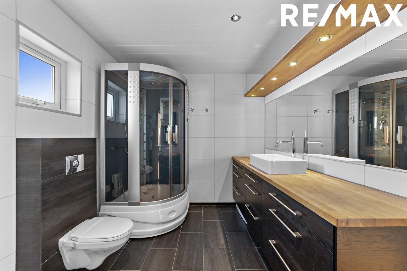 Baðherbergi/Þvottahús: Er rúmgott með þvottavél ásamt útgangi á sólpall. Náttúru flísar á gólfi ásamt hita.