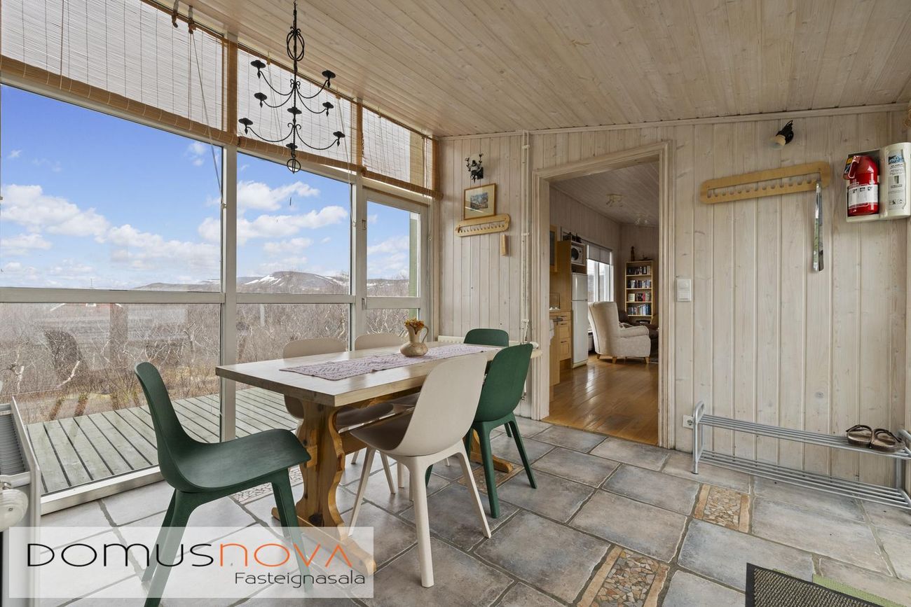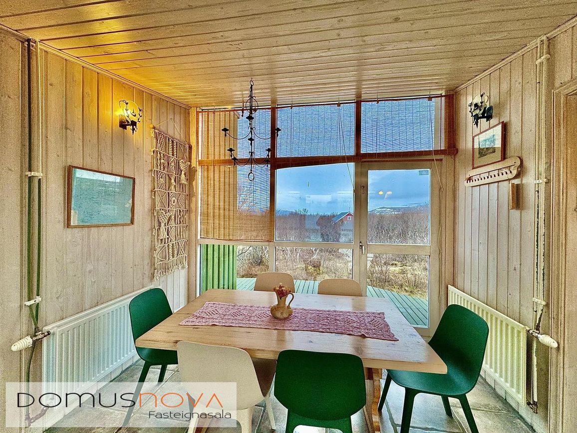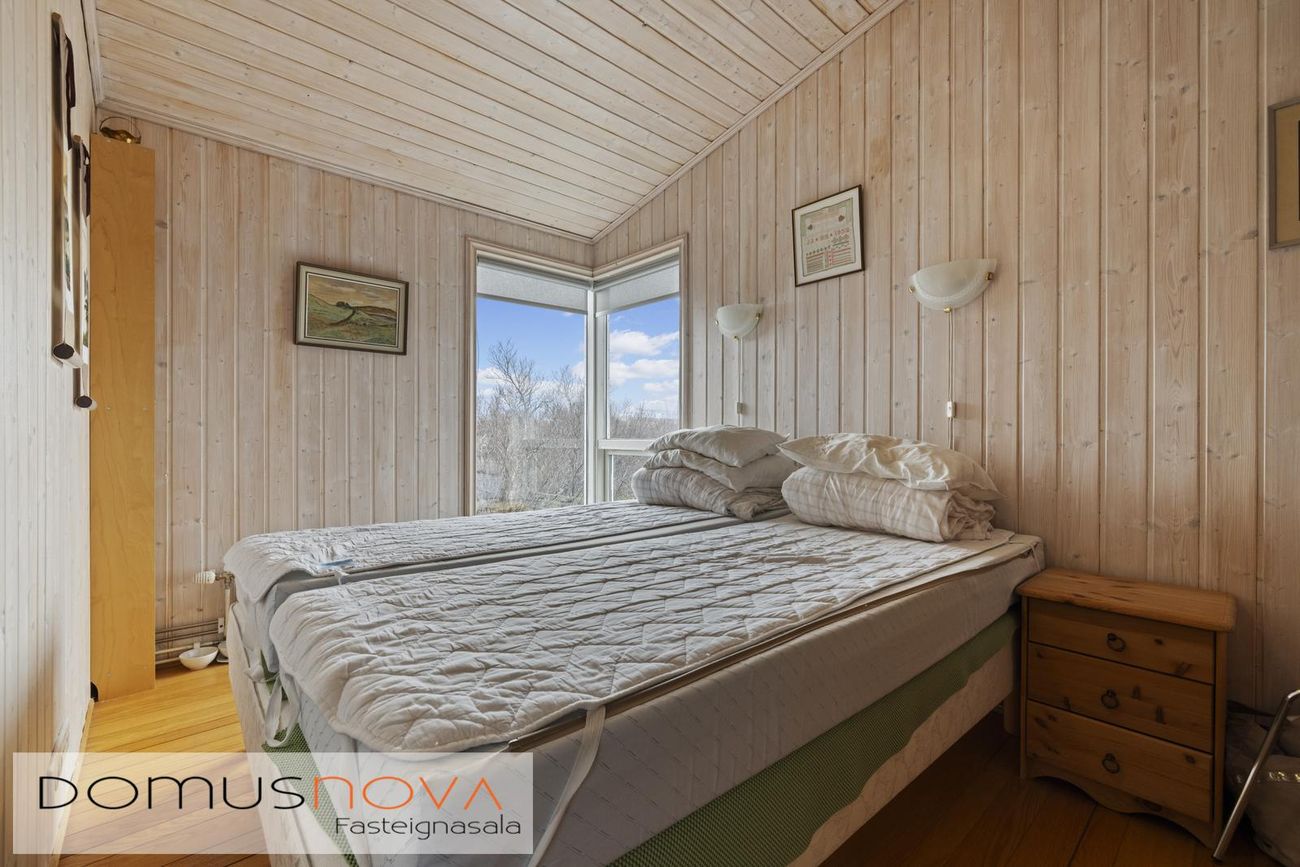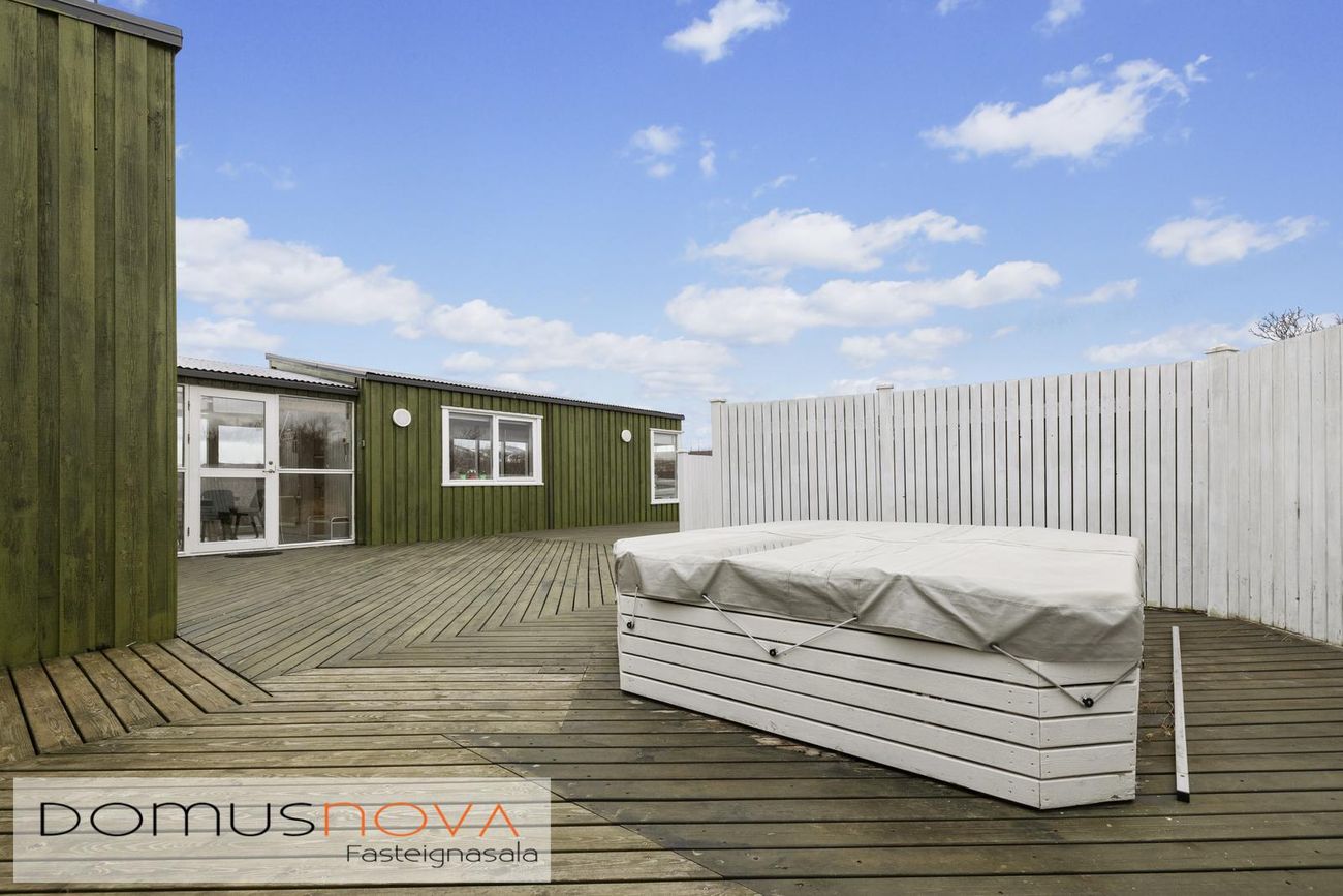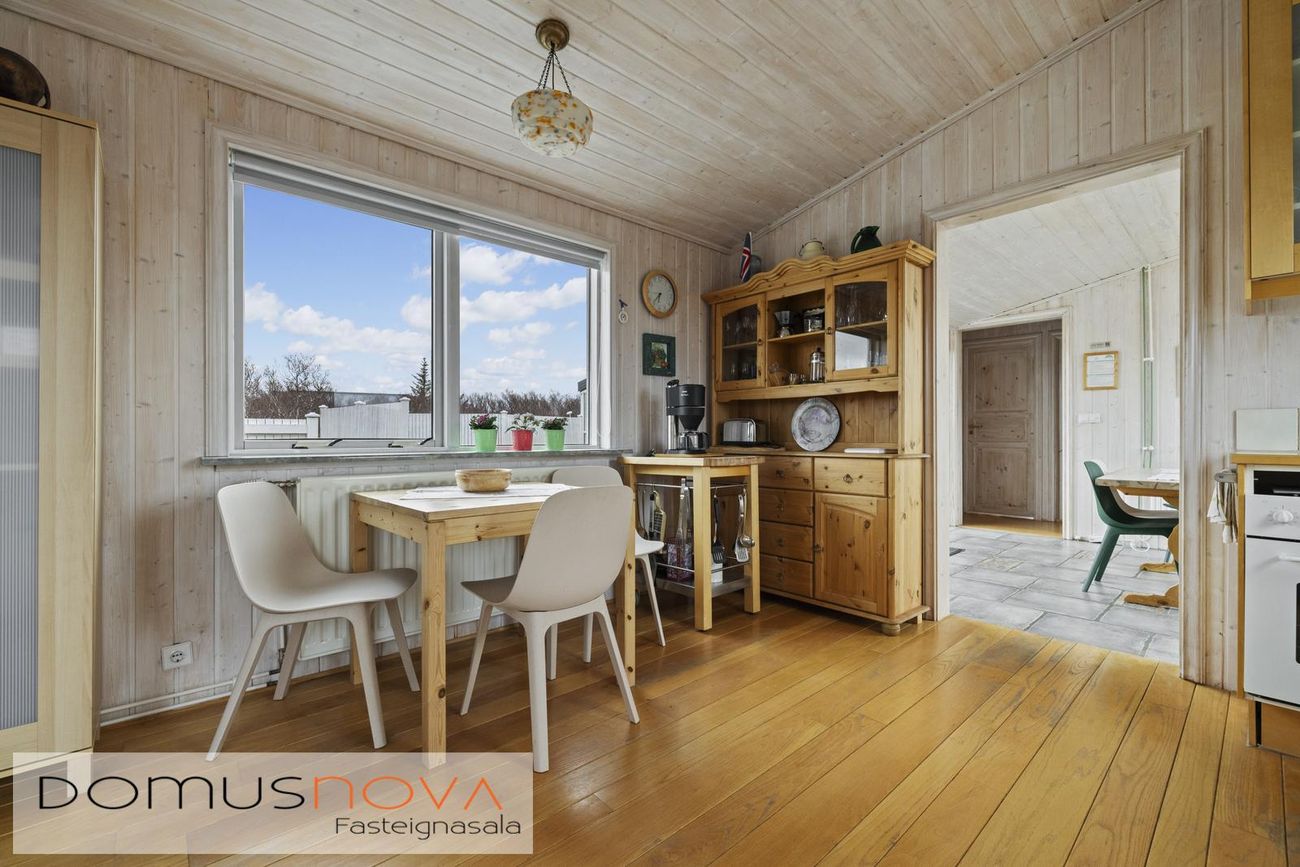 Aðalhús 76,8 fm og gestahús 22 fm á 6.500 fm leigulóð. Opinn grunnhönnuður rými með parketgólfum og aukinni lofthæð.