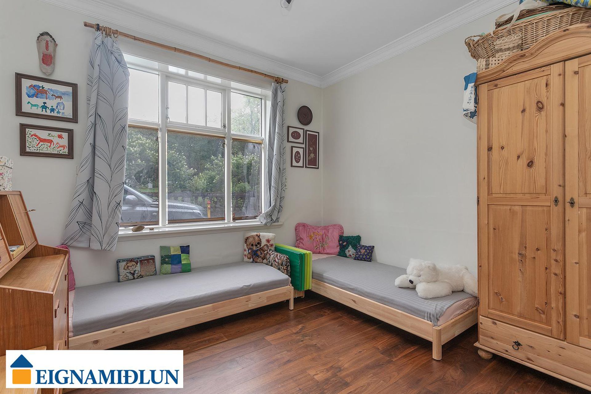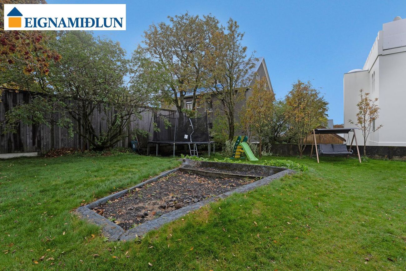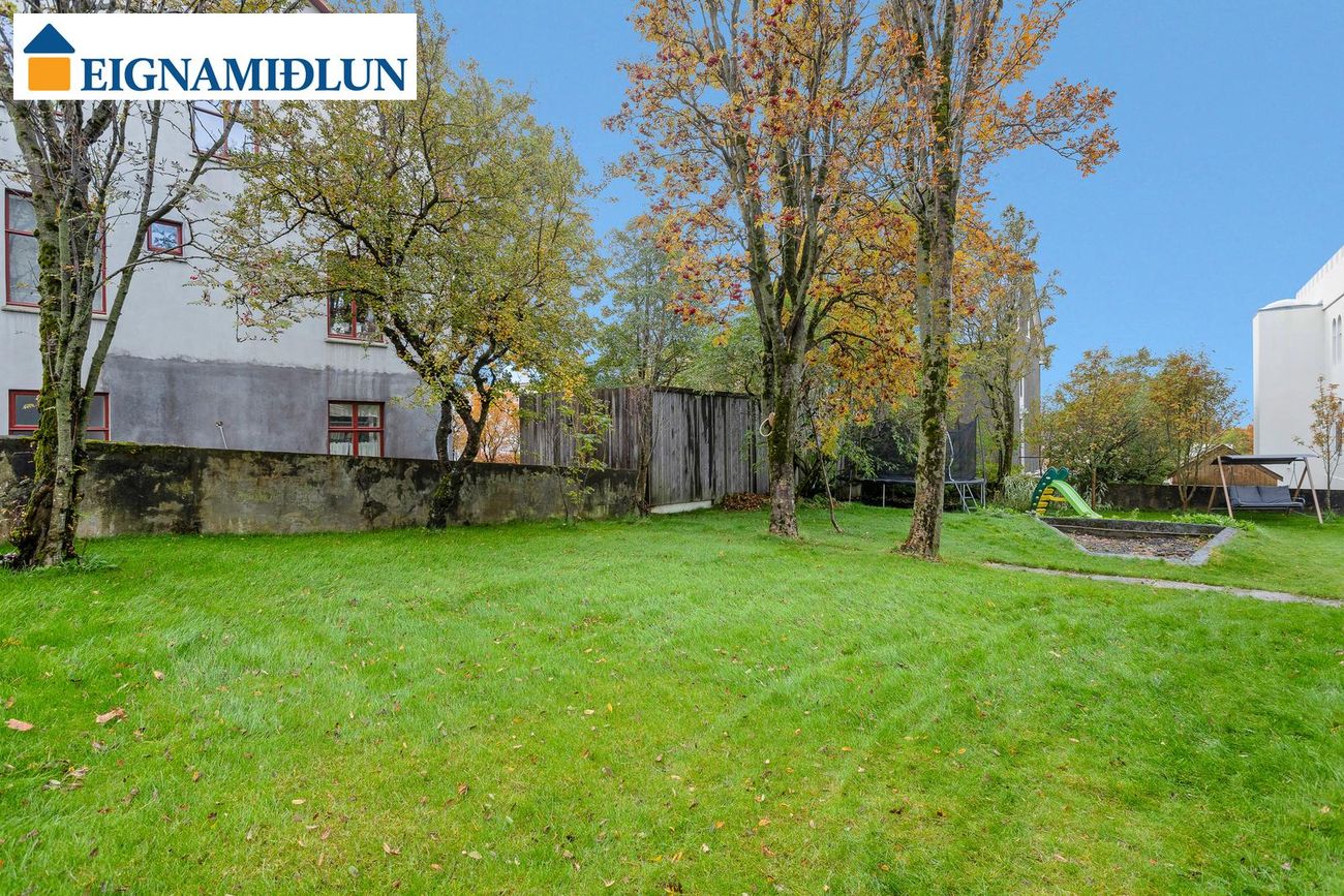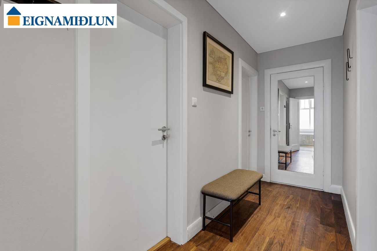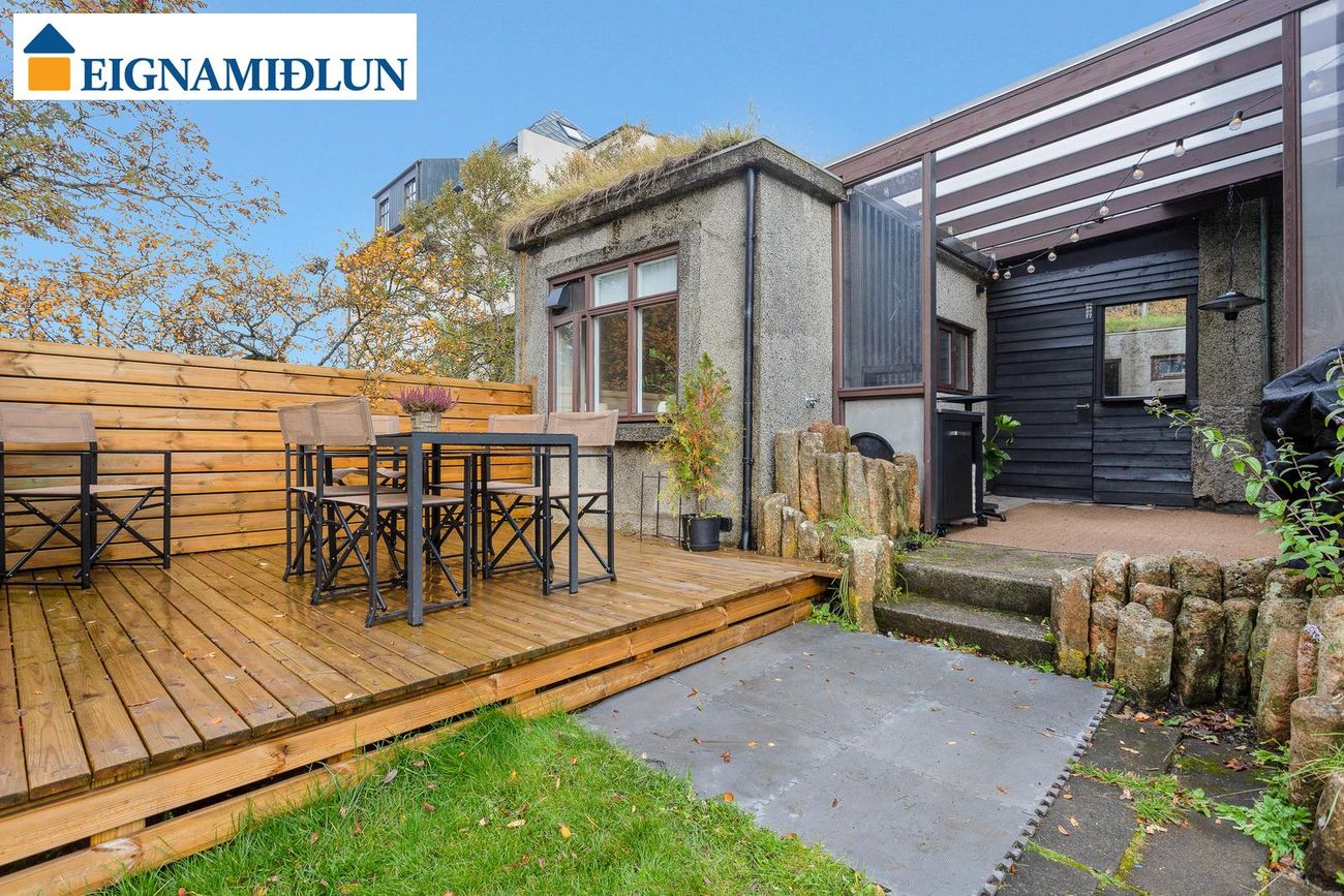 Glæsileg 4ja herbergja sérhæð á einstaklega fallegum stað við Fjölnisveg í Þingholtunum, einni af fallegustu götum borgarinnar. Falleg eign með stórum garði á eftirsóknarverðum stað þar sem miðbær Reykjavíkur er í göngufæri og stutt í leikskóla, skóla og helstu þjónustu. Birt stærð er 149,5 fm og skiptist eignin í íbúð skráða 121,5 fm og bílskúr, þar sem hefur verið gerð stúdíó-íbúð, skráður 28 fm. Húsið er byggt árið 1930, bílskúr árið 1939 og viðbygging árið 1982.Nánari lýsing:Gengið er inn um sameiginlegan inngang frá götu, fatahengi og geymsluskápur er utan íbúðar áður en gengið er inn. Þaðan er gengið inn á gang sem tengir saman flest rými íbúðarinnar, gegnheil hnota er á gólfum og nýlegur hljóðdúkur í lofti með innfelldri lýsingu.