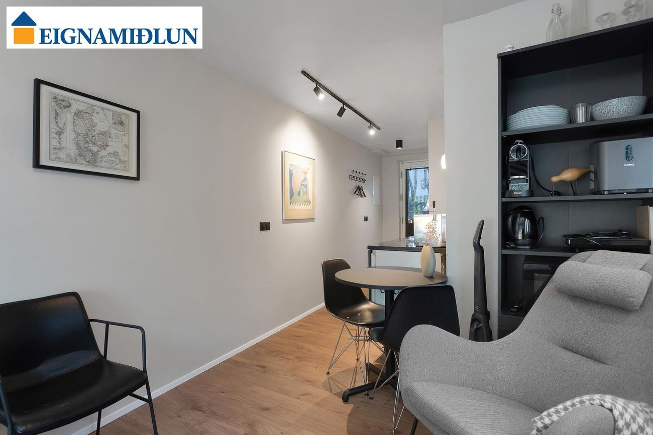 Bílskúrinn var nýlega endurnýjaður að innan og útbúinn sem stúdíóíbúð. Íbúðin er snyrtileg, nýleg eldhúsinnrétting með steinplötu og nýlegu baðherbergi. Möguleiki á góðum leigutekjum.