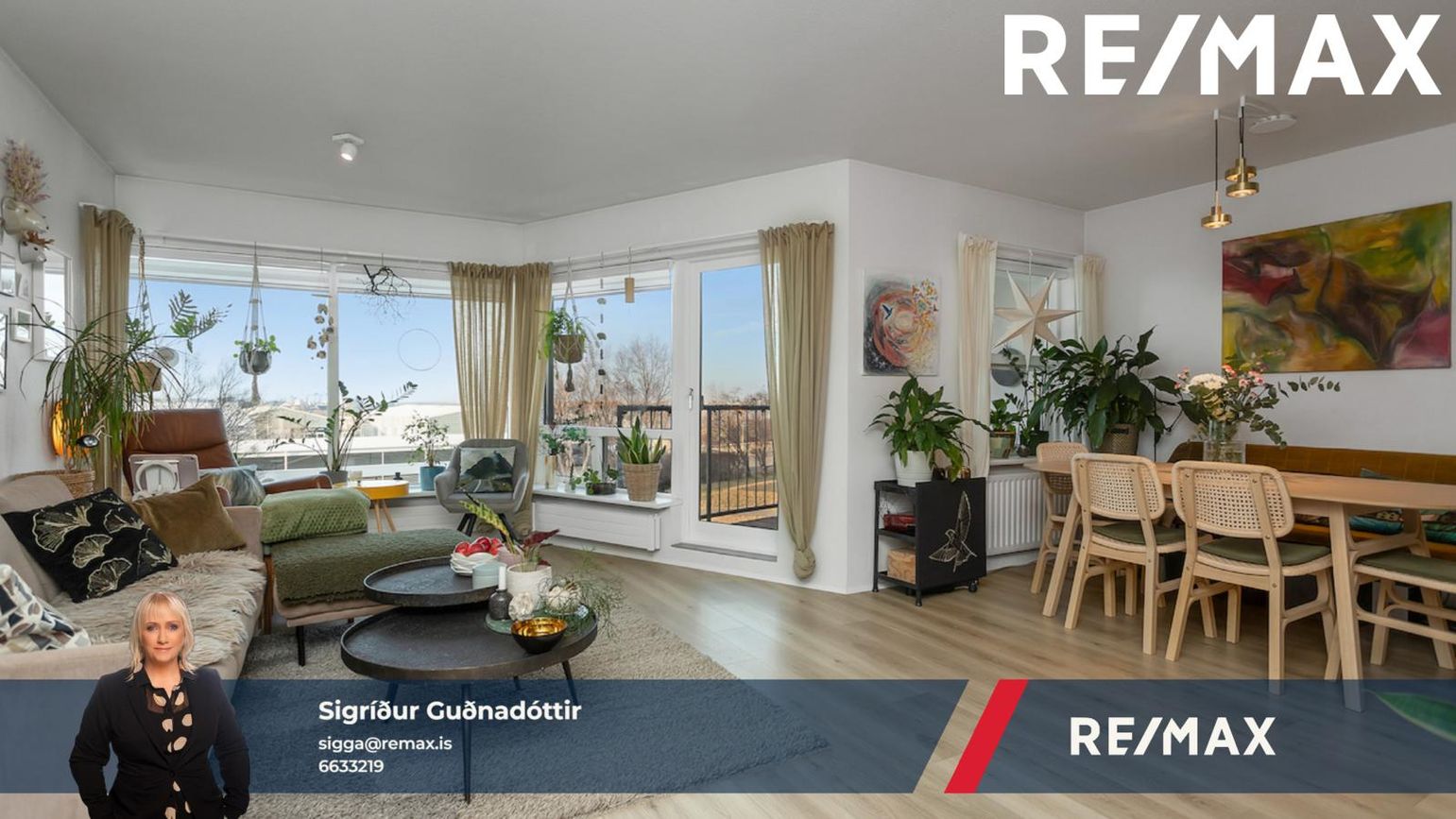 Tvennar svalir: Grill svalir í suður úr eldhúsi og stórar vestur svalir úr stofu með fallegu sjávarútsýni.